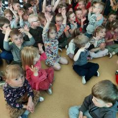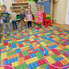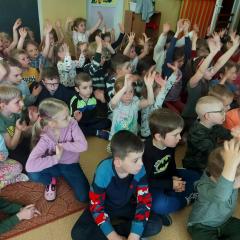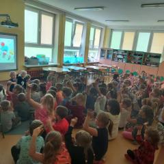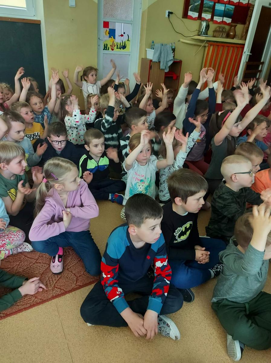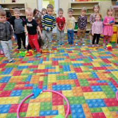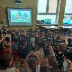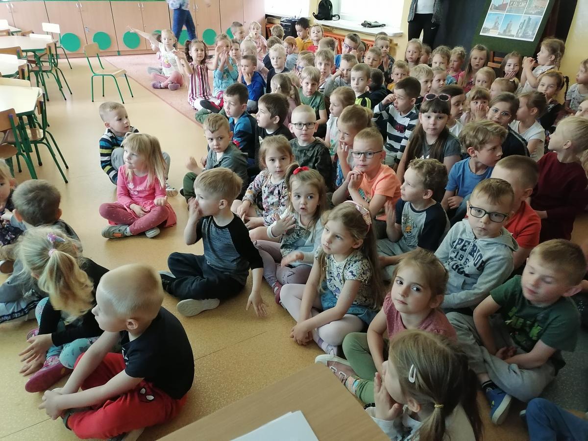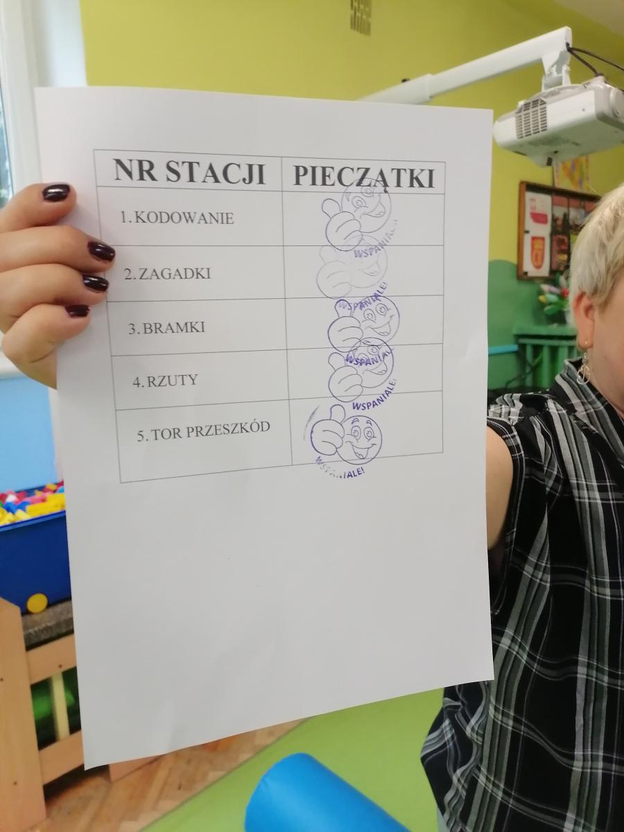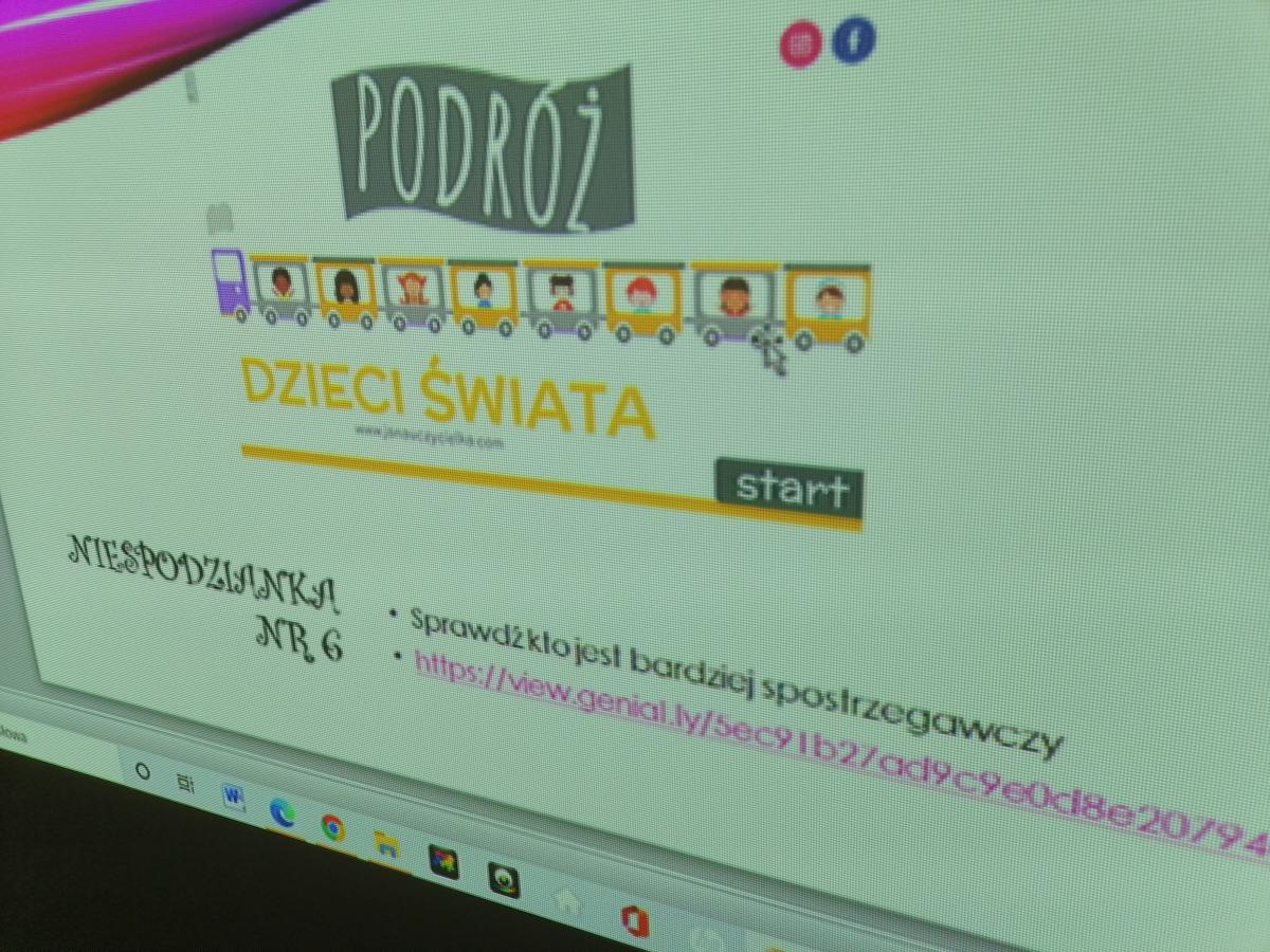 Z okazji Dnia Dziecka przedszkolaki obejrzały prezentację multimedialną, podczas której śpiewały, tańczyły, wykonywały zadania na spostrzegawczość, a także obejrzały film edukacyjny o dzieciach świata. Następnie wędrowaliśmy po stanowiskach rozmieszczonych w różnych salach i na korytarzu. Za wykonane zadanie grupa otrzymywała pieczątkę. Po ukończeniu wszystkich zadań dzieci dostały dyplom dla grupy, medale i drobne upominki.