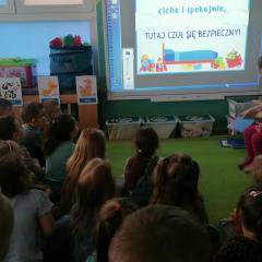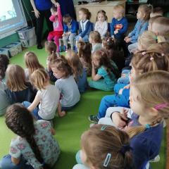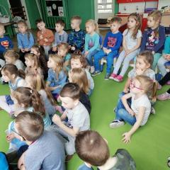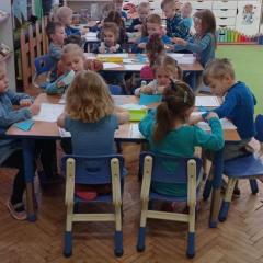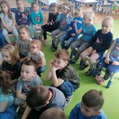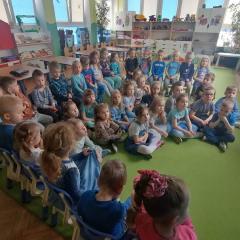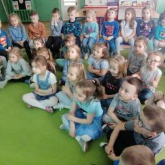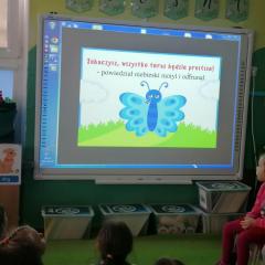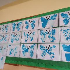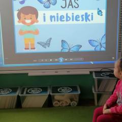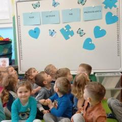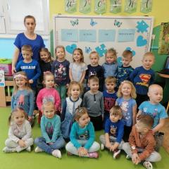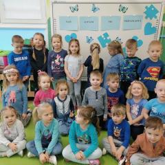 W dniu 2 kwietnia obchodzony jest Światowy Dzień Świadomości Autyzmu. Przedszkolaki solidaryzując się z osobami ze spektrum autyzmu przyszły ubrane na niebiesko. Poprzez różnego rodzaju aktywności grupa Jeżyki i Żabki włączyła się w uroczyste obchody tego dnia. Dzieci obejrzały prezentację multimedialną, układały z różnych rodzajów materiałów literę A, a także wykonały pracę plastyczną "Niebieskie motyle".