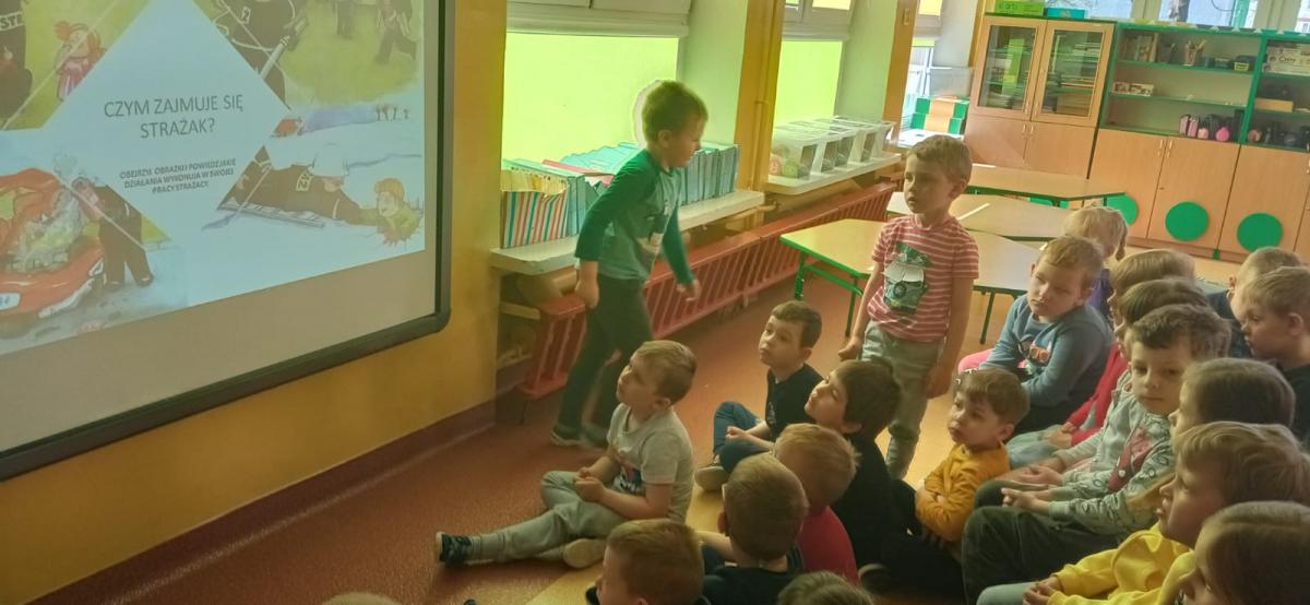 4 maja w naszym przedszkolu świętowaliśmy Dzień Strażaka. Dzieci obejrzały prezentację multimedialną oraz film edukacyjny na temat ciężkiej i odpowiedzialnej pracy strażaka. Poznały niezbędny sprzęt, umundurowanie wykorzystywane w tym zawodzie oraz zaśpiewały piosenkę "Pali się".