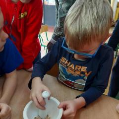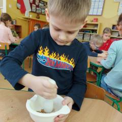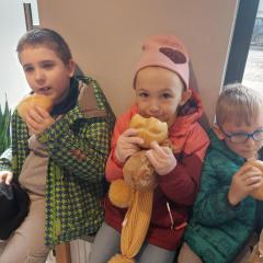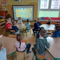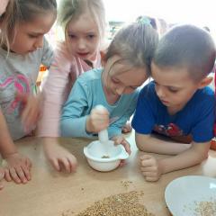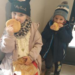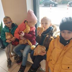"Być dobrym jak chleb" to kolejne zadanie zrealizowane przez grupę Biedronki w ramach projektu edukacyjnego Piękna nasza Polska Cała. Podczas zajęć dzieci poznały proces obróbki ziarna do powstania mąki. Dowiedziały się że chleb powstaje dzięki ciężkiej pracy trzech osób: rolnika, młynarza i piekarza. Kodowały na macie drogę po kolejnych etapach powstawania pieczywa. W trakcie wizyty w lokalnej piekarni dzieci poznały rodzaje pieczywa oraz mogły samodzielnie kupić bułkę.