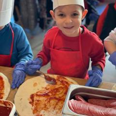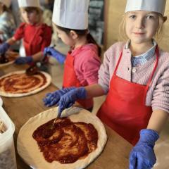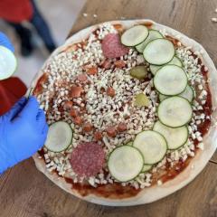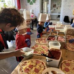 Przedszkolaki wzięły udział w rozmowie na temat, w jaki sposób robi się ciasto na pizzę, a także poznały składniki używane do robienia pizzy. Ponadto miały okazję zobaczyć piec, w którym piecze się pizzę. Następnie wzięły udział w profesjonalnym pokazie robienia pizzy. Dzieci wybierając ulubione dodatki tworzyły własne kompozycje smakowe, po czym przyszedł czas na wspólną konsumpcję. Wycieczka była bardzo udana. Wszyscy wrócili w doskonałych humorach do przedszkola.