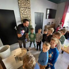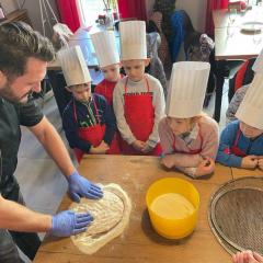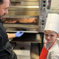 Przedszkolaki dowiedziały się również, na czym polega praca w tym miejscu i co można oprócz pizzy tam zjeść. Dzieci miały możliwość przypomnienia sobie zasad kulturalnego zachowania się w pizzerii, a także przy stole podczas posiłku.