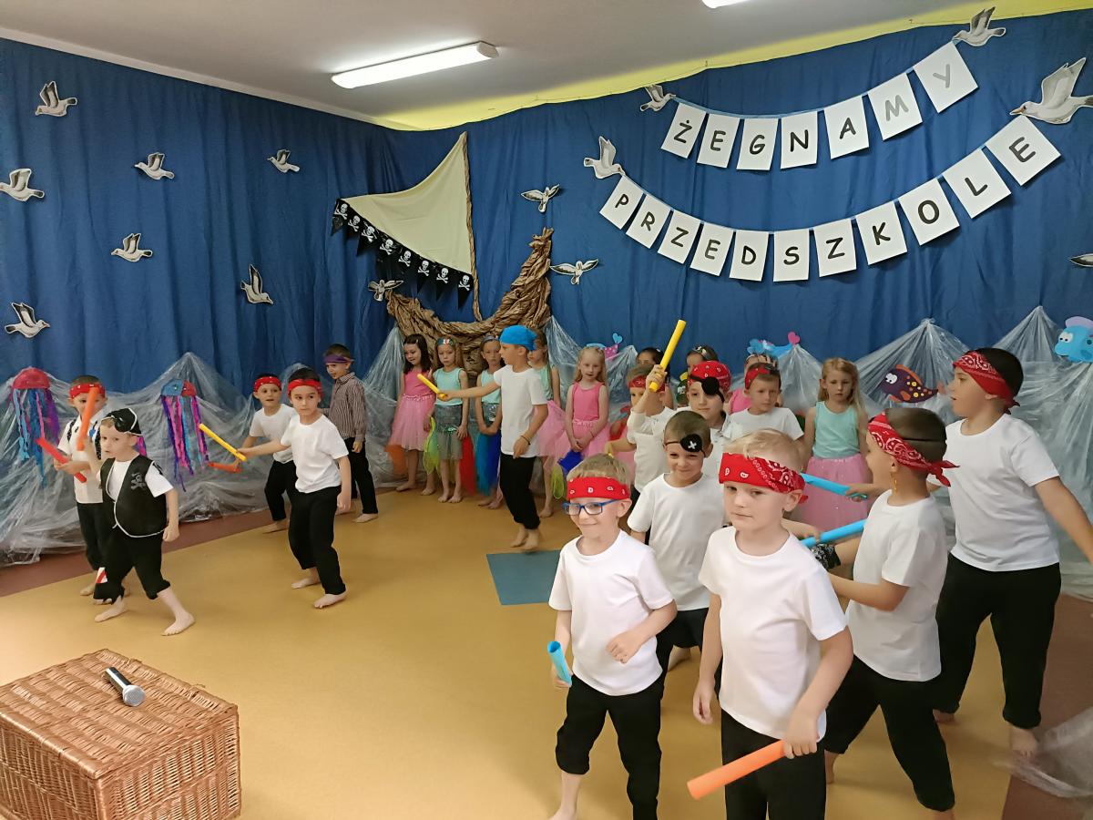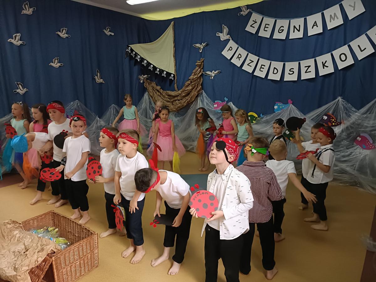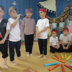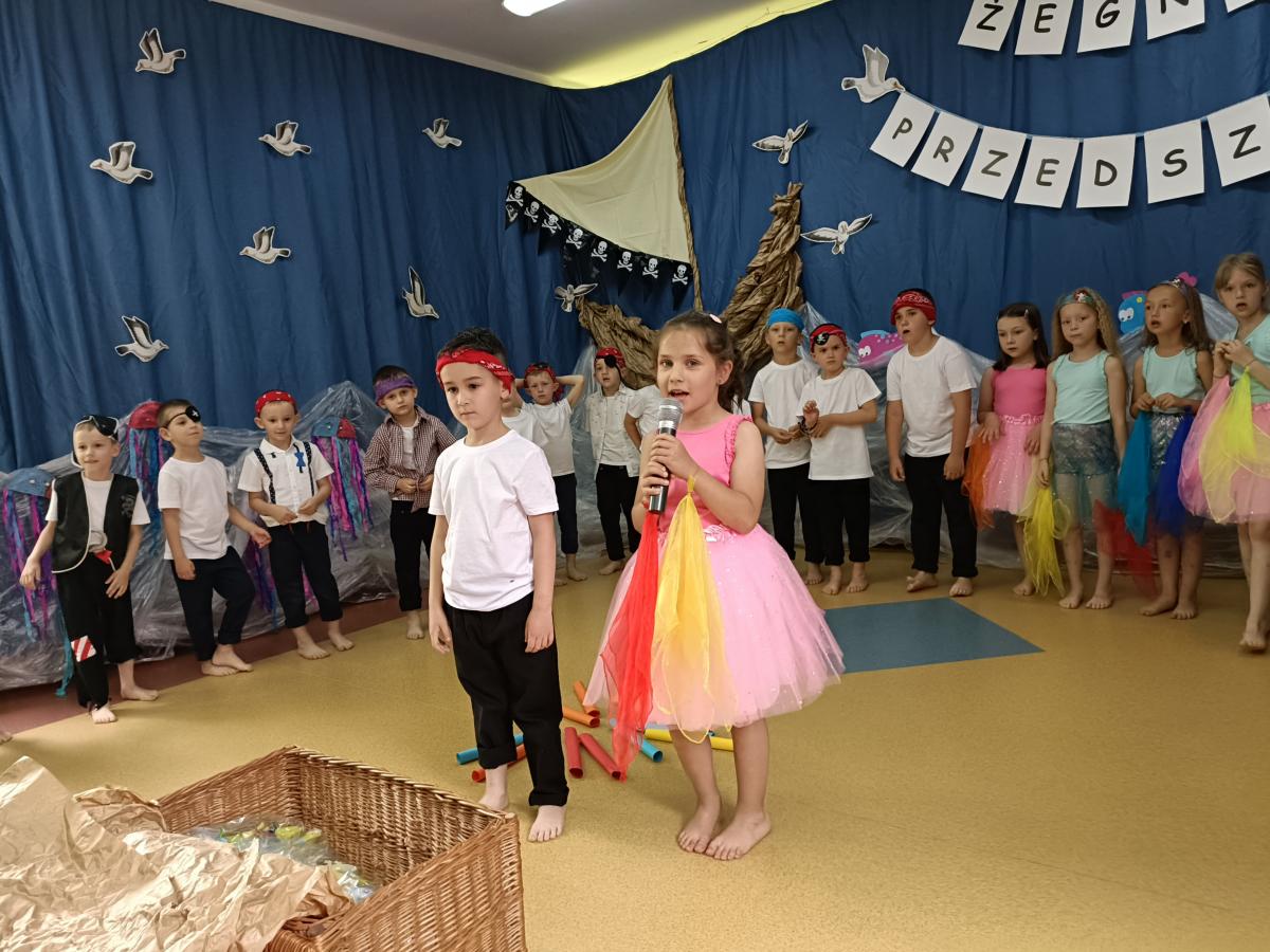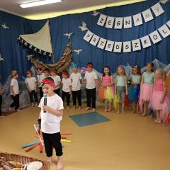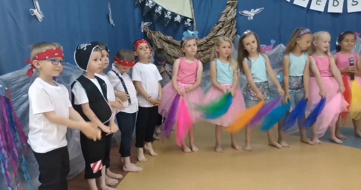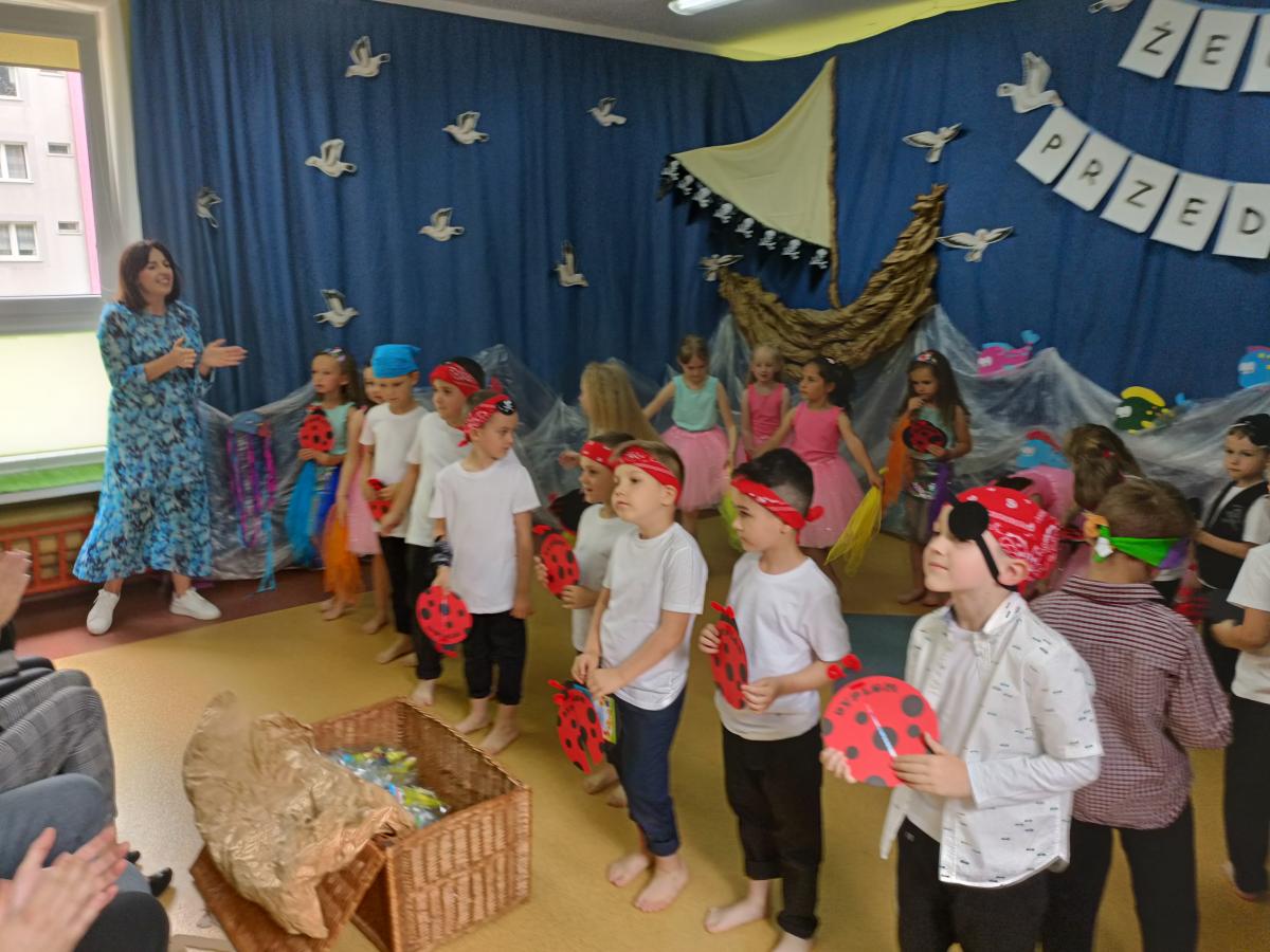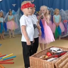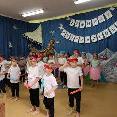 Wakacje zbliżają się wielkimi krokami, a wraz z nimi zakończenie roku szkolnego i ostatnie wspólnie spędzone dni w przedszkolu. Z tej okazji grupa Biedronek zaprosiła do przedszkola swoich najbliższych i zaprezentowała występ artystyczny pt: "Morska wyprawa". W rejs statkiem zabrali nas przemili piraci i piękne syreny. Nie zabrakło ciekawych przygód, tańców i piosenek ochoczo śpiewanych przez starszaki.