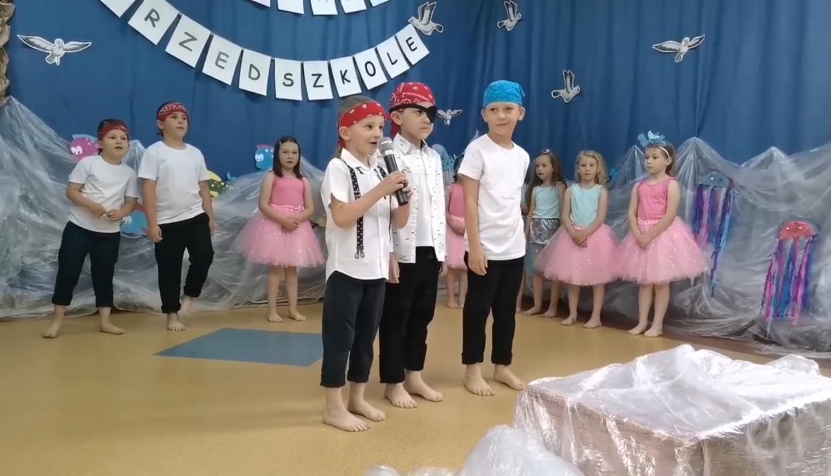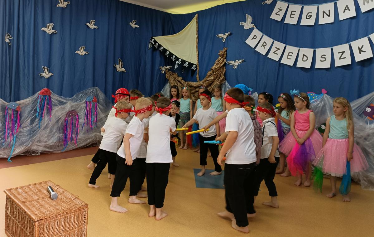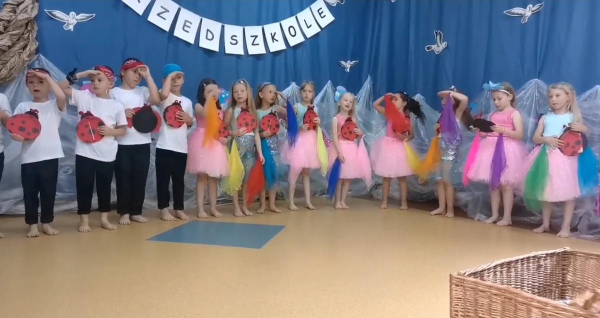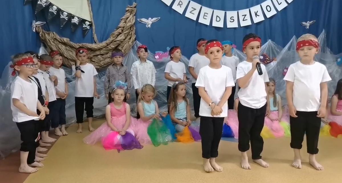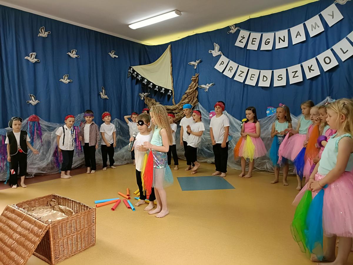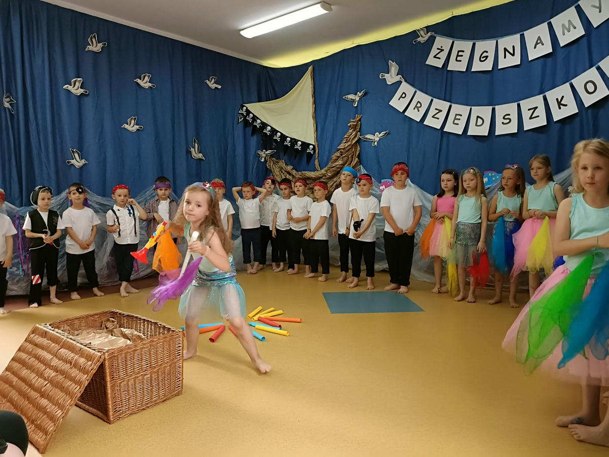 Wakacje zbliżają się wielkimi krokami, a wraz z nimi zakończenie roku szkolnego i ostatnie wspólnie spędzone dni w przedszkolu. Z tej okazji grupa Biedronek zaprosiła do przedszkola swoich najbliższych i zaprezentowała występ artystyczny pt: "Morska wyprawa". W rejs statkiem zabrali nas przemili piraci i piękne syreny. Nie zabrakło ciekawych przygód, tańców i piosenek ochoczo śpiewanych przez starszaki.