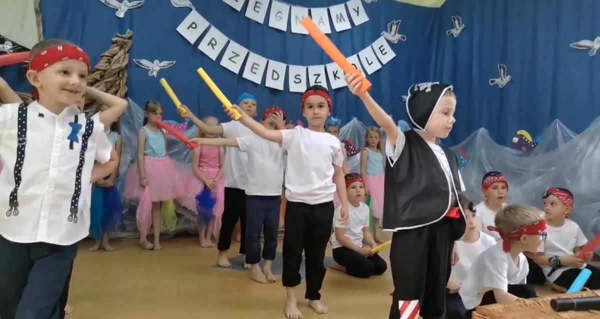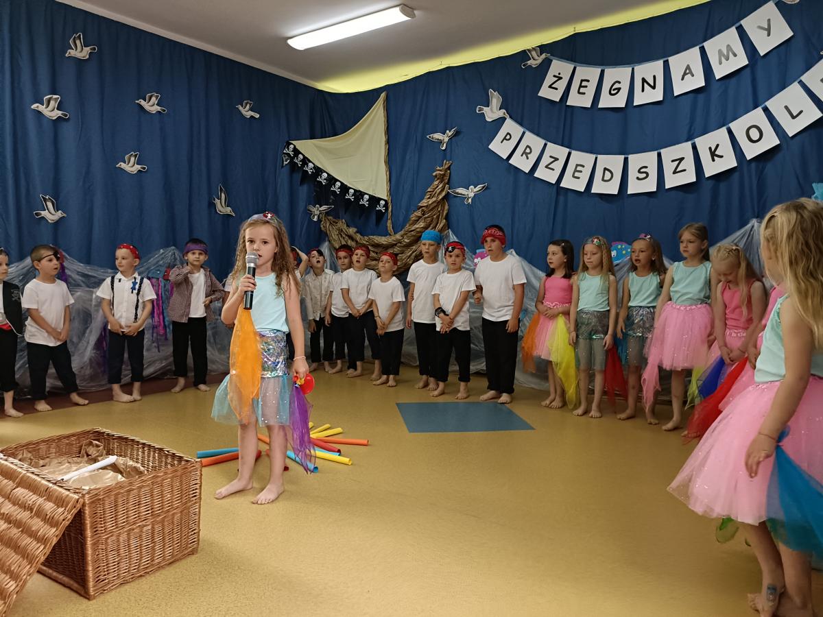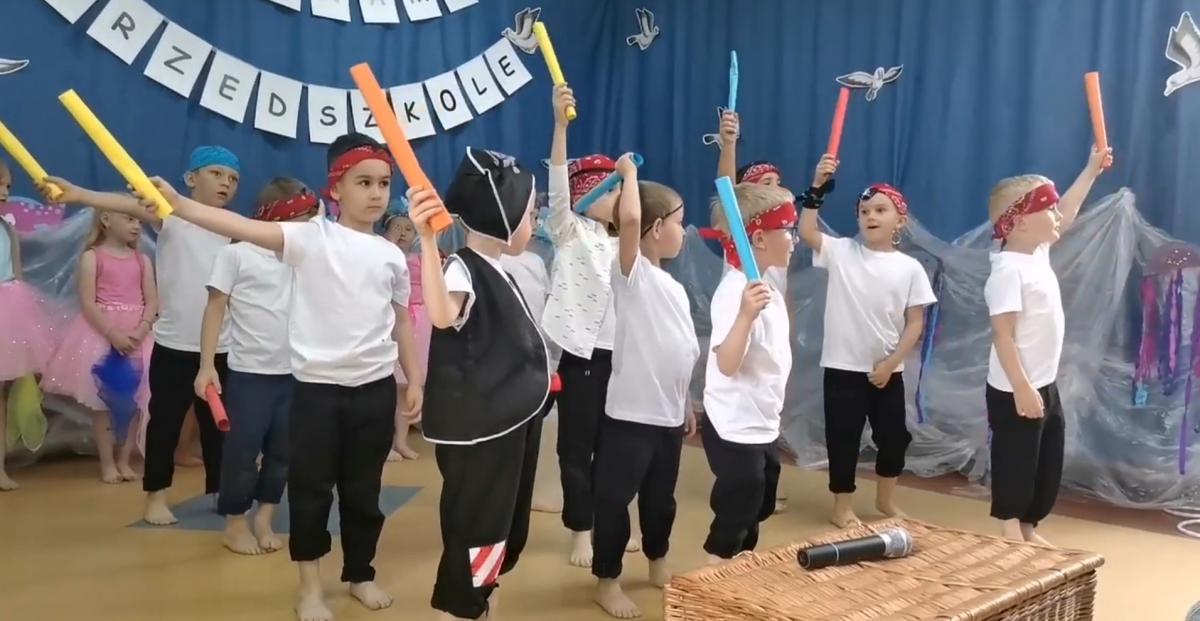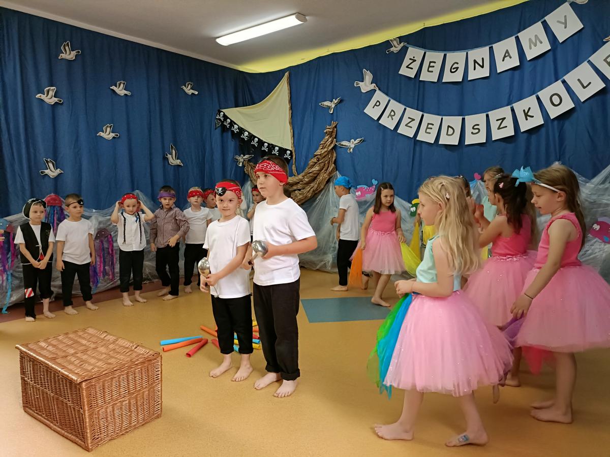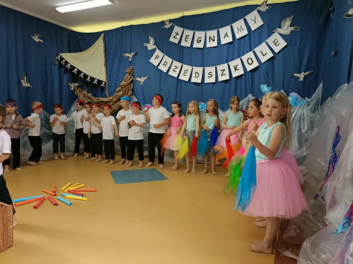 Wakacje zbliżają się wielkimi krokami, a wraz z nimi zakończenie roku szkolnego i ostatnie wspólnie spędzone dni w przedszkolu. Z tej okazji grupa Biedronek zaprosiła do przedszkola swoich najbliższych i zaprezentowała występ artystyczny pt: "Morska wyprawa". W rejs statkiem zabrali nas przemili piraci i piękne syreny. Nie zabrakło ciekawych przygód, tańców i piosenek ochoczo śpiewanych przez starszaki.
