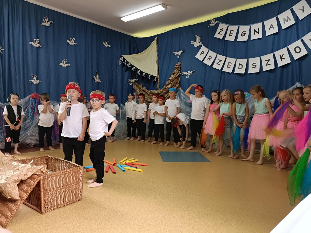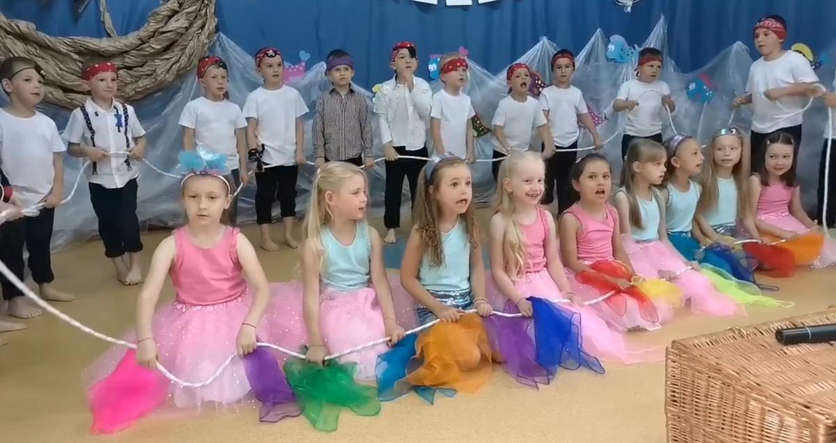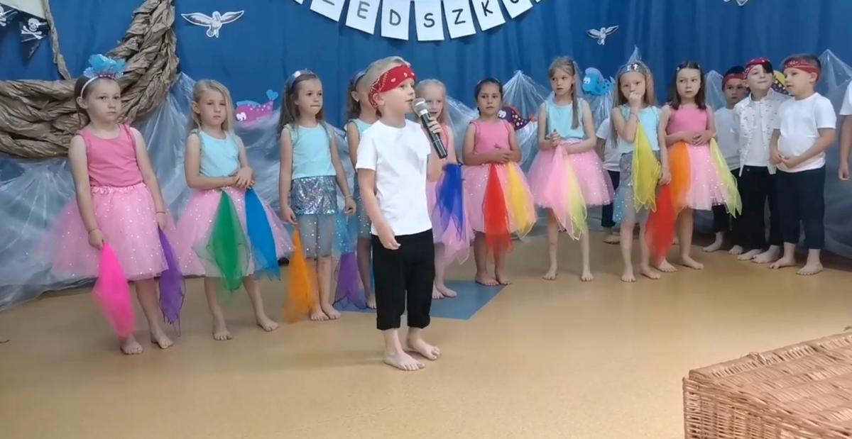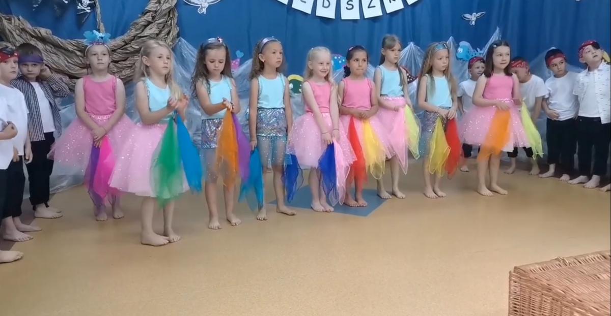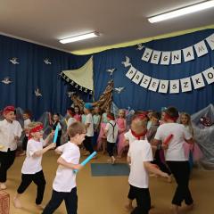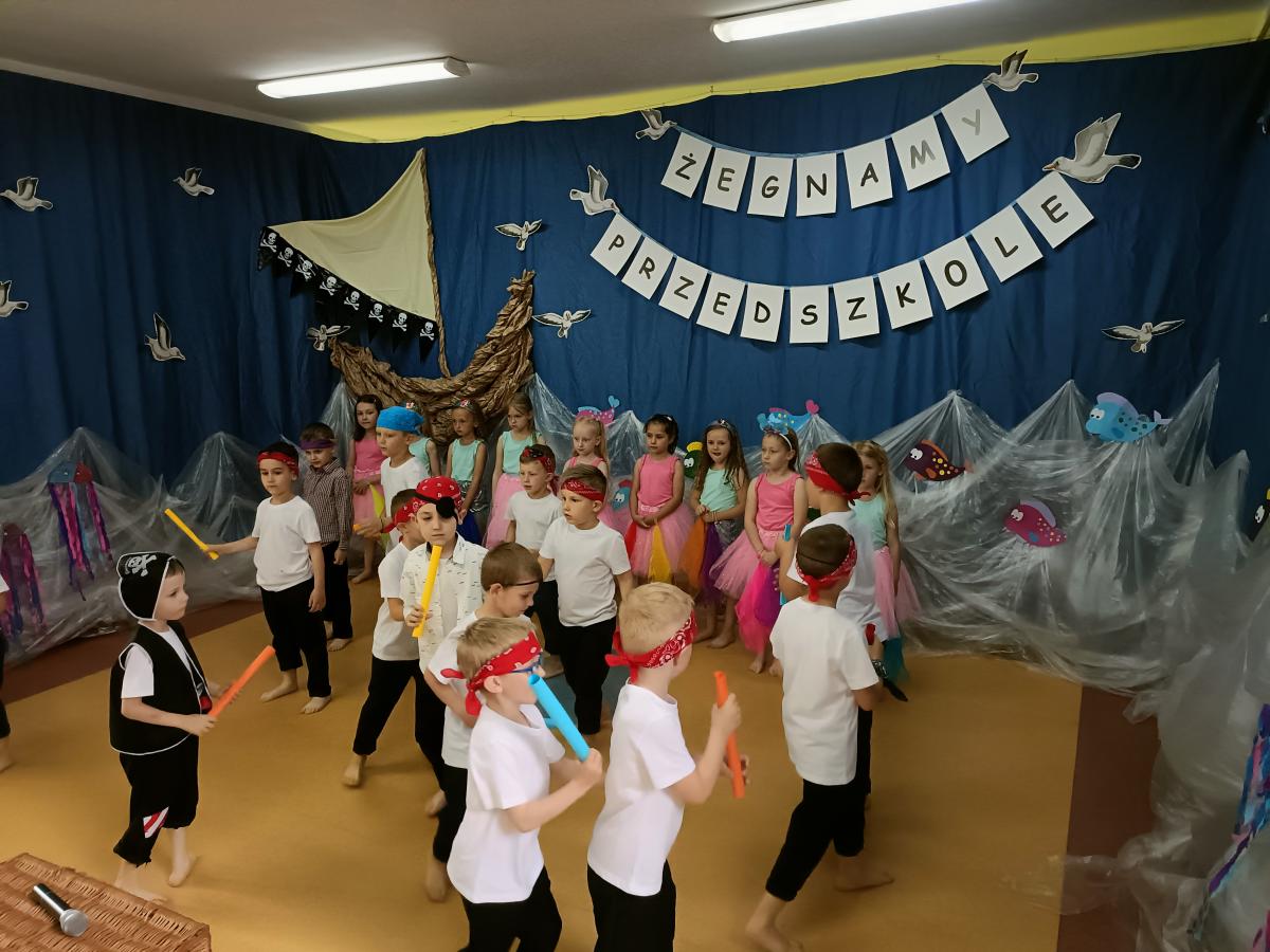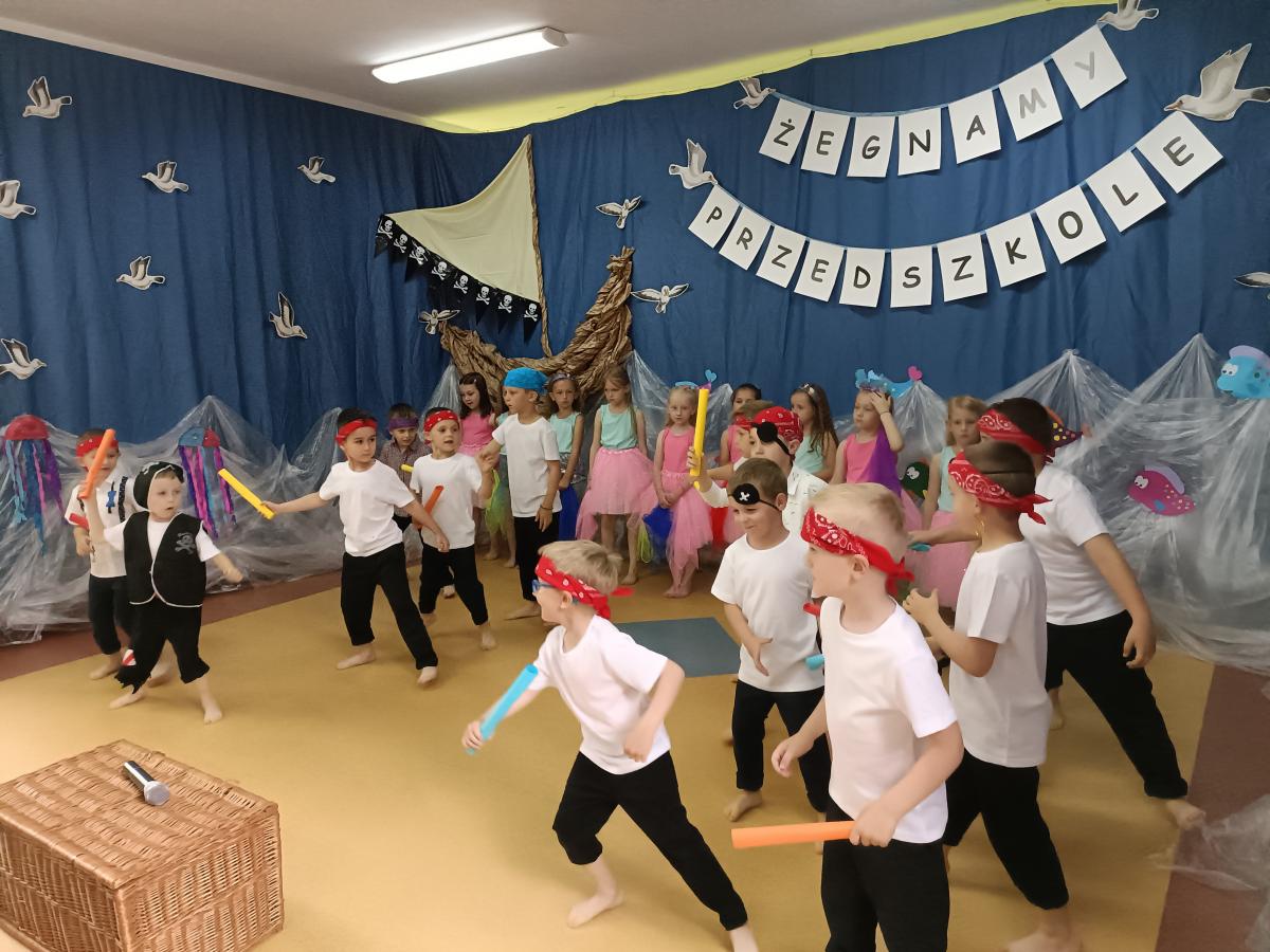 Wakacje zbliżają się wielkimi krokami, a wraz z nimi zakończenie roku szkolnego i ostatnie wspólnie spędzone dni w przedszkolu. Z tej okazji grupa Biedronek zaprosiła do przedszkola swoich najbliższych i zaprezentowała występ artystyczny pt: "Morska wyprawa". W rejs statkiem zabrali nas przemili piraci i piękne syreny. Nie zabrakło ciekawych przygód, tańców i piosenek ochoczo śpiewanych przez starszaki.