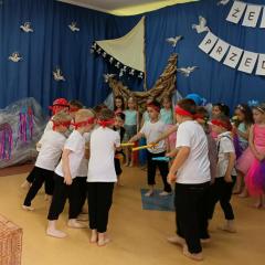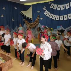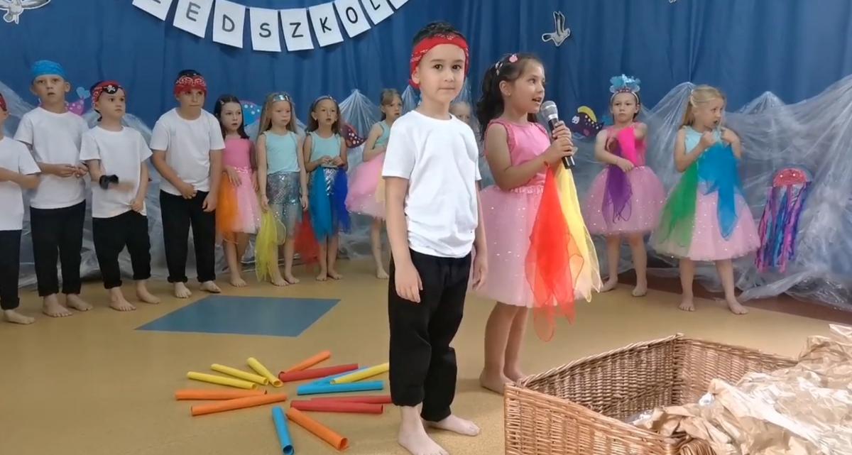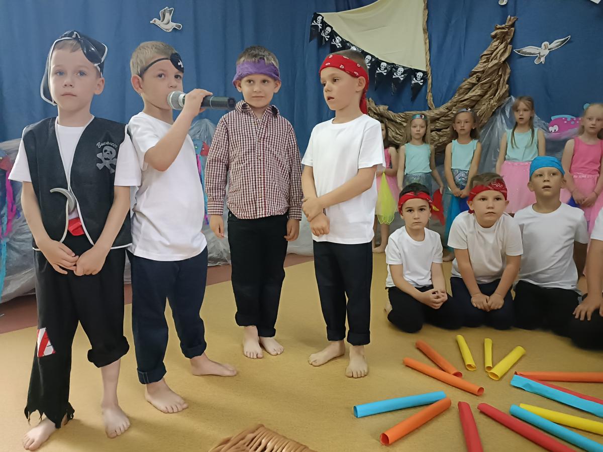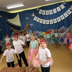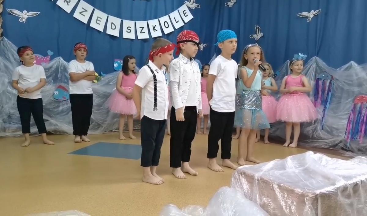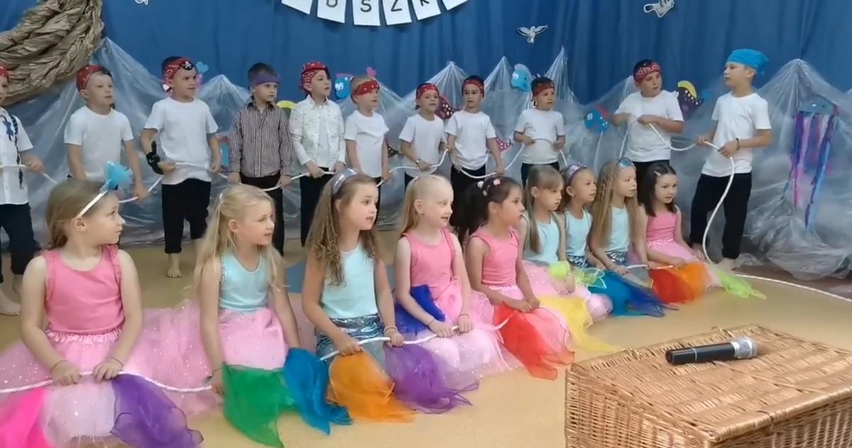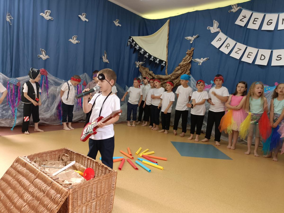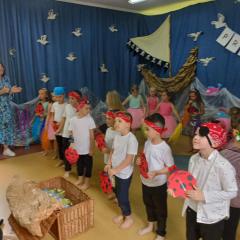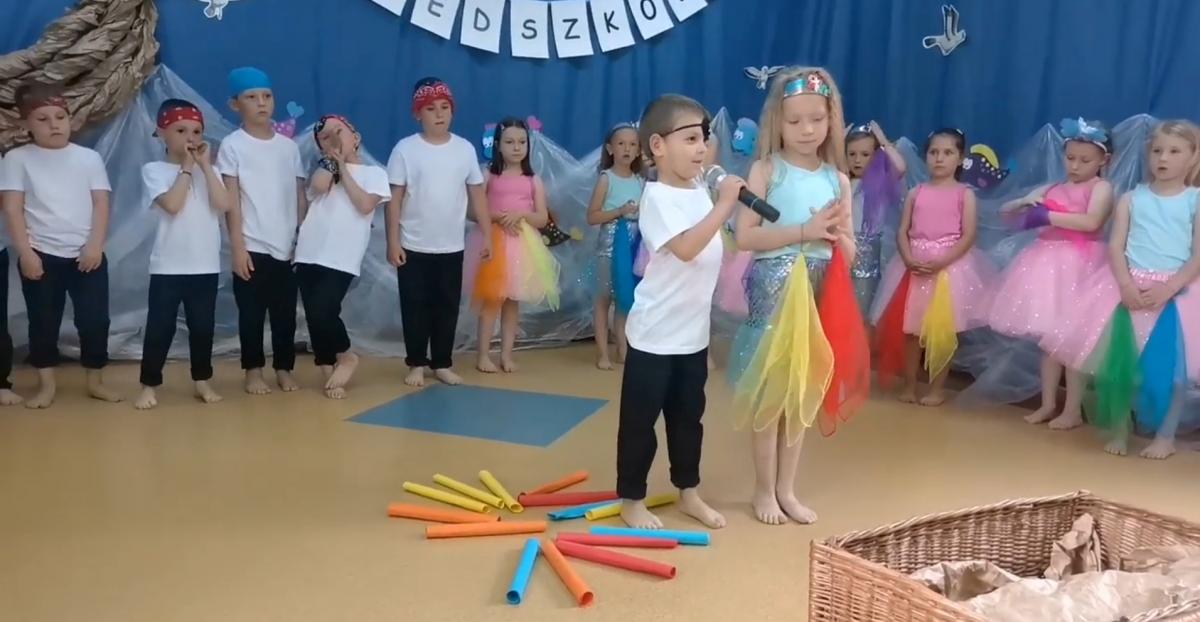 Wakacje zbliżają się wielkimi krokami, a wraz z nimi zakończenie roku szkolnego i ostatnie wspólnie spędzone dni w przedszkolu. Z tej okazji grupa Biedronek zaprosiła do przedszkola swoich najbliższych i zaprezentowała występ artystyczny pt: "Morska wyprawa". W rejs statkiem zabrali nas przemili piraci i piękne syreny. Nie zabrakło ciekawych przygód, tańców i piosenek ochoczo śpiewanych przez starszaki.