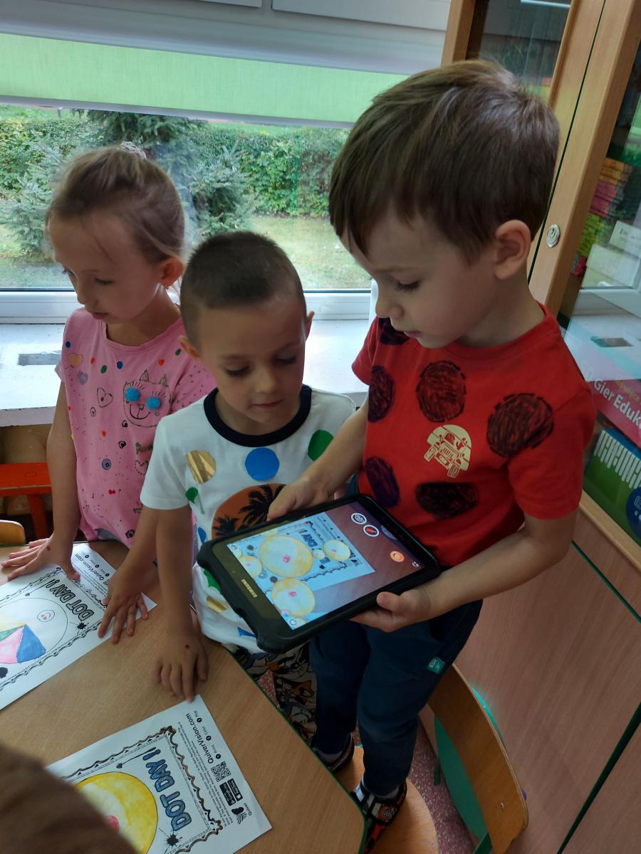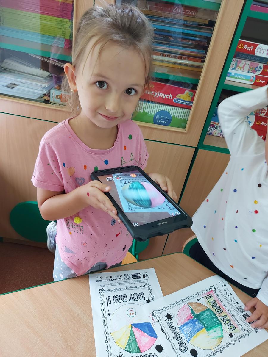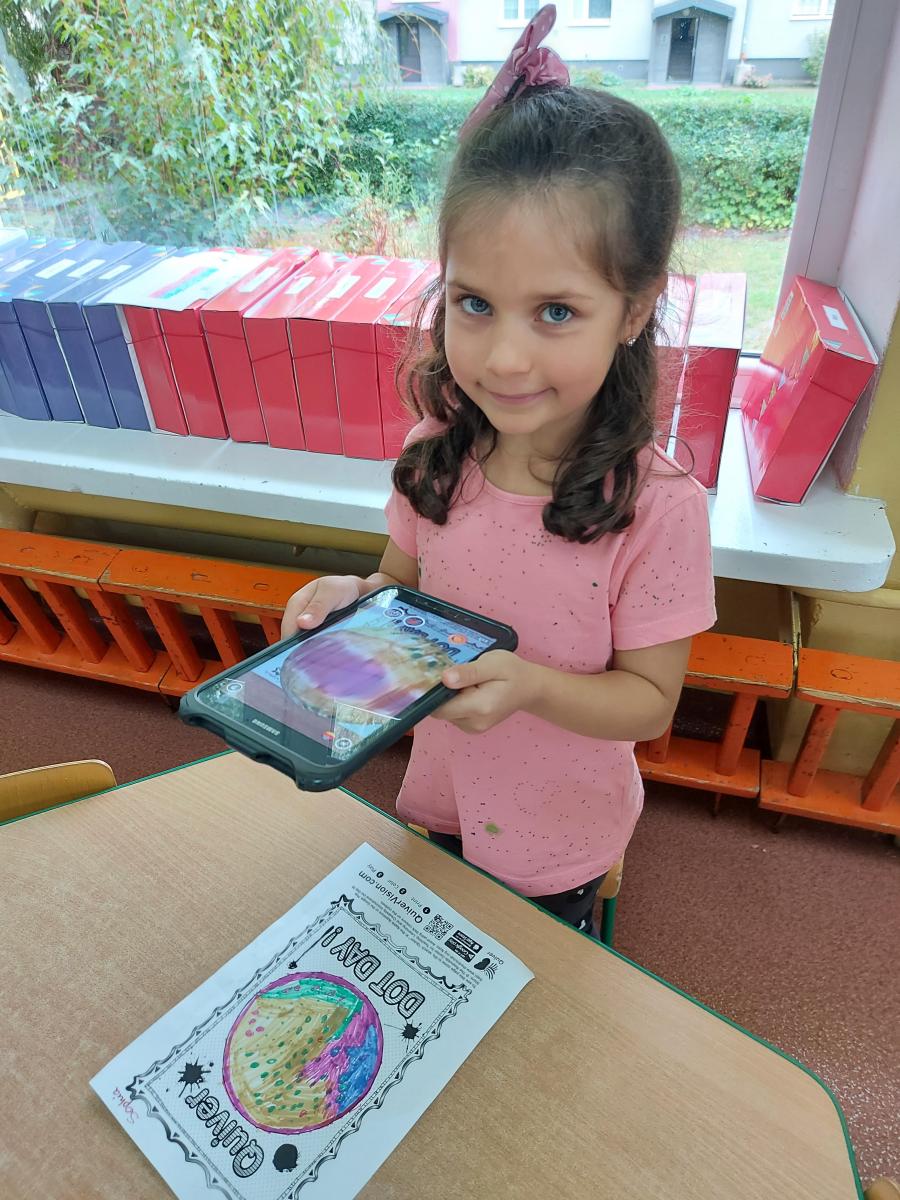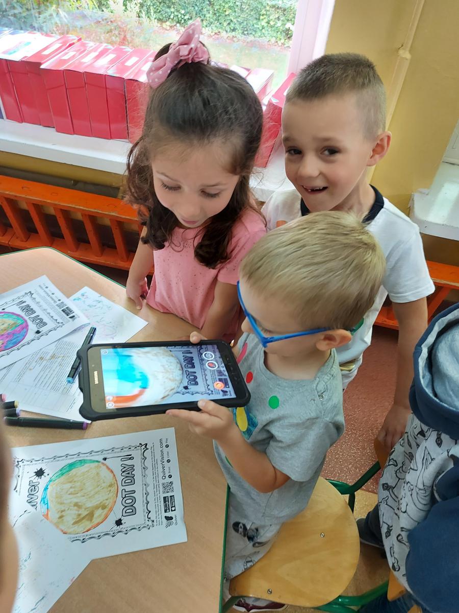 W tym dniu przypomnieliśmy sobie historie Vashti, która nie wiedział że potrafi malować najpiękniejsze kropki. Tańczyliśmy, graliśmy w grę na wirtualnej macie "Kropka wyszła" oraz ożywiliśmy nasze kropki w aplikacji Quiver.