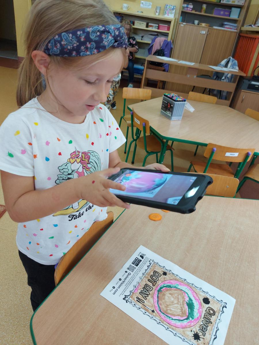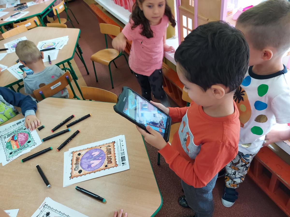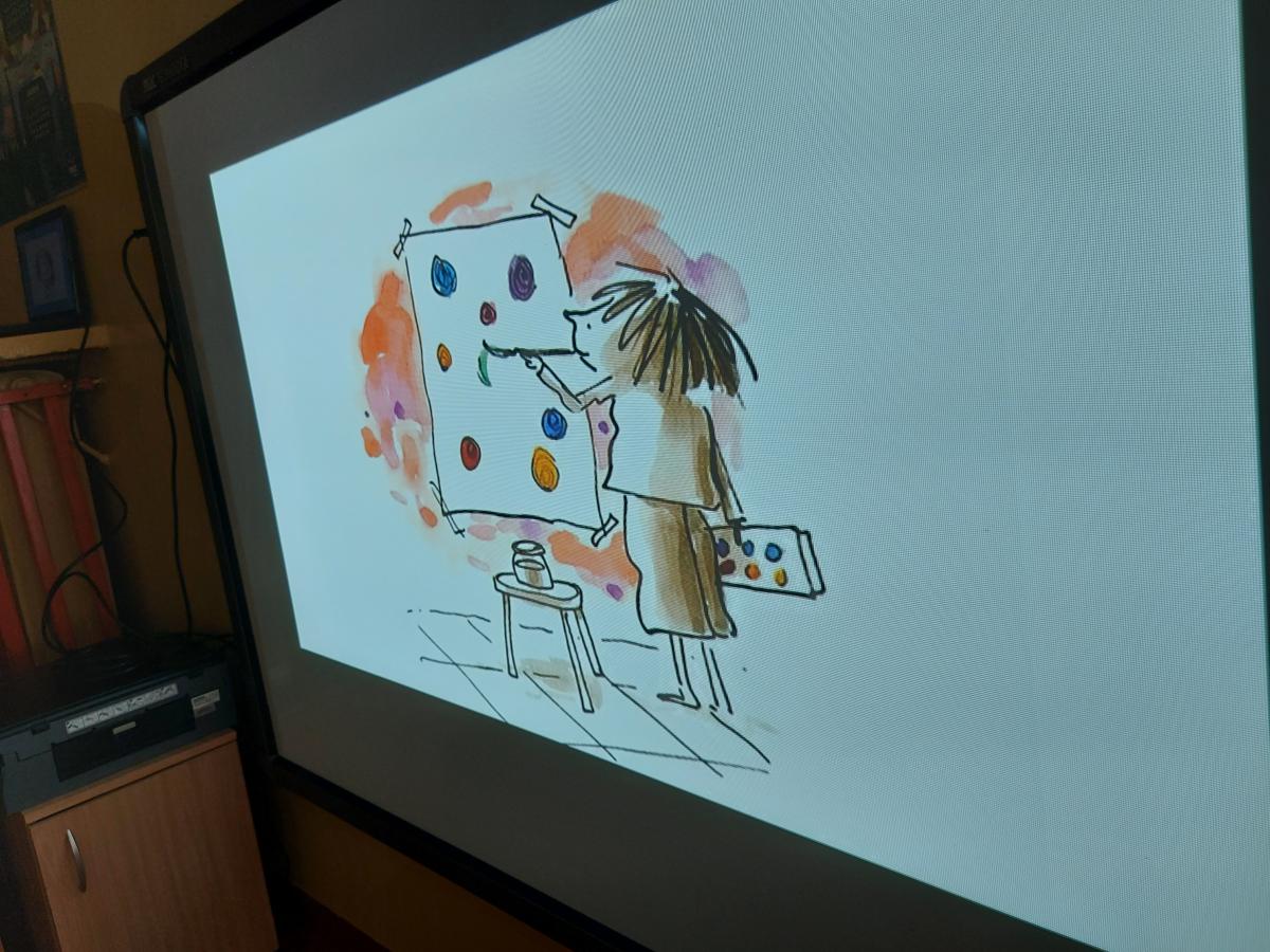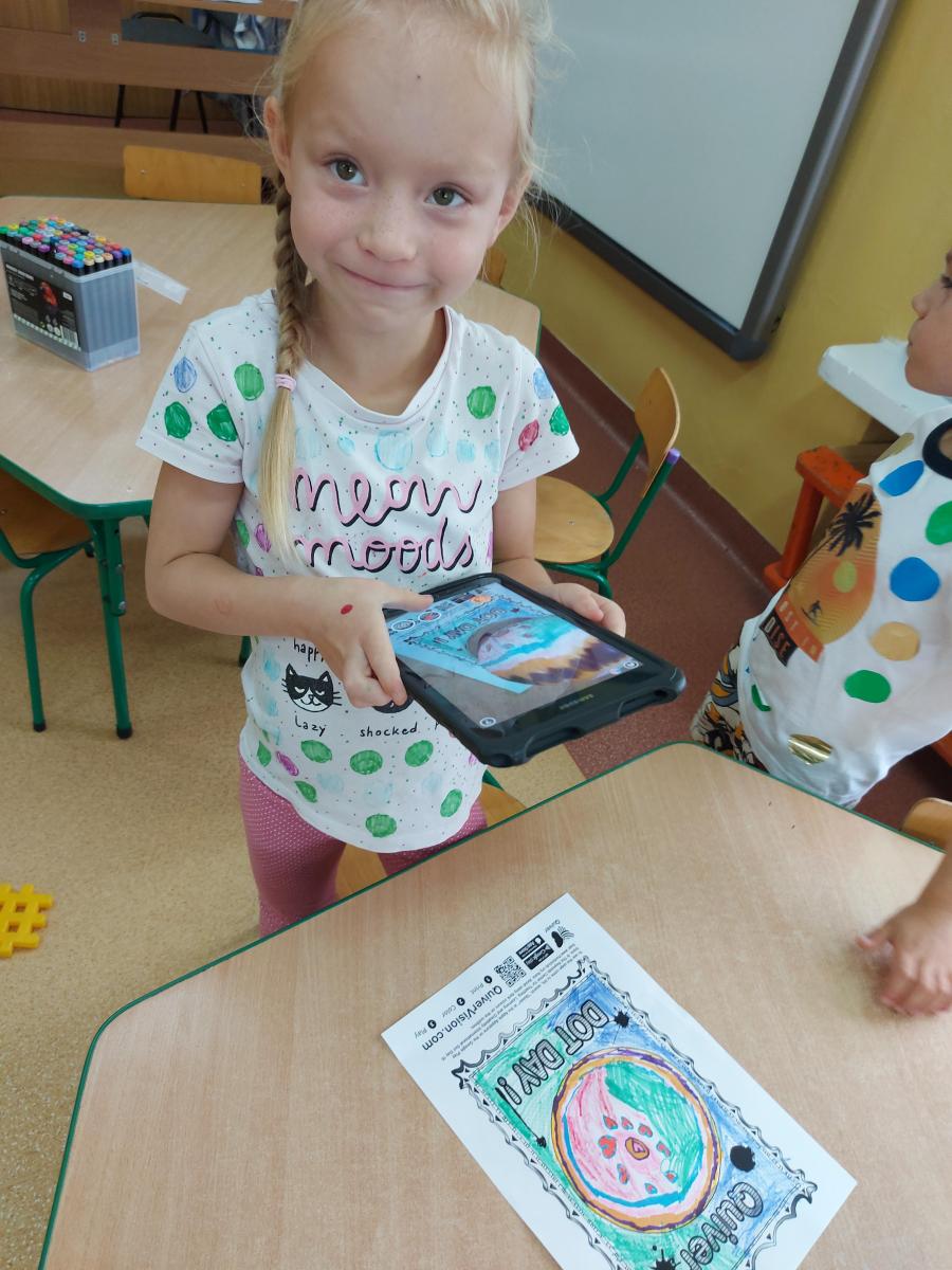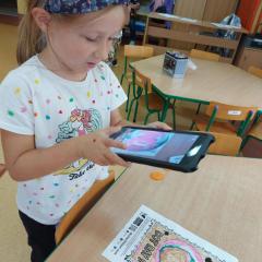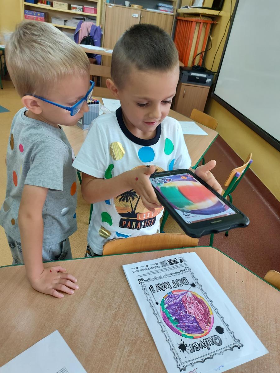 W tym dniu przypomnieliśmy sobie historie Vashti, która nie wiedział że potrafi malować najpiękniejsze kropki. Tańczyliśmy, graliśmy w grę na wirtualnej macie "Kropka wyszła" oraz ożywiliśmy nasze kropki w aplikacji Quiver.