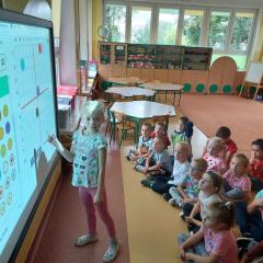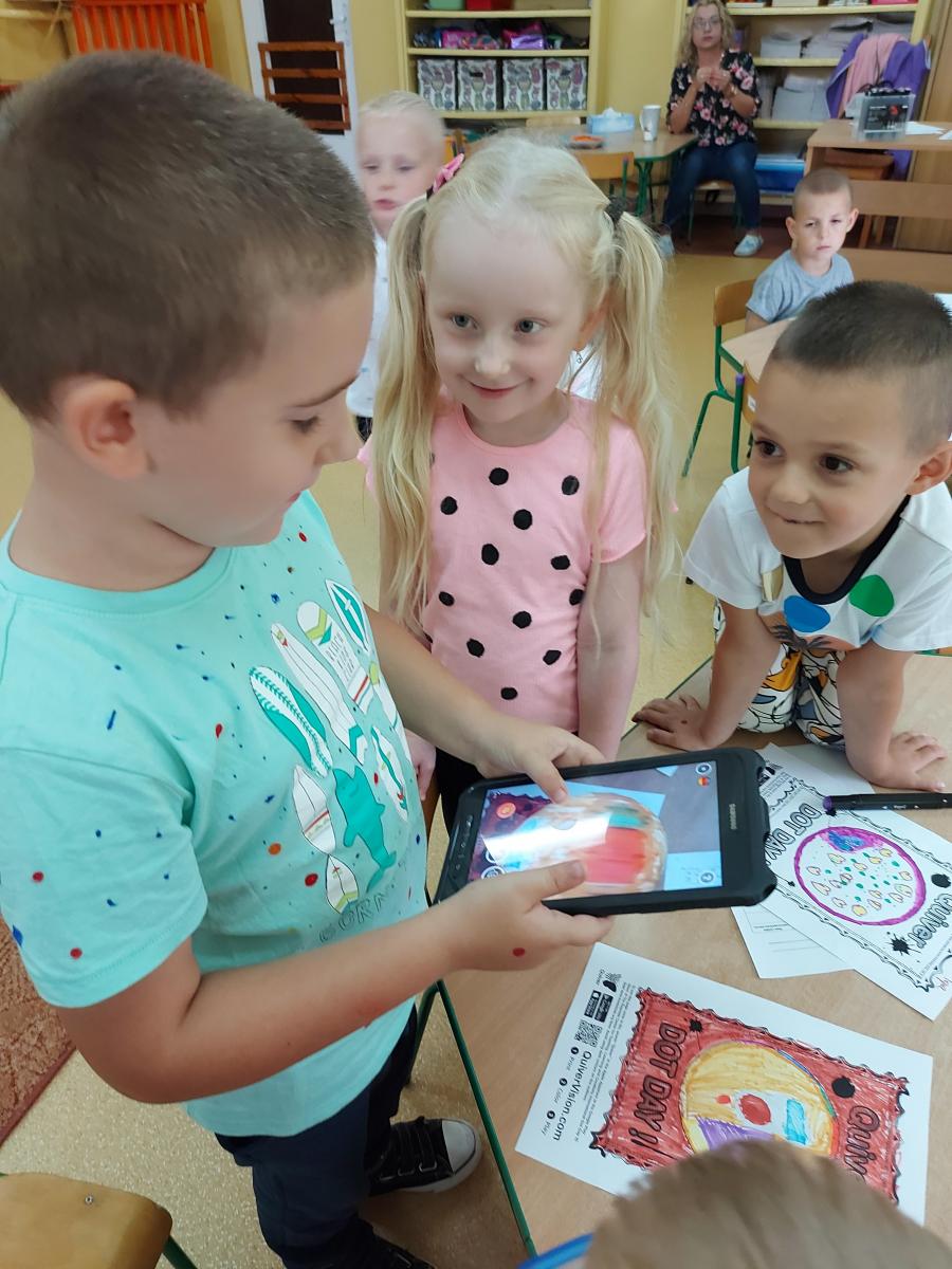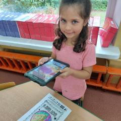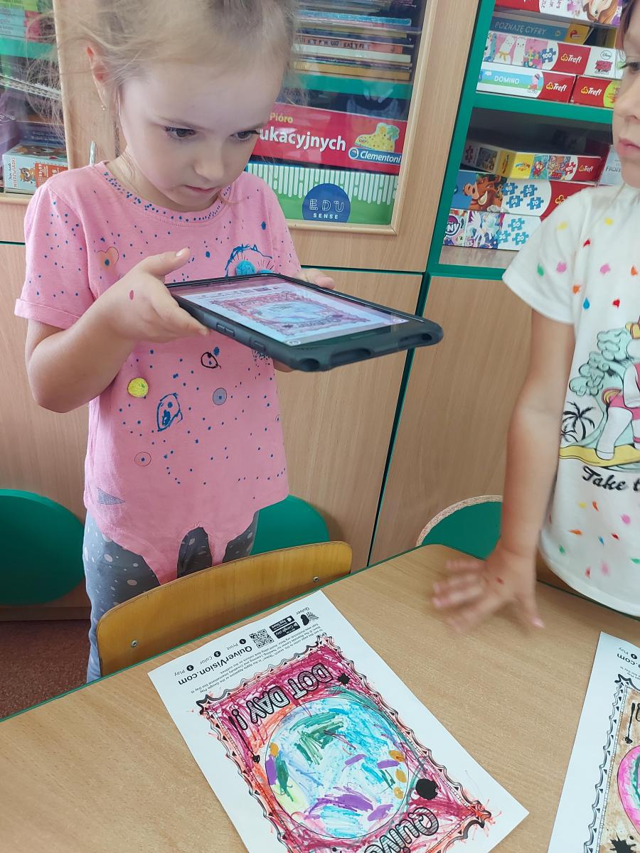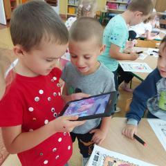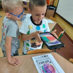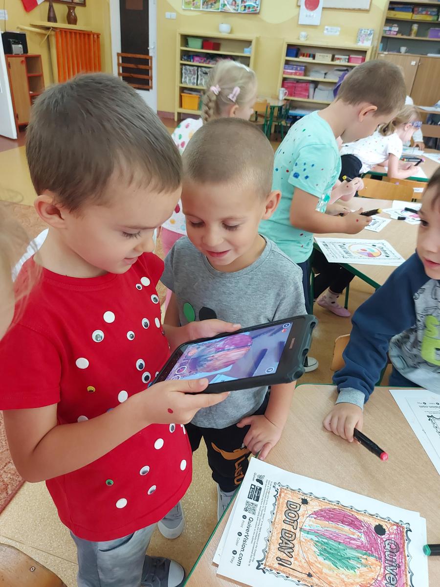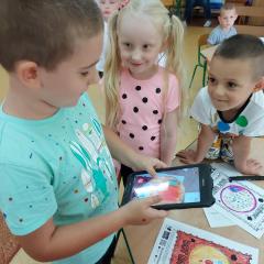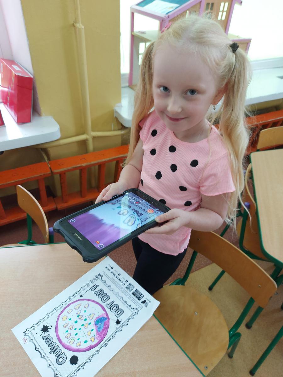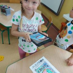 W tym dniu przypomnieliśmy sobie historie Vashti, która nie wiedział że potrafi malować najpiękniejsze kropki. Tańczyliśmy, graliśmy w grę na wirtualnej macie "Kropka wyszła" oraz ożywiliśmy nasze kropki w aplikacji Quiver.