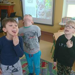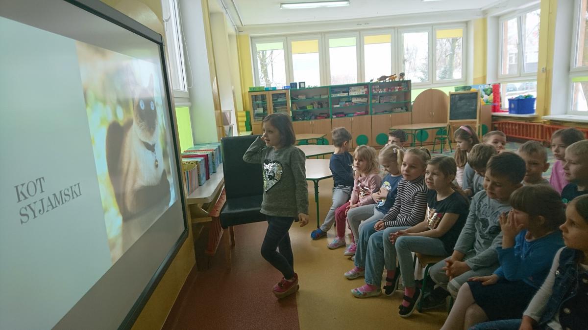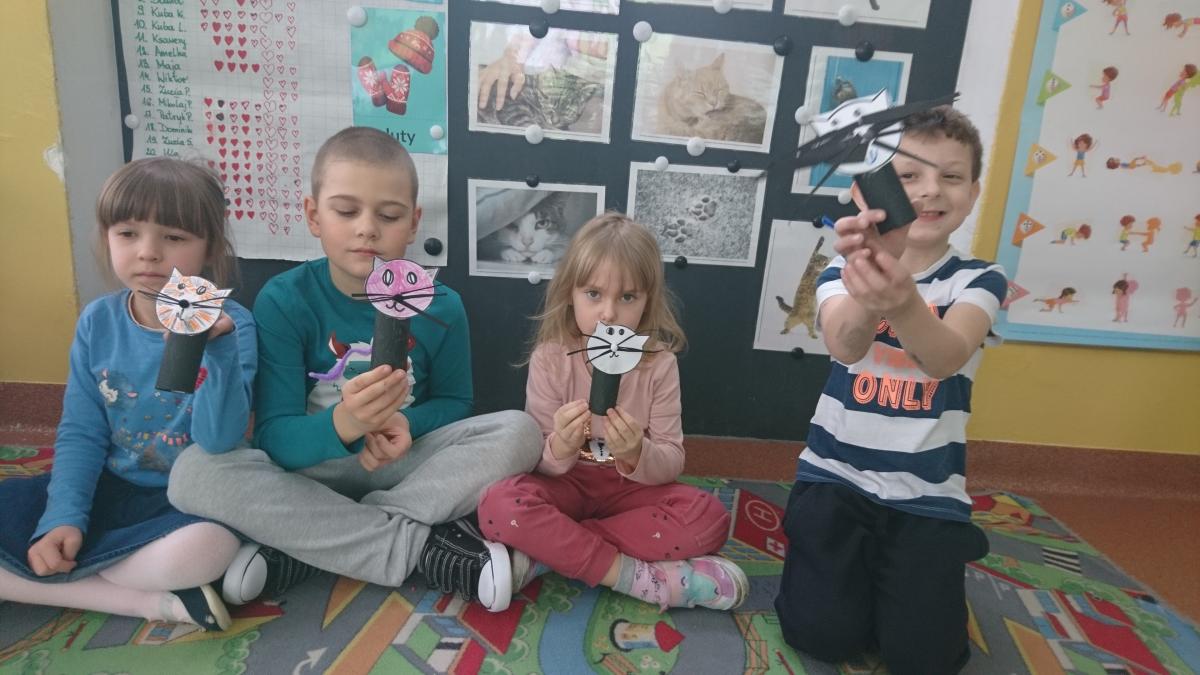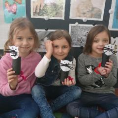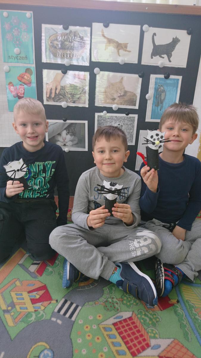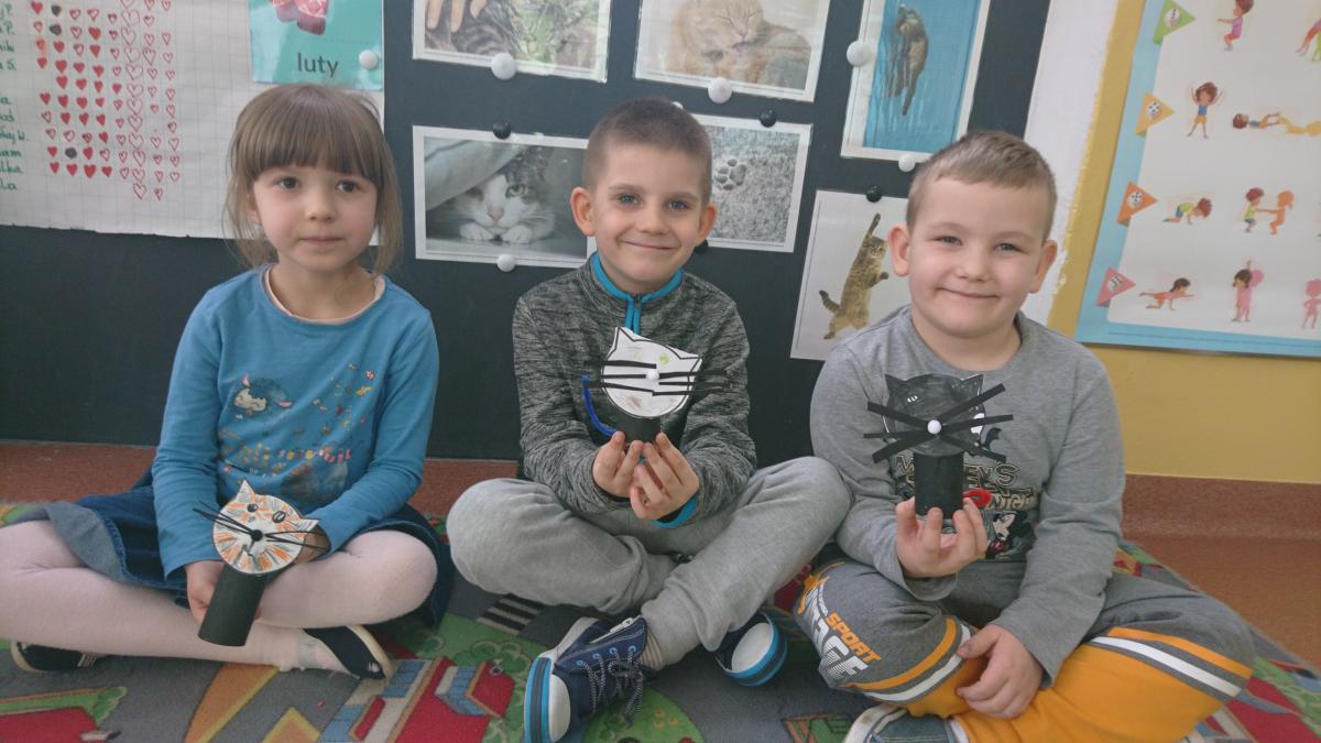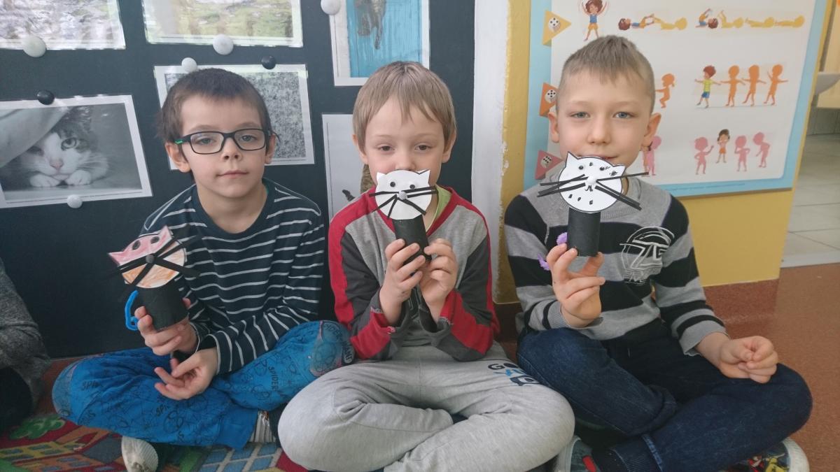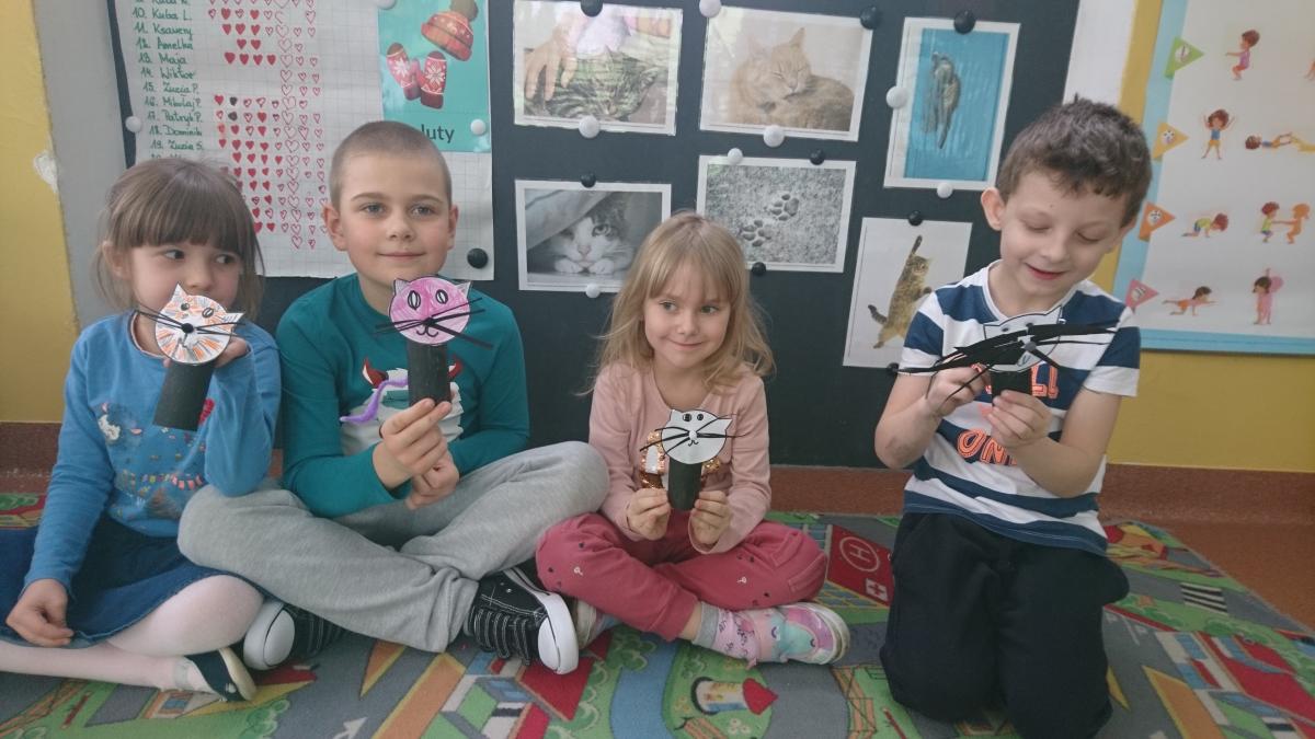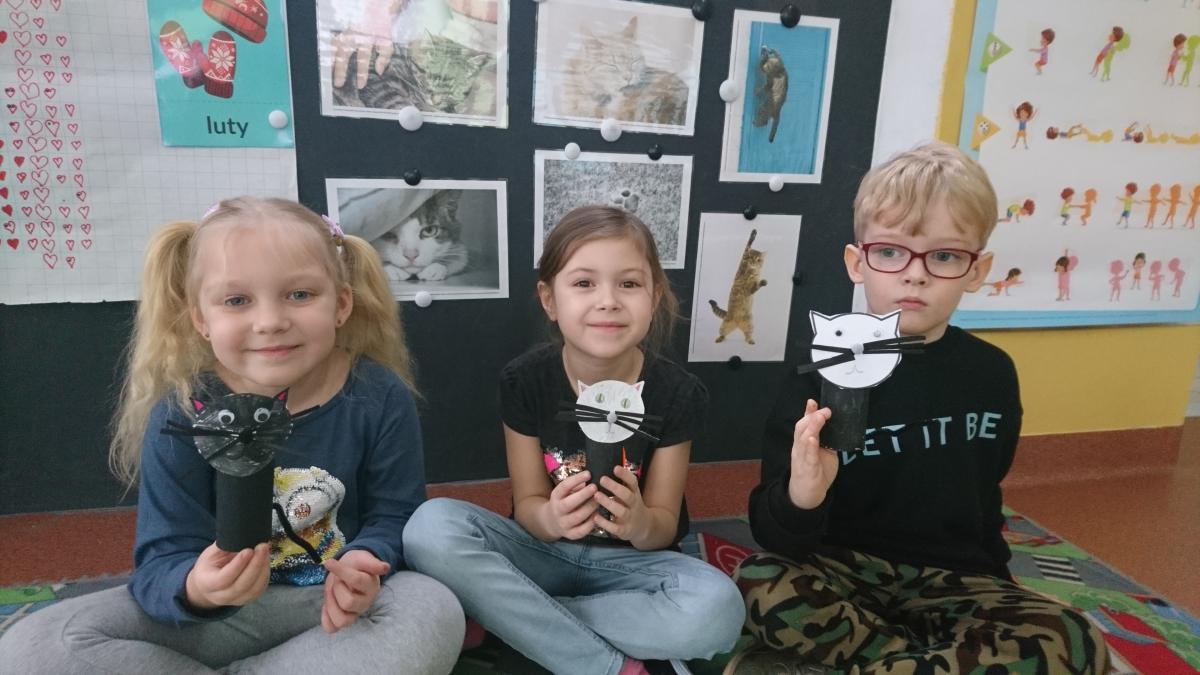 Jak co roku w naszym przedszkolu 17 lutego świętowaliśmy Dzień Kota. Z tej okazji grupa Pszczółek obejrzała prezentację multimedialną o kotach i ich zwyczajach. Dzieci poznały wybrane rasy kotów i opisywały ich wygląd. Kodowaliśmy koty według wielkości i kolorów, oraz na macie do kodowania według współrzędnych. Nie zabrakło ćwiczeń artykulacyjnych i gimnastyki języka. Dzieci wykonały pracę plastyczną "Kot" z rolki po papierze toaletowym.