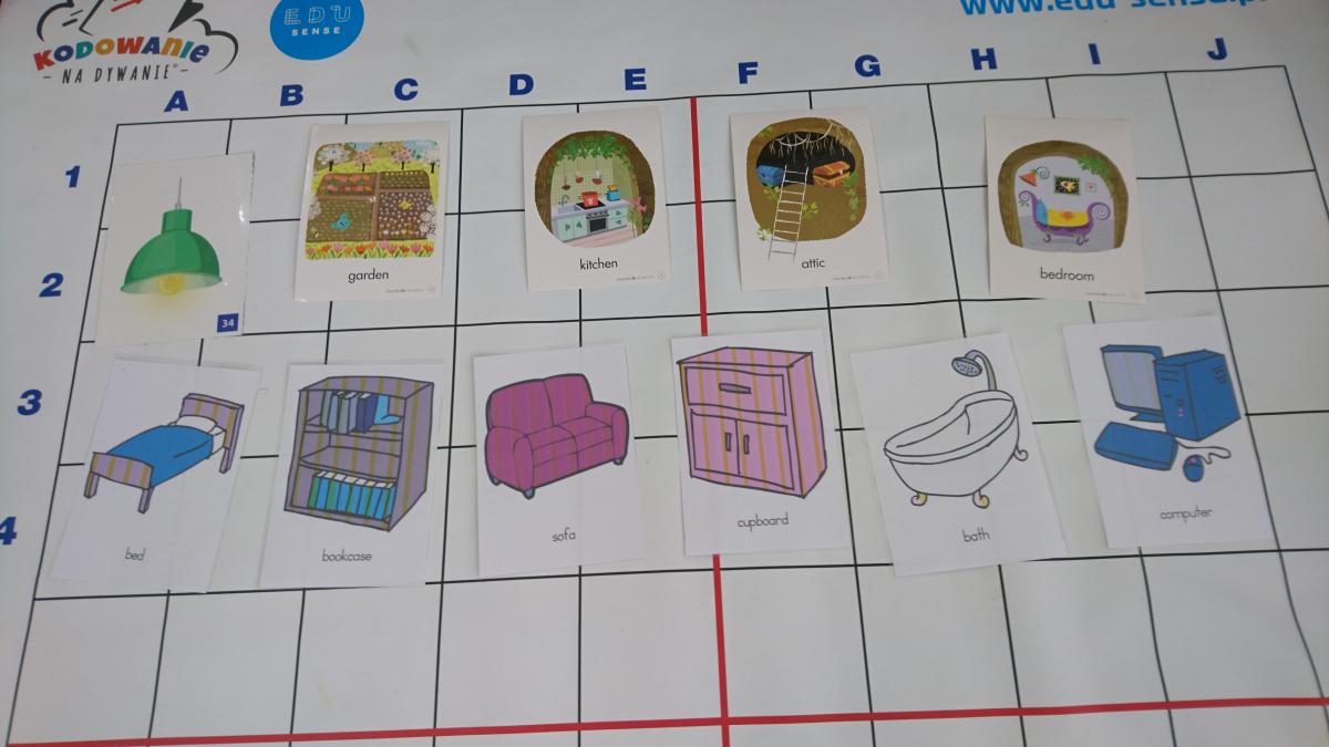 Na zajęciach z języka angielskiego dzieci, realizowały temat "Furniture - Meblujemy mieszkanie Ani", poznając nazwy wybranych pomieszczeń i wyposażenia mieszkania w języku angielskim.