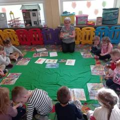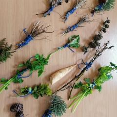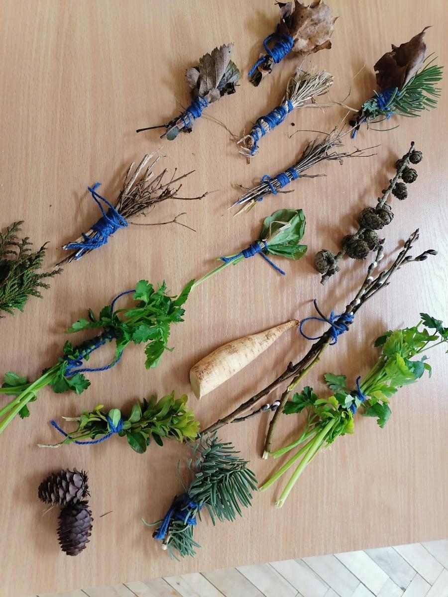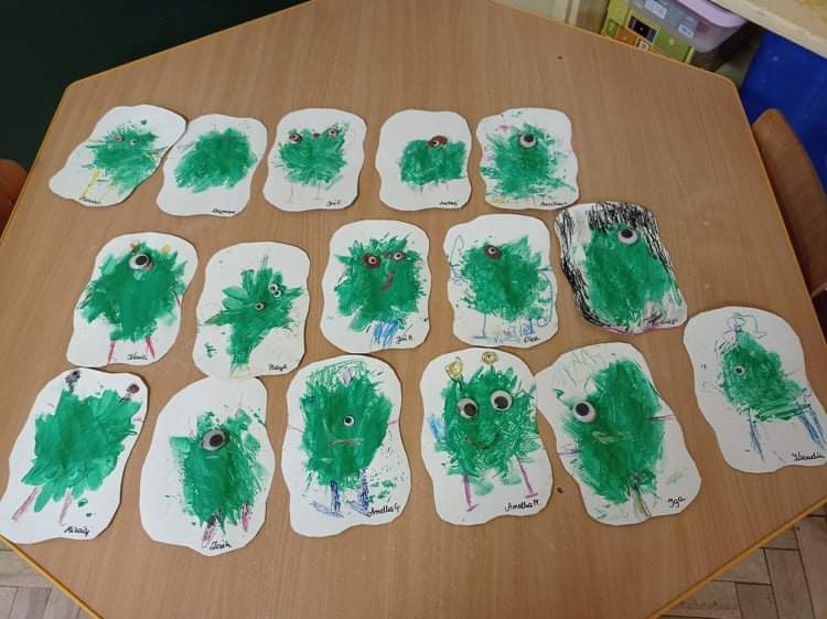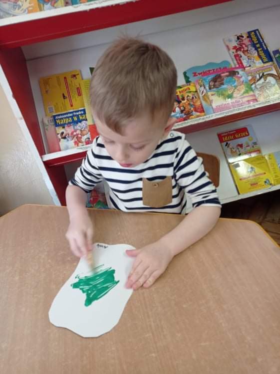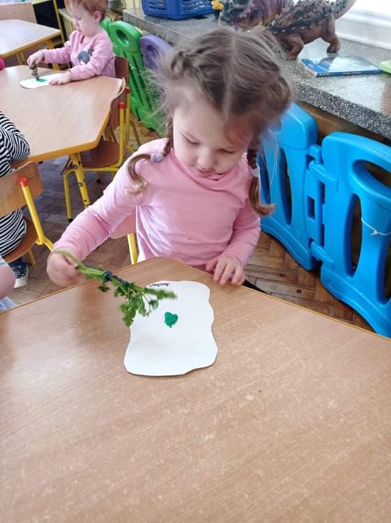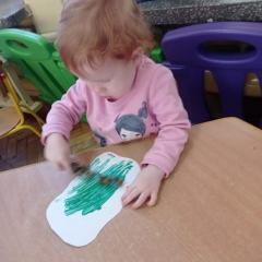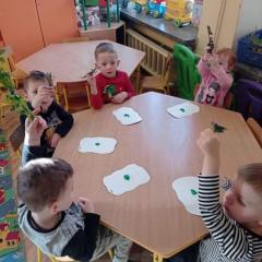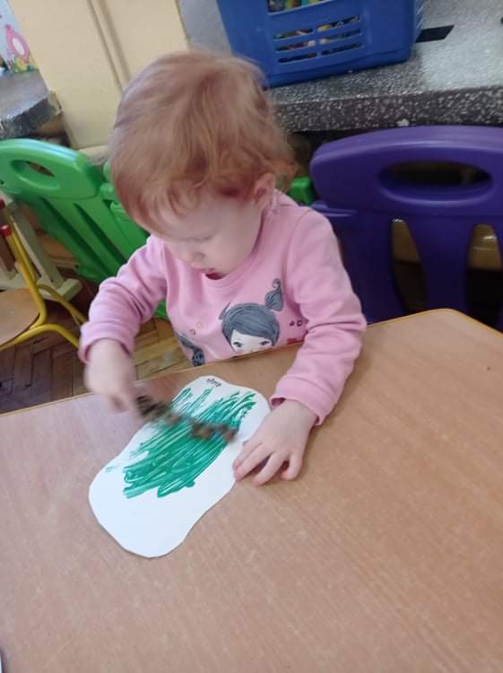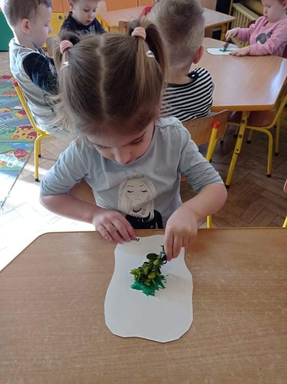 Na zajęciach na temat ufoludków, Jeżyki zrealizowały zadanie z projektu "Z darami natury świat nie jest ponury". Za pomocą pędzli z materiałów przyrodniczych i materiałów plastycznych stworzyły zielone ufoludki.