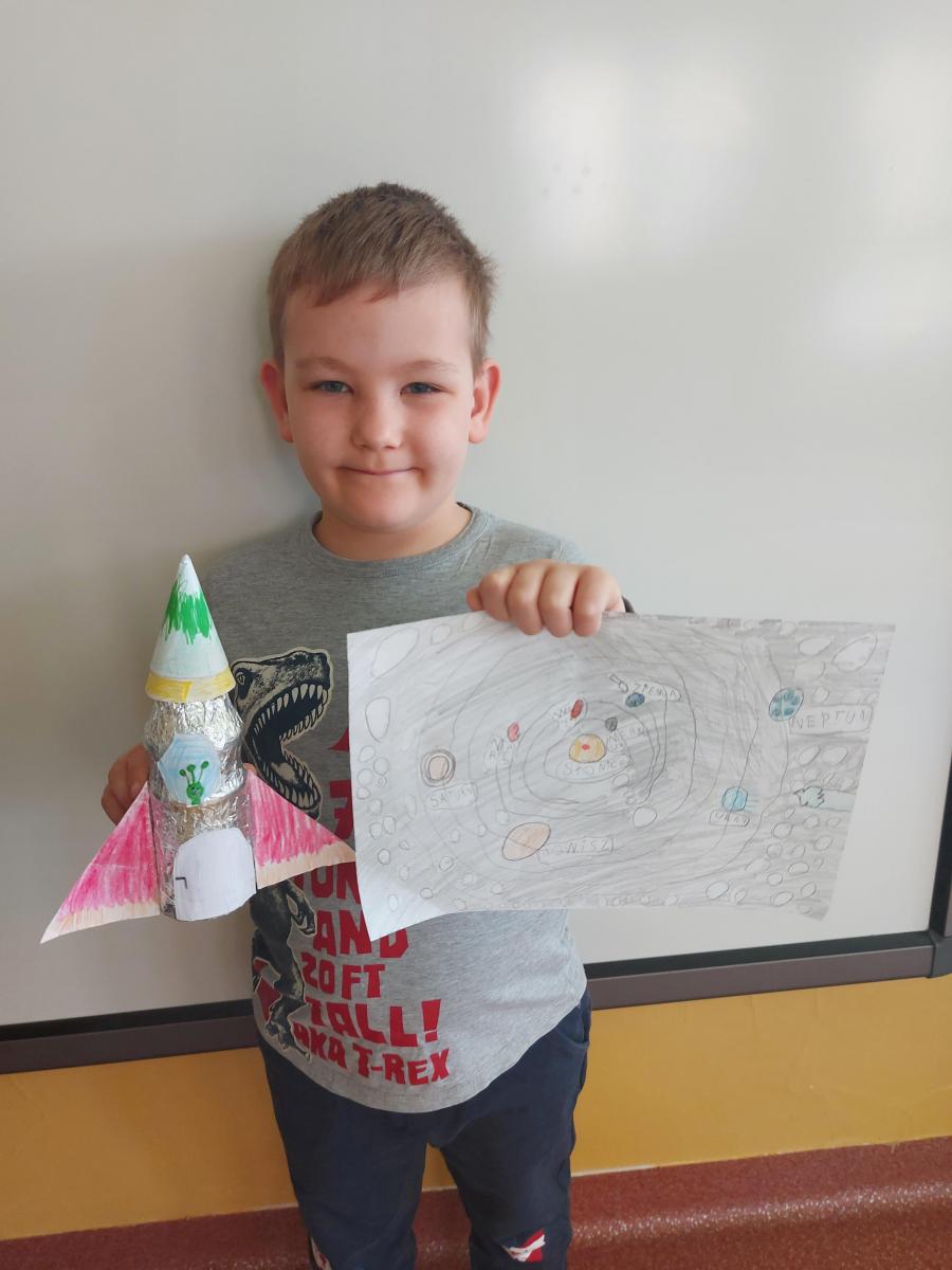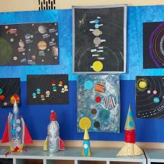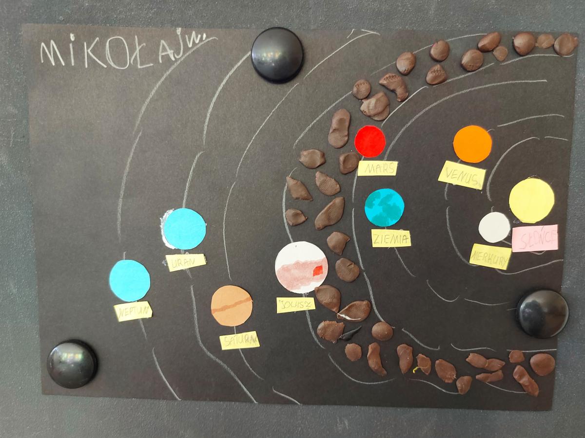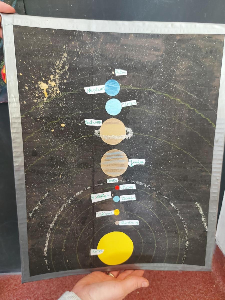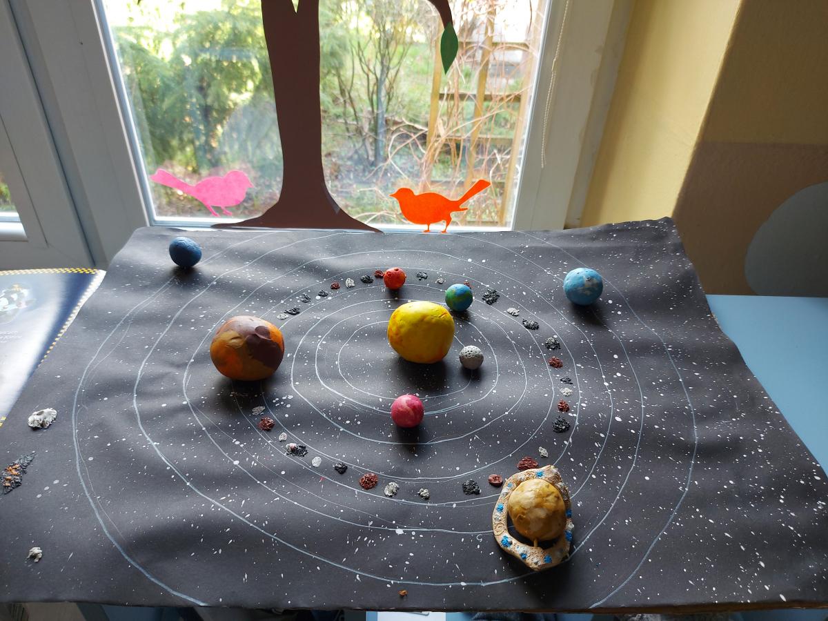 Dodane przez przedszkole22 - 19.04.2021 W ubiegłym tygodniu podczas pracy zdalnej Pszczółki wraz z rodzicami wykonały makietę Układu Słonecznego oraz Rakietę z butelki plastikowej. Pracę dzieci stworzyły piękną galerię, którą od dzisiaj mogą podziwiać wszystkie przedszkolaki.