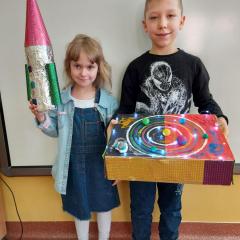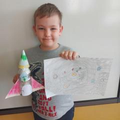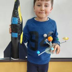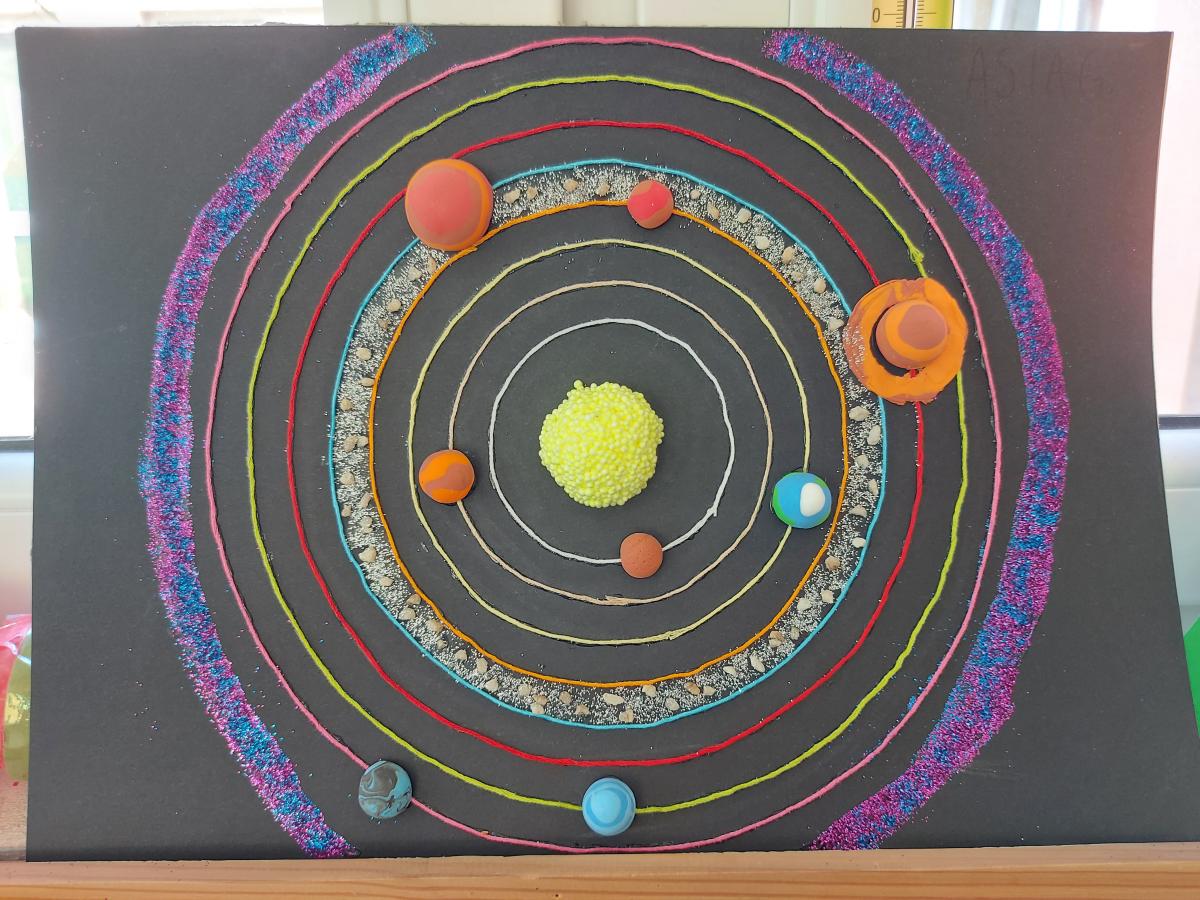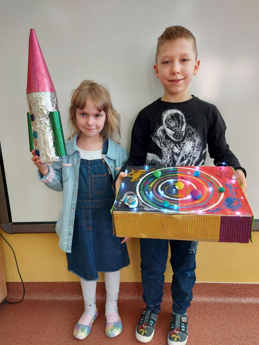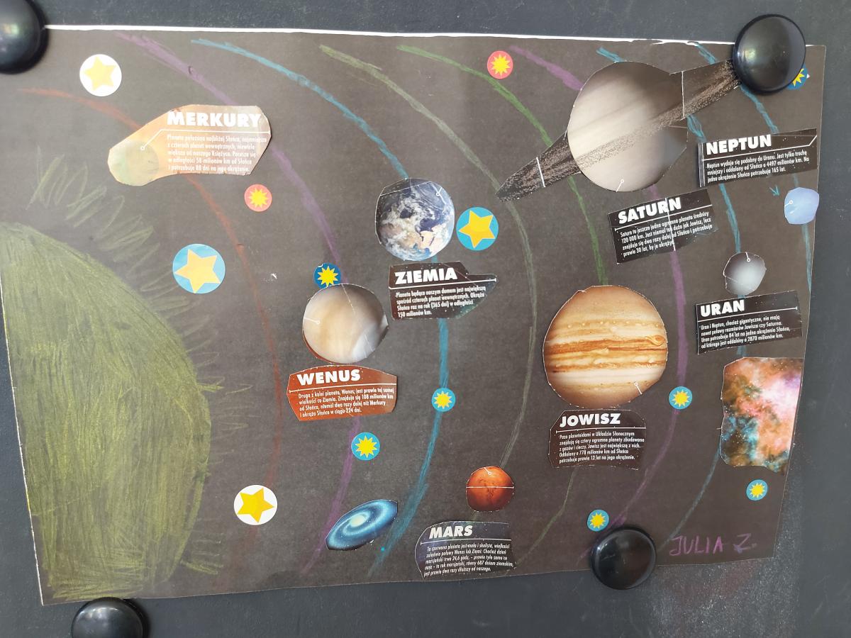 Dodane przez przedszkole22 - 19.04.2021 W ubiegłym tygodniu podczas pracy zdalnej Pszczółki wraz z rodzicami wykonały makietę Układu Słonecznego oraz Rakietę z butelki plastikowej. Pracę dzieci stworzyły piękną galerię, którą od dzisiaj mogą podziwiać wszystkie przedszkolaki.