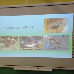 Grupa Jeżyki obchodziła dzisiaj Dzień Wróbla. Wszystkie dzieci bardzo lubią Elemelka i jego kuzynów. Często obserwowały wróbelki, które odwiedzały przez całą zimę nasze karmniki za oknem. Podczas zajęć w ramach projektu edukacyjnego o wróbelku Elemelku przedszkolaki zdobyły wiele wiadomości na temat tych uroczych ptaszków. Dzisiaj miały okazję wykazać się tą wiedzą podczas quizu. Oczywiście Jeżyki znały wszystkie odpowiedzi i dlatego w nagrodę mogły obejrzeć film animowany o wróbelku Ćwirku. Na koniec wykonały pracę plastyczną, którą był portret wróbelka.