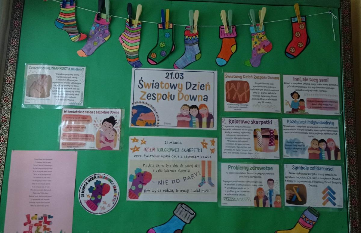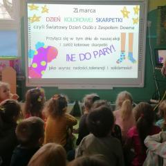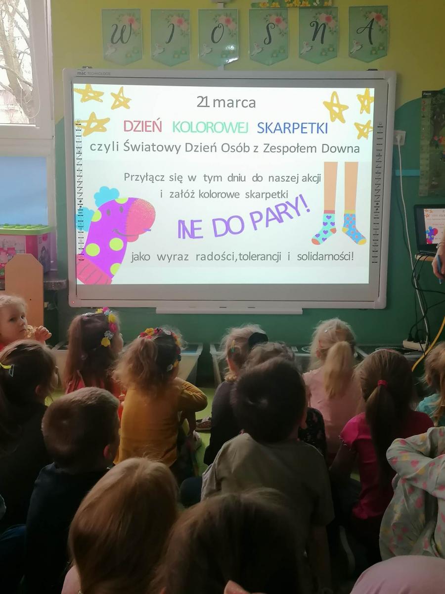 21 marca obchodzimy Pierwszy Dzień Wiosny. Tego dnia obchodzimy również Światowy Dzień Zespołu Downa nazywany również Dniem Kolorowej Skarpetki. Przedszkolaki wraz z wychowawcami bardzo ochoczo nałożyły dziś dwie skarpetki nie do pary, okazując tym samym zrozumienie, solidarność oraz tolerancję względem osób dotkniętych tą chorobą.