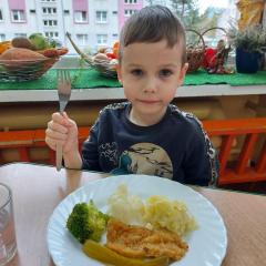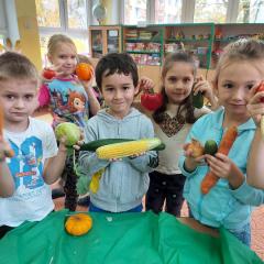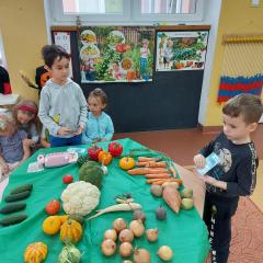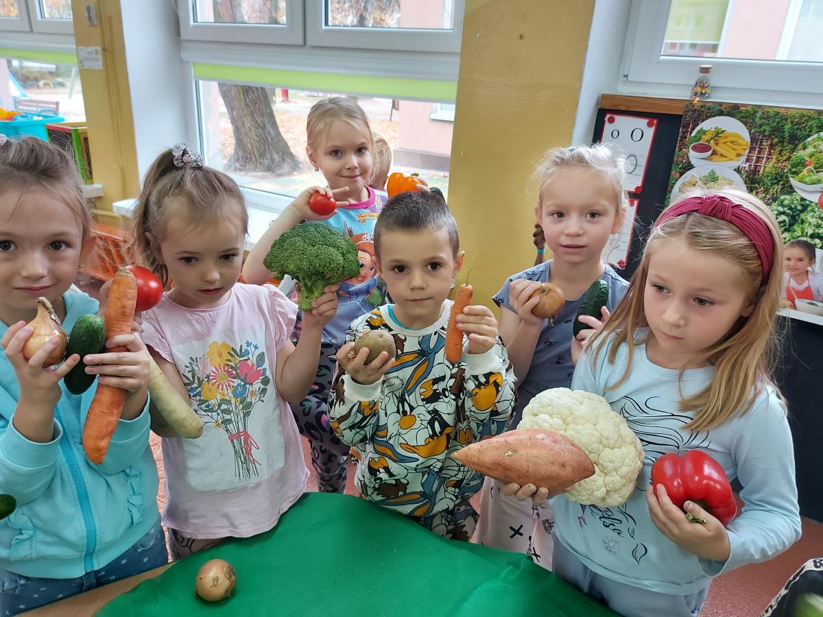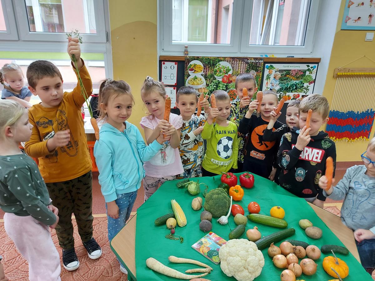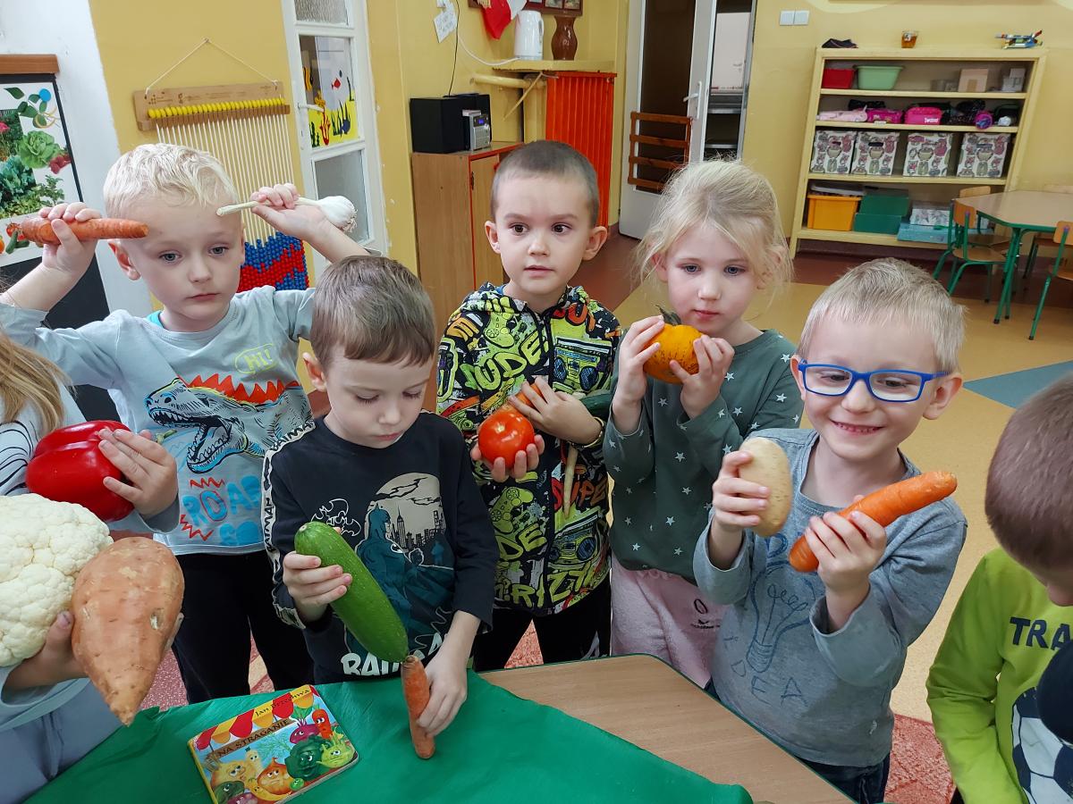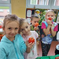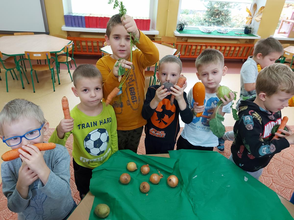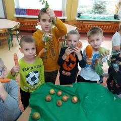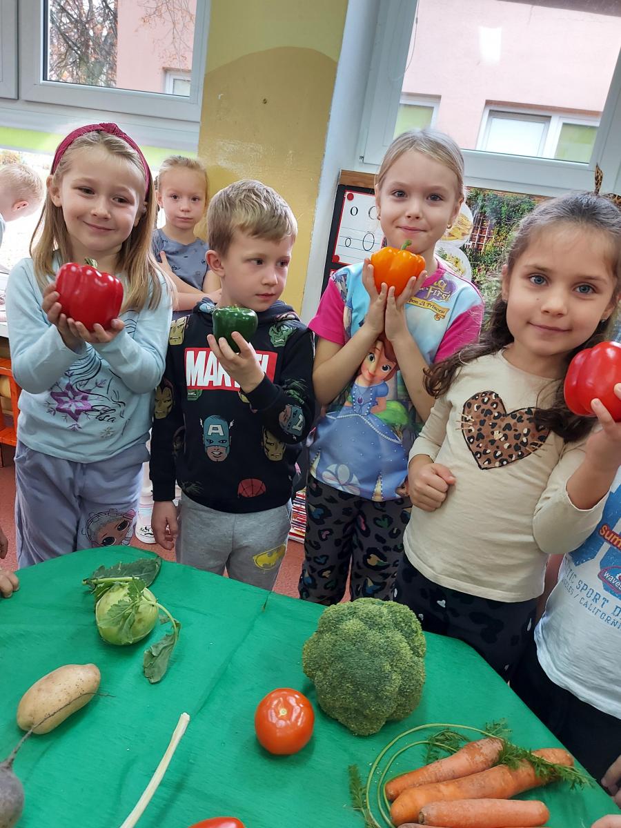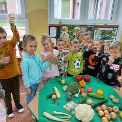 "Na straganie w dzień targowy takie słyszy się rozmowy..." . W ostatnim tygodniu motywem przewodnim naszych zajęć był wiersz Jana Brzechwy. Dzieci oglądały, nazywały, smakowały przyniesione do kącika przyrody warzywa. Dużą radość sprawiła zabawa w sklep i możliwość płacenia pieniędzmi.