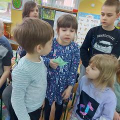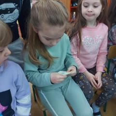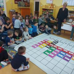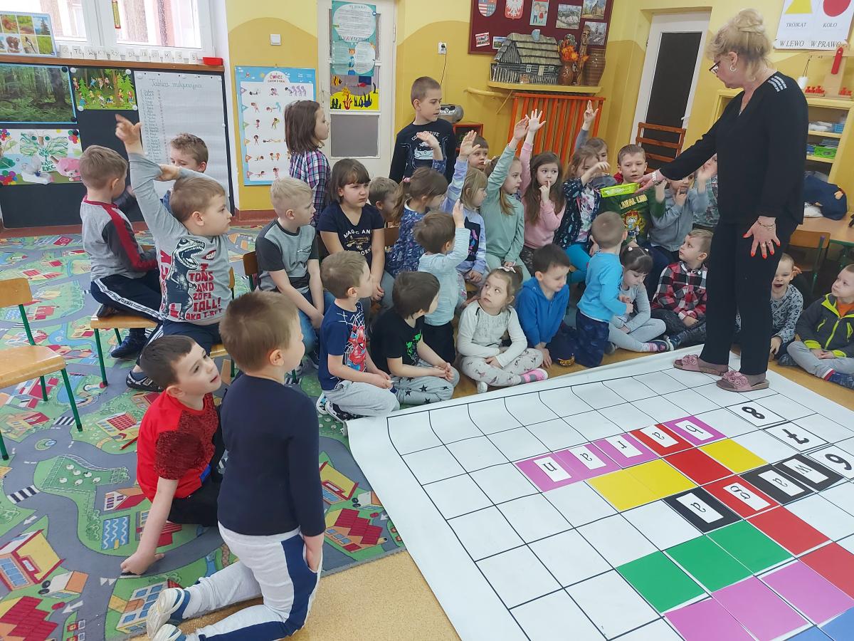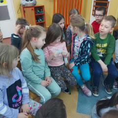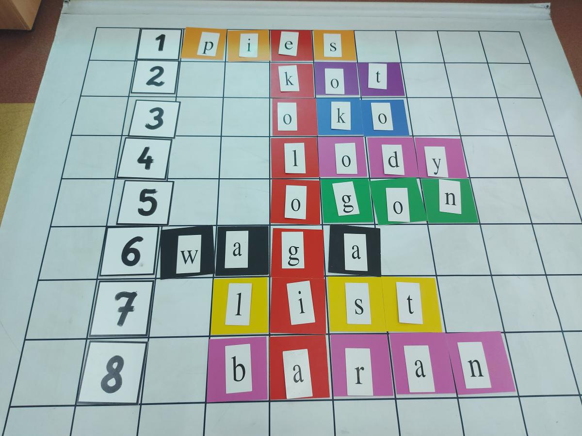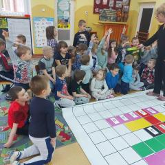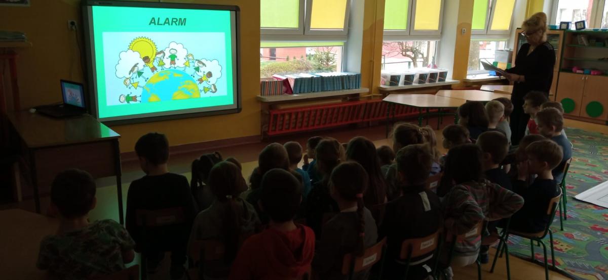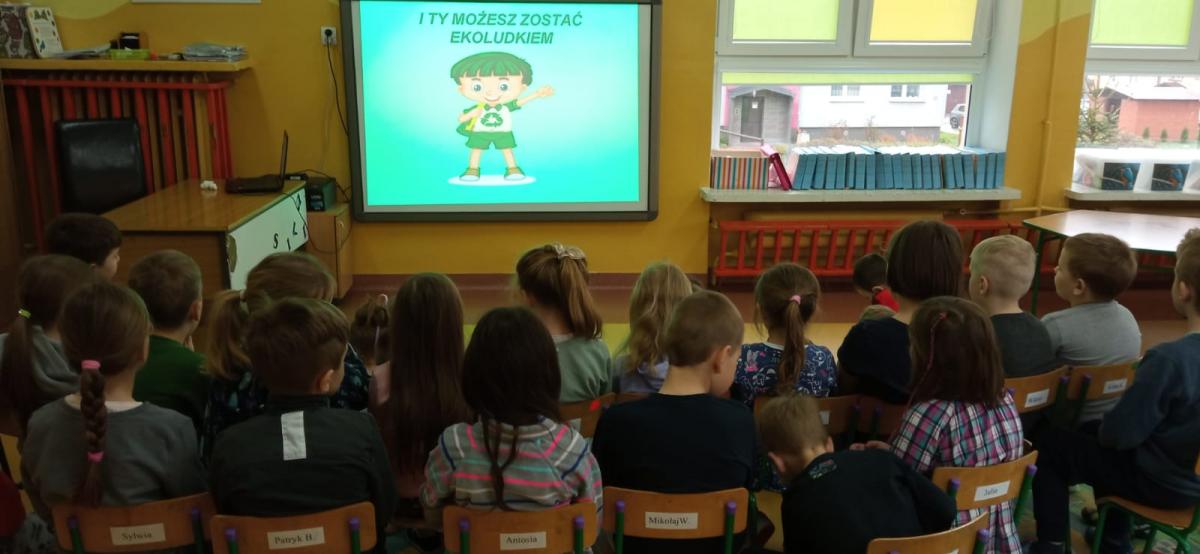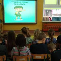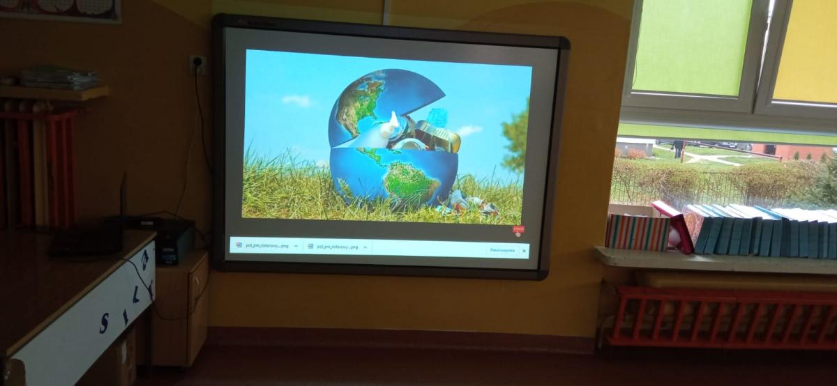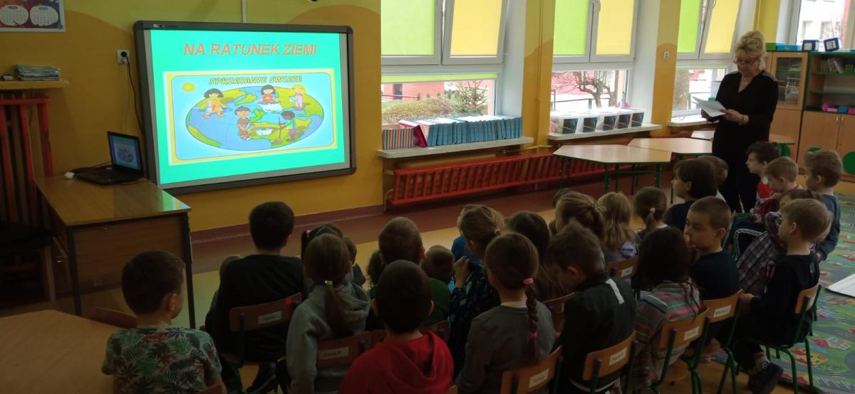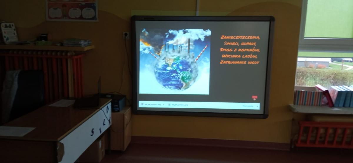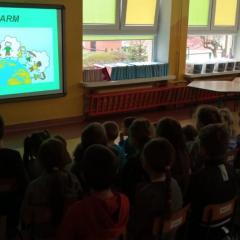 Podczas oglądania prezentacji dzieci dowiedziały się, jaka działalność człowieka może wpłynąć pozytywnie bądź negatywnie na przyrodę.  Dzieci rozwiązywały również krzyżówkę której hasłem była "ekologia".