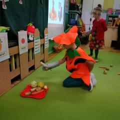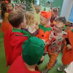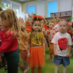 20 października nasze przedszkolaki wcieliły się w kolorowe owoce i warzywa. W tym dniu odbył się piękny bal, podczas którego dzieci poznały korzyści płynące z regularnego jedzenia owoców i warzyw. Wiadomości utrwalaliśmy poprzez ciekawe konkurencję, zabawy i tańce.