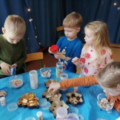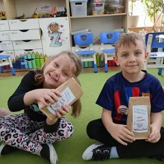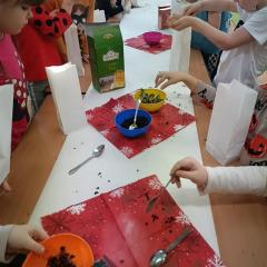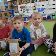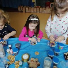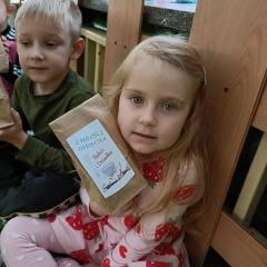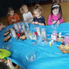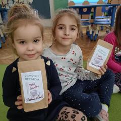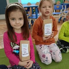 Ponadto w ramach warsztatów z Panią Beatą Antoszewską z Ligii Ochrony Przyrody wykonały prześliczne świece żelowe. Aby umilić swoim babciom i dziadziusiom zimowe wieczory własnoręczne stworzyły pachnące herbatki z miłości.