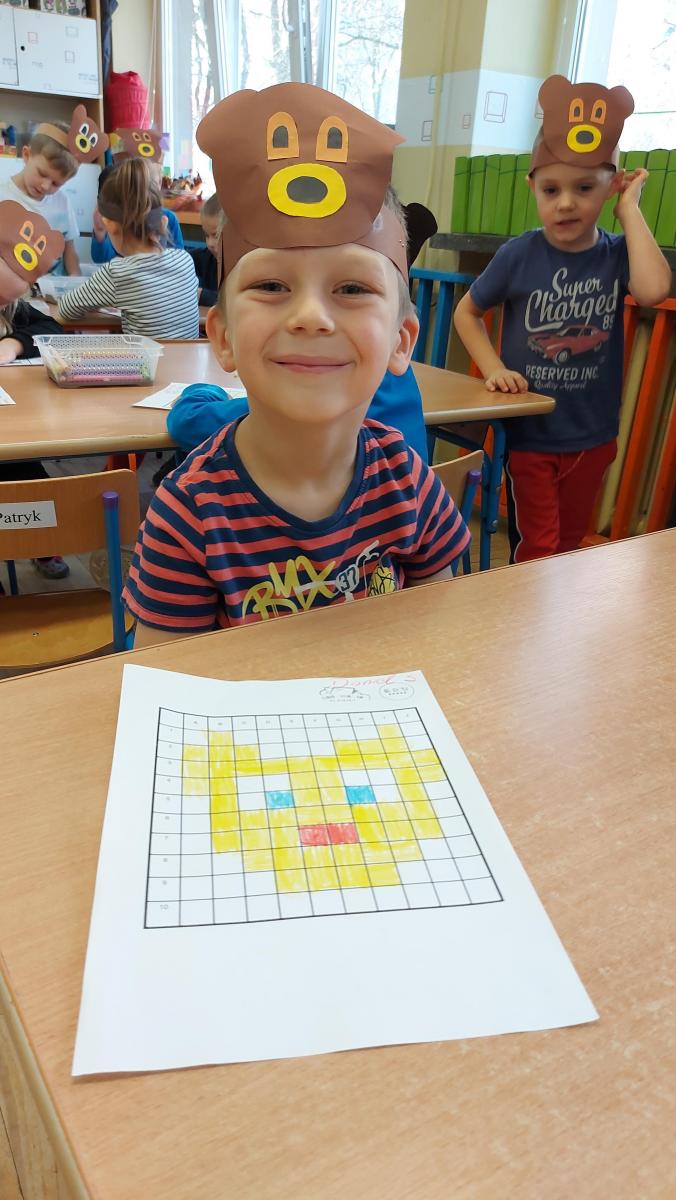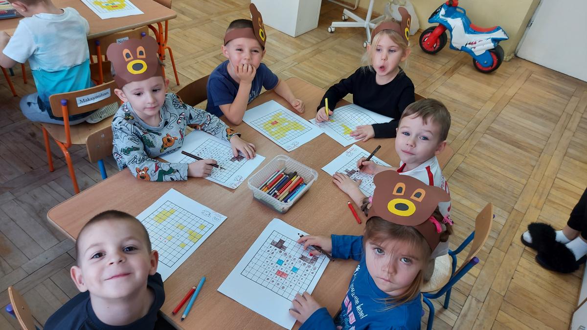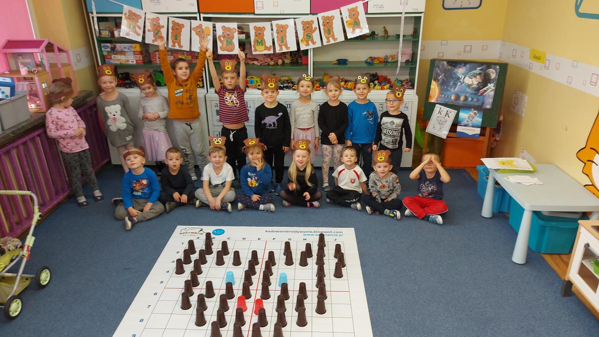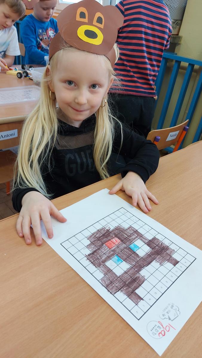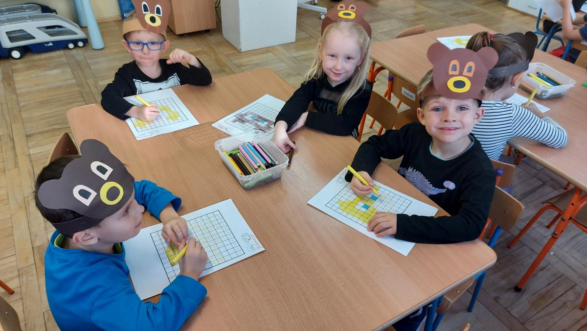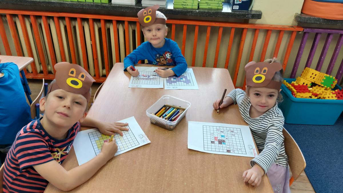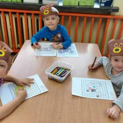 W dniu dzisiejszym Biedroneczki świętowały Dzień Pluszowego Misia. Dzieci poznały historię powstania święta oraz obejrzały film edukacyjny "Jak powstaje miś". Zakodowały na macie do kodowania przy użyciu kolorowych kubeczków misia według wzoru, następnie samodzielnie na karcie pracy.