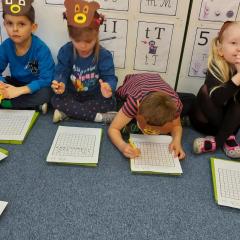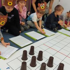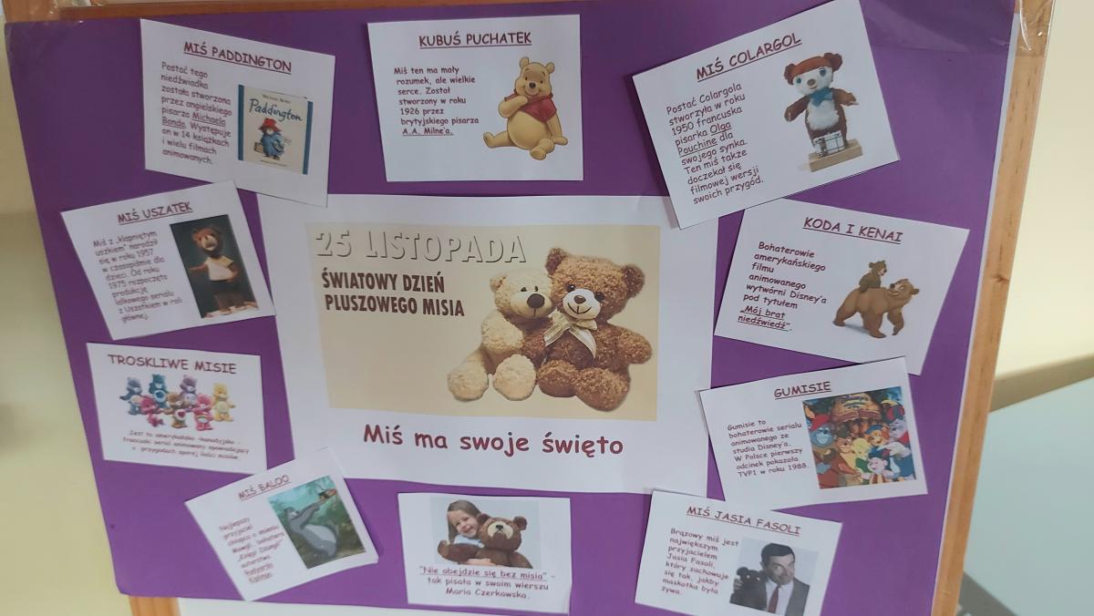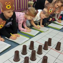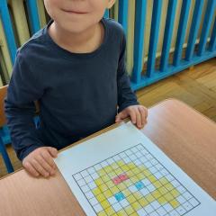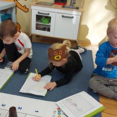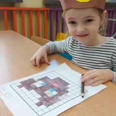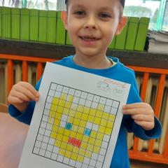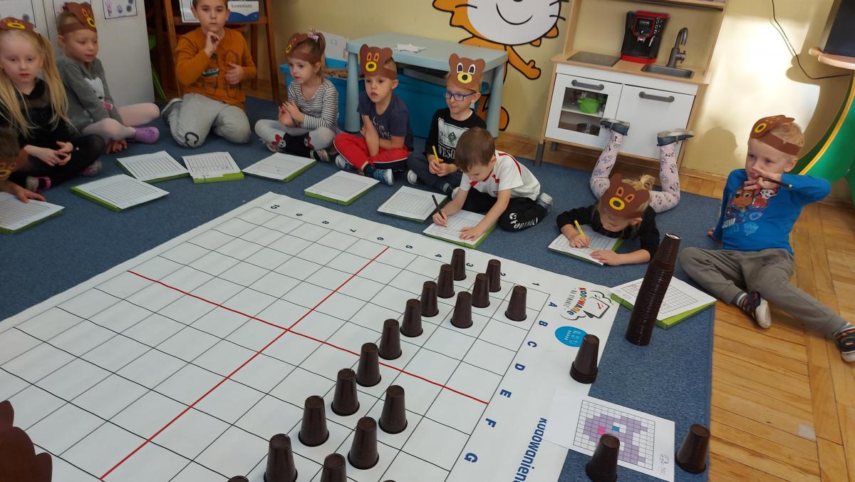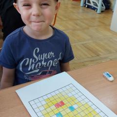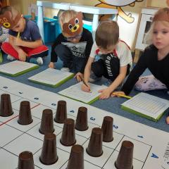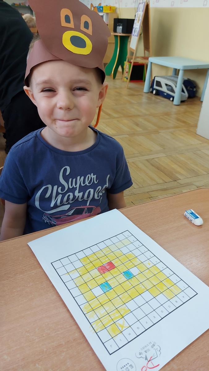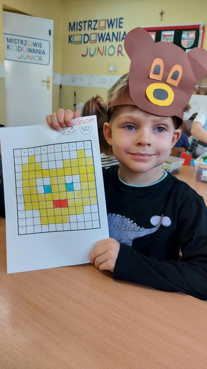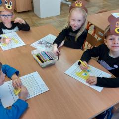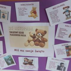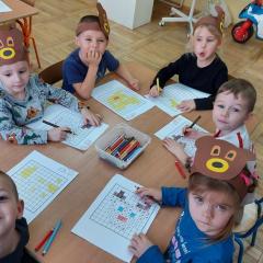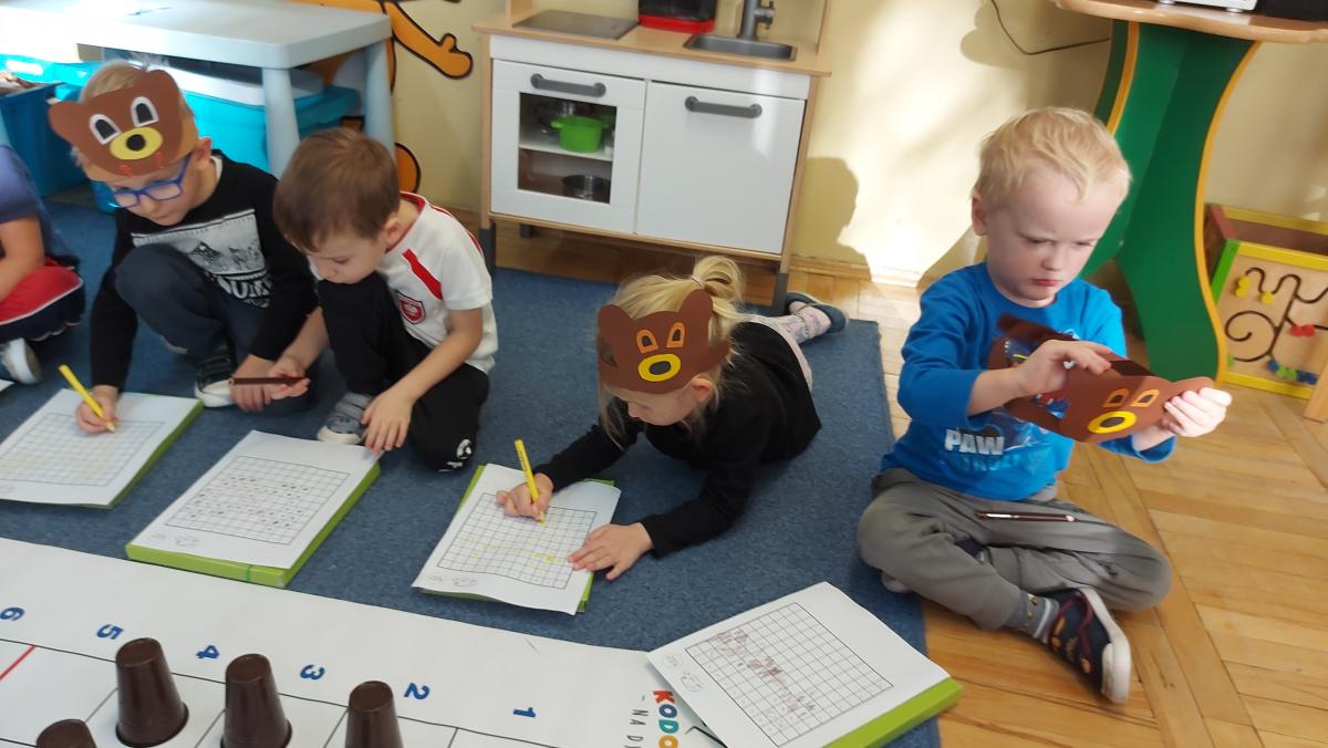 W dniu dzisiejszym Biedroneczki świętowały Dzień Pluszowego Misia. Dzieci poznały historię powstania święta oraz obejrzały film edukacyjny "Jak powstaje miś". Zakodowały na macie do kodowania przy użyciu kolorowych kubeczków misia według wzoru, następnie samodzielnie na karcie pracy.