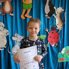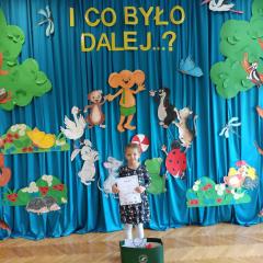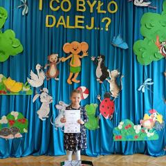 Malwinka Walczak z Grupy Jeżyki, pod opieką p. Karoliny Knapik wzięła udział w II Ogólnopolskim Konkursie Plastycznym "I CO BYŁO DALEJ...?" zorganizowanym przez Przedszkole Samorządowe nr 14 w Kielcach. Wspaniale wykonała pracę plastyczną, dzięki której zdobyła II miejsce. Jesteśmy ogromnie dumni z naszej Malwinki. Serdecznie gratulujemy i życzymy dalszych sukcesów!