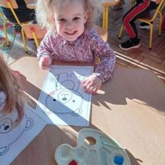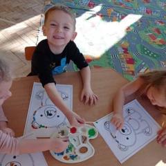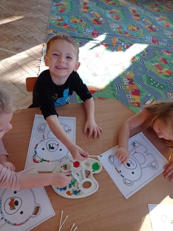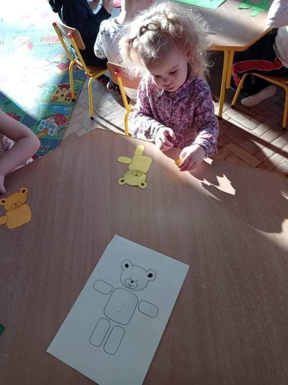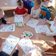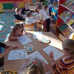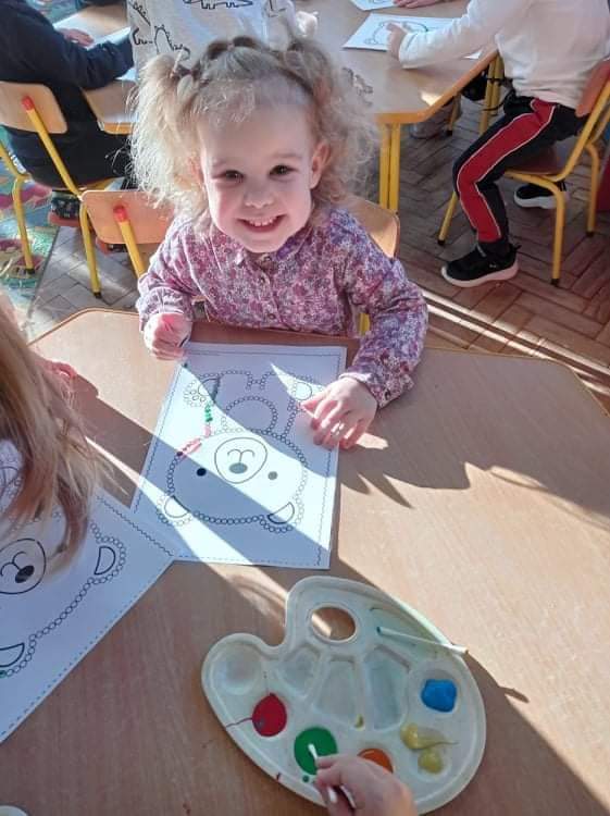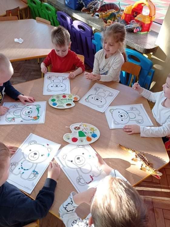 Dzień Pluszowego Misia Jeżyki spędziły bardzo pracowicie. Poznały różne misie: te żyjące w naturalnym środowisku jak i te, które znamy z różnych bajek. Dzieci układały misiowe sudoku i misia z papieru, a na końcu kropkowały misia farbami i malowały gipsowe figurki. Zajęcia zakończyły się wspólnym zdjęciem ?