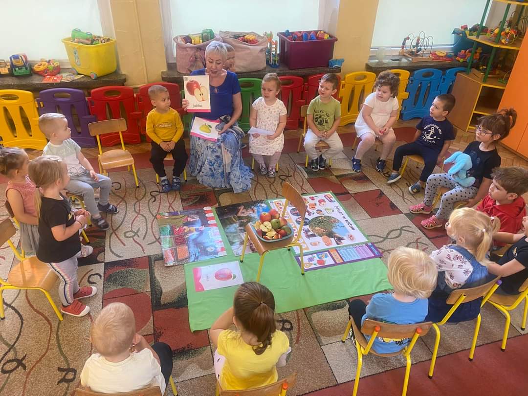 28 września zorganizowaliśmy w naszym przedszkolu „DzieńJabłka”. Dzieci poznawały właściwości jabłek oraz ich odmiany. Określały kształt, zapach, kolor i smak jabłek.