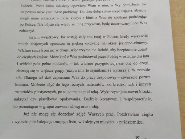 W ramach ogólnopolskiego projektu edukacyjnego "Bocian", Jeżyki zrealizowały zadanie na wrzesień.