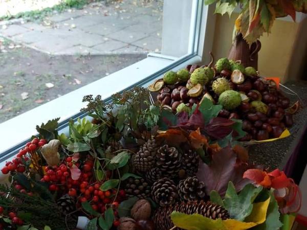 Piękna pani Jesień odwiedziała dzisiaj nasze przedszkole. Przyniosła ze sobą kolorowe liście, jarzębinę, orzechy, grzyby i wiele innych darów jesieni ...