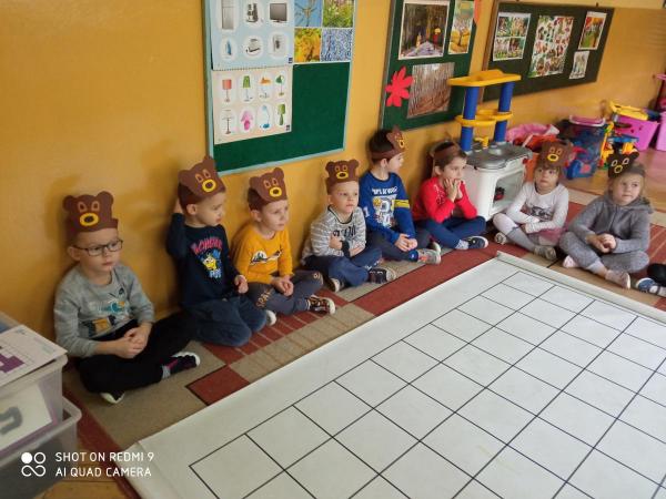 Podczas dzisiejszych zajęć dzieci poznały historię powstania Pluszowego Misia.Rozpoznawły muzyczne bajki, których bohaterem był miś.Układały na macie ...