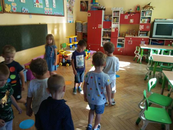 W dniu dzisiejszym odszukiwaly kropki ukryte w postaciach z figur geometrycznych. Doskonaliły pamięć w zabawie "Która kropka zniknęła". Szeregowaly ...