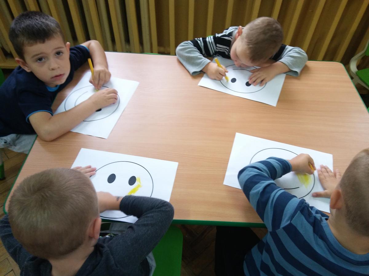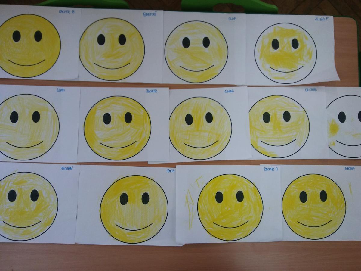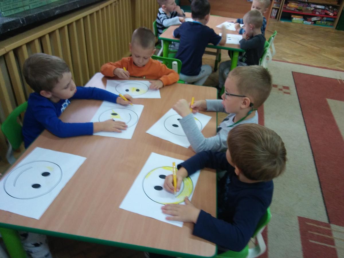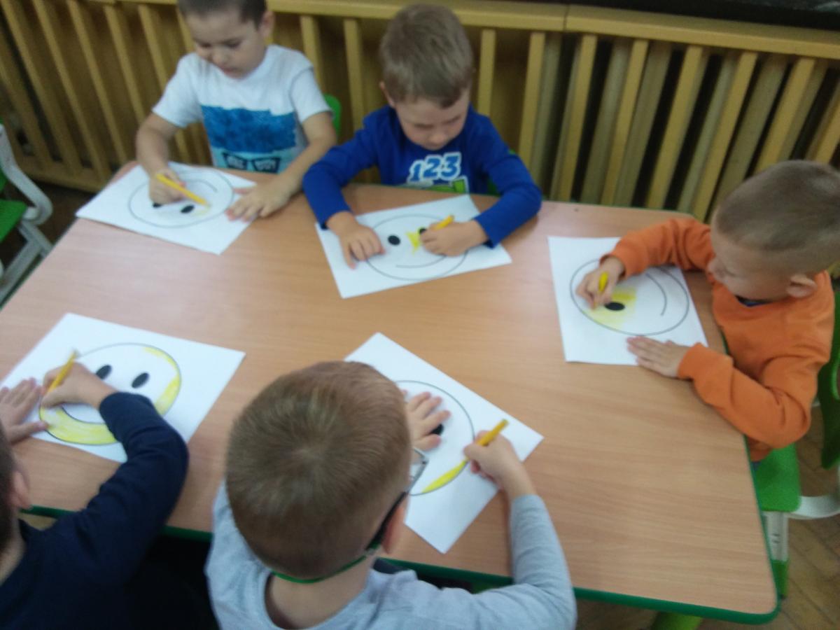 Podczas dzisiejszych zajęć poznaliśmy historię powstania Dnia Uśmiechu. Oprócz zabaw zabaw przy muzyce, częstym uśmiechaniu się do siebie, pracowaliśmy również z użyciem maty. Mamy nadzieję, że Dzień Uśmiechu będzie gościł w naszym przedszkolu codziennie.
