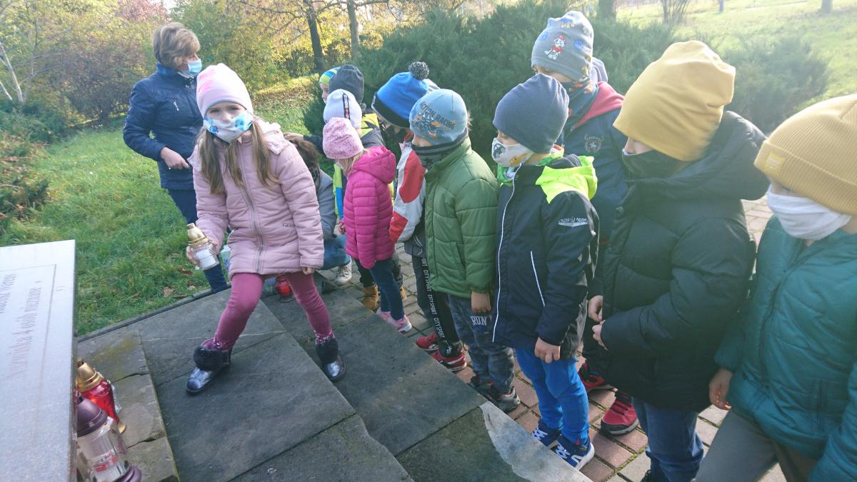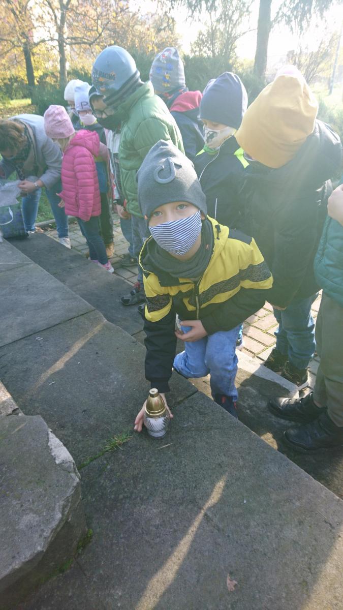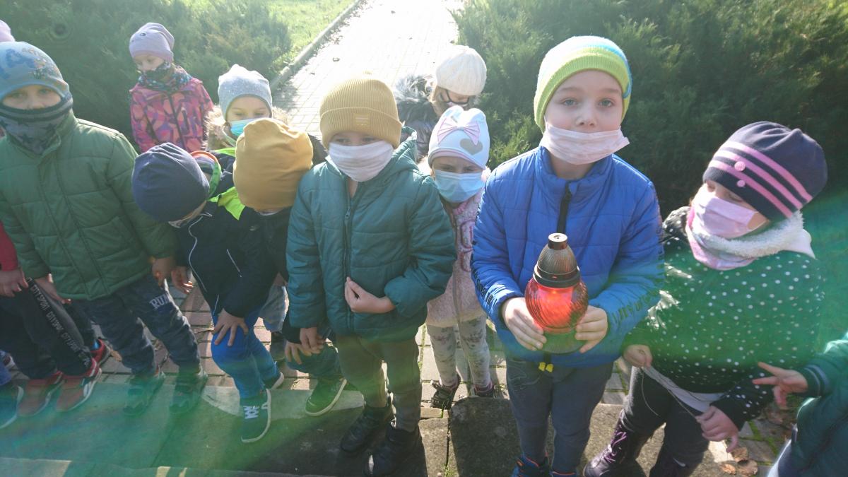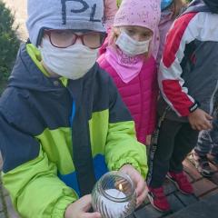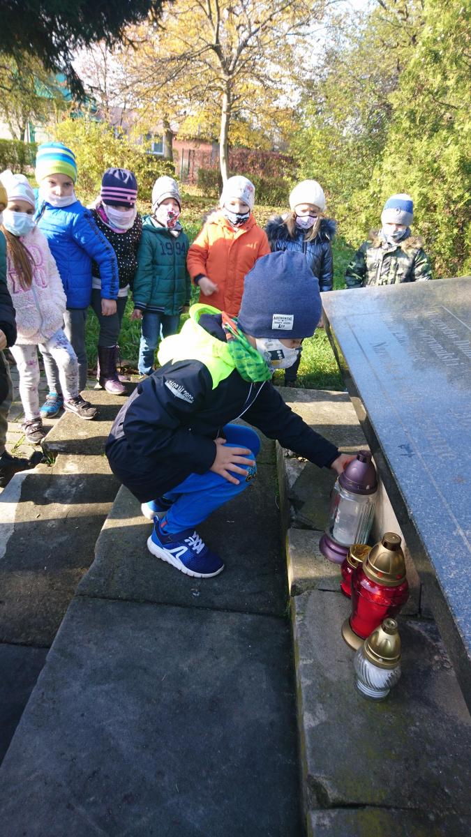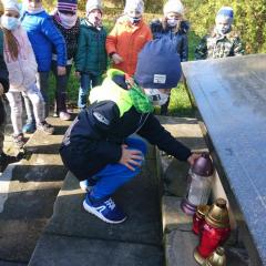 W piątek rozmawialiśmy o tradycji związanej ze świętem Wszystkich Świętych. Obejrzeliśmy filmy pokazujące jak Polacy wspominają swoich bliskich, następnie dzieci wypowiadały się jak to święto obchodzone jest w ich rodzinie. Po zajęciach wybraliśmy się na spacer pod Pomnik ofiar egzekucji 11 maja 1944 przy ulicy Chrobrego, aby zapalić symboliczny znicz.