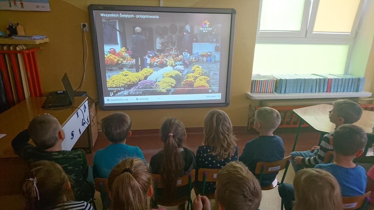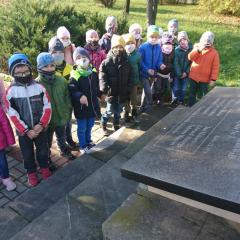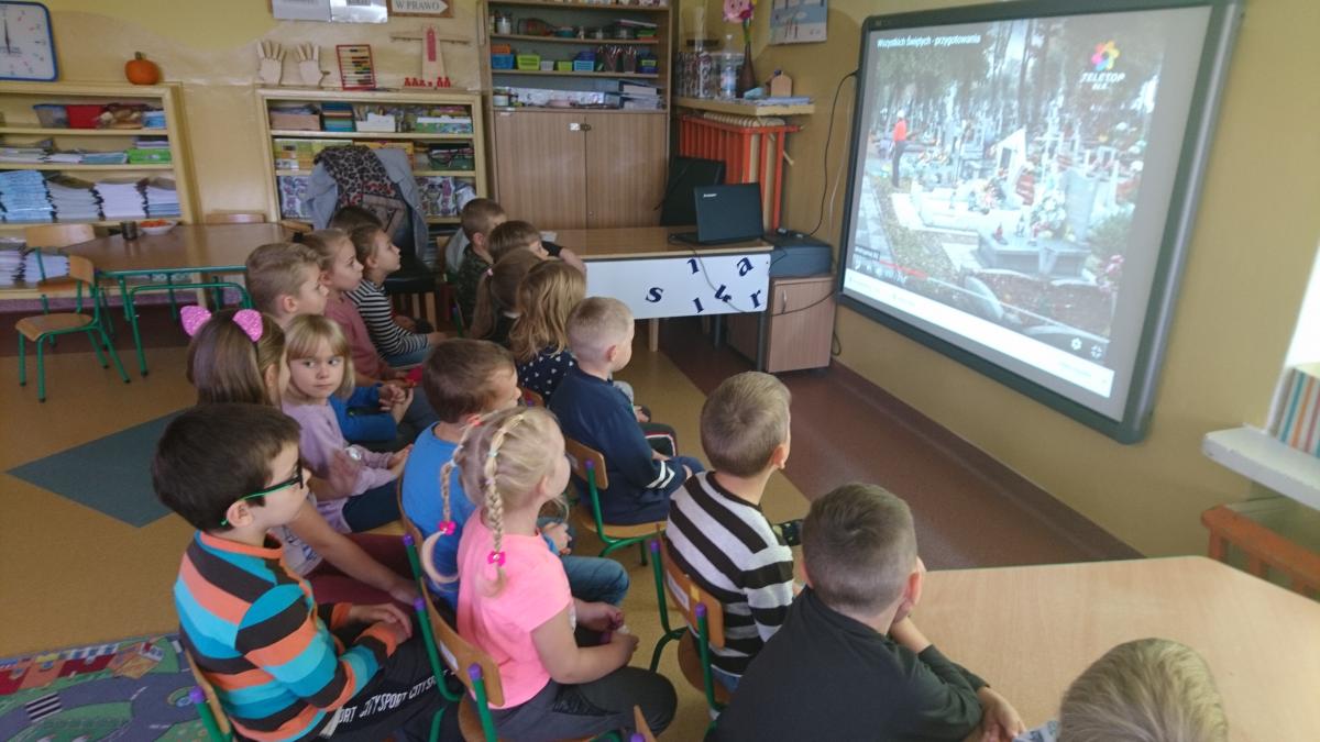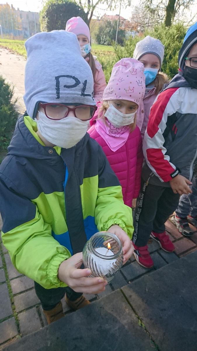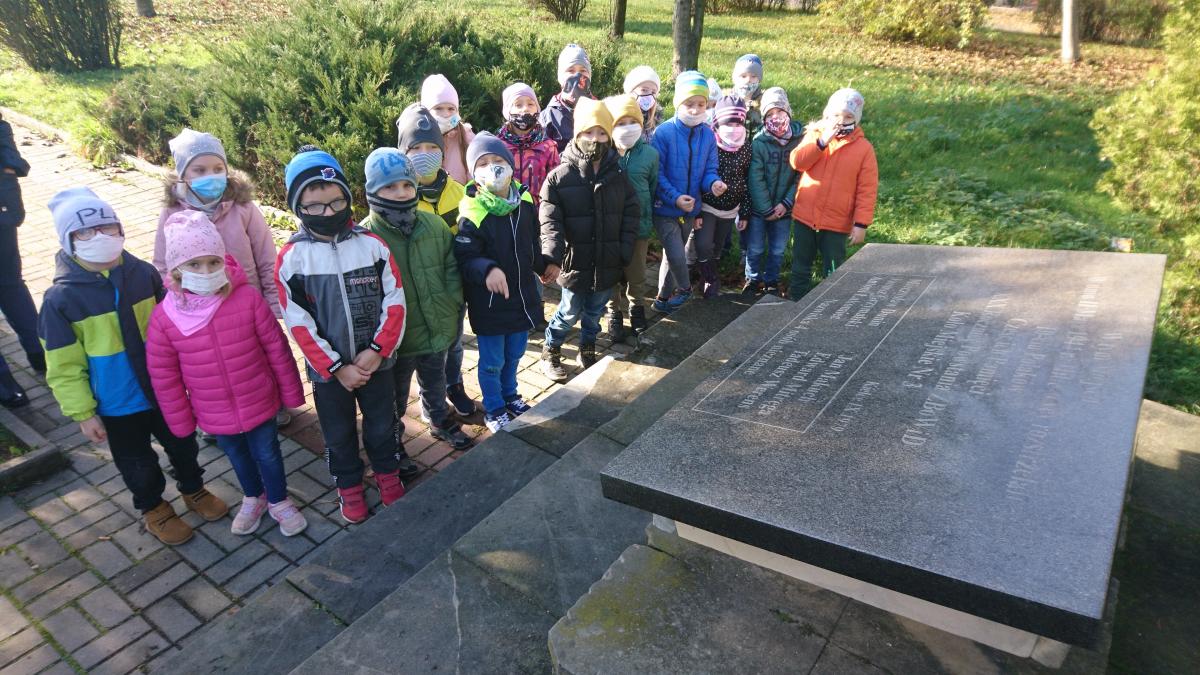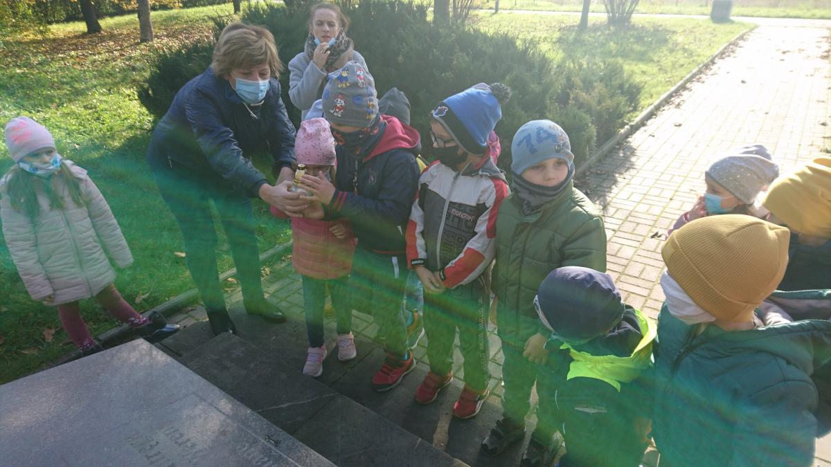 W piątek rozmawialiśmy o tradycji związanej ze świętem Wszystkich Świętych. Obejrzeliśmy filmy pokazujące jak Polacy wspominają swoich bliskich, następnie dzieci wypowiadały się jak to święto obchodzone jest w ich rodzinie. Po zajęciach wybraliśmy się na spacer pod Pomnik ofiar egzekucji 11 maja 1944 przy ulicy Chrobrego, aby zapalić symboliczny znicz.