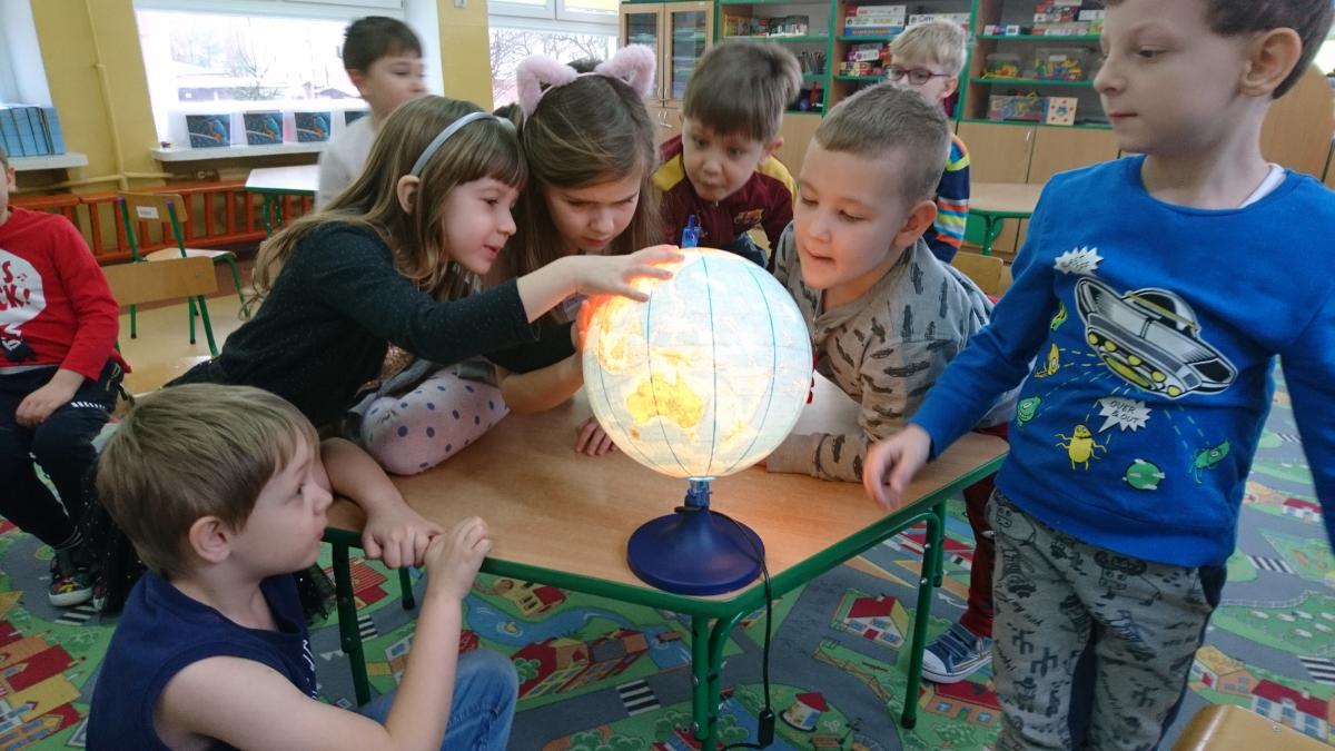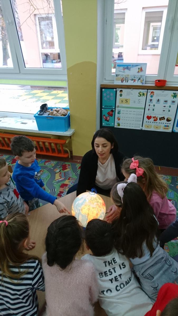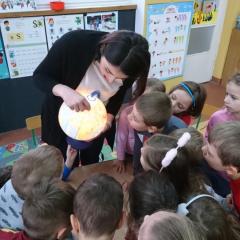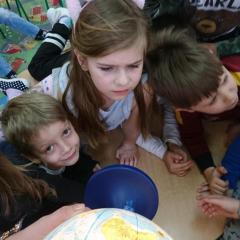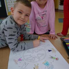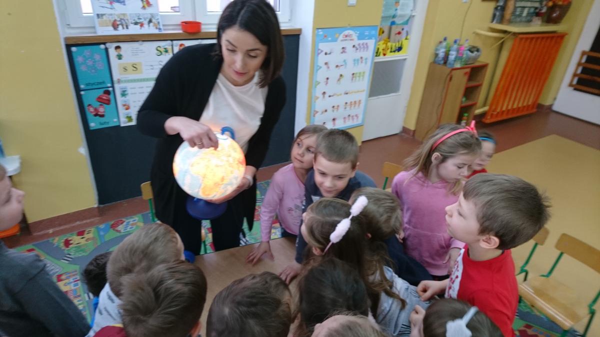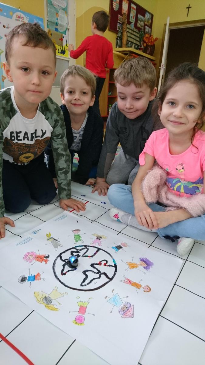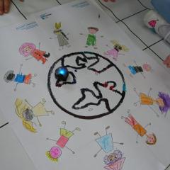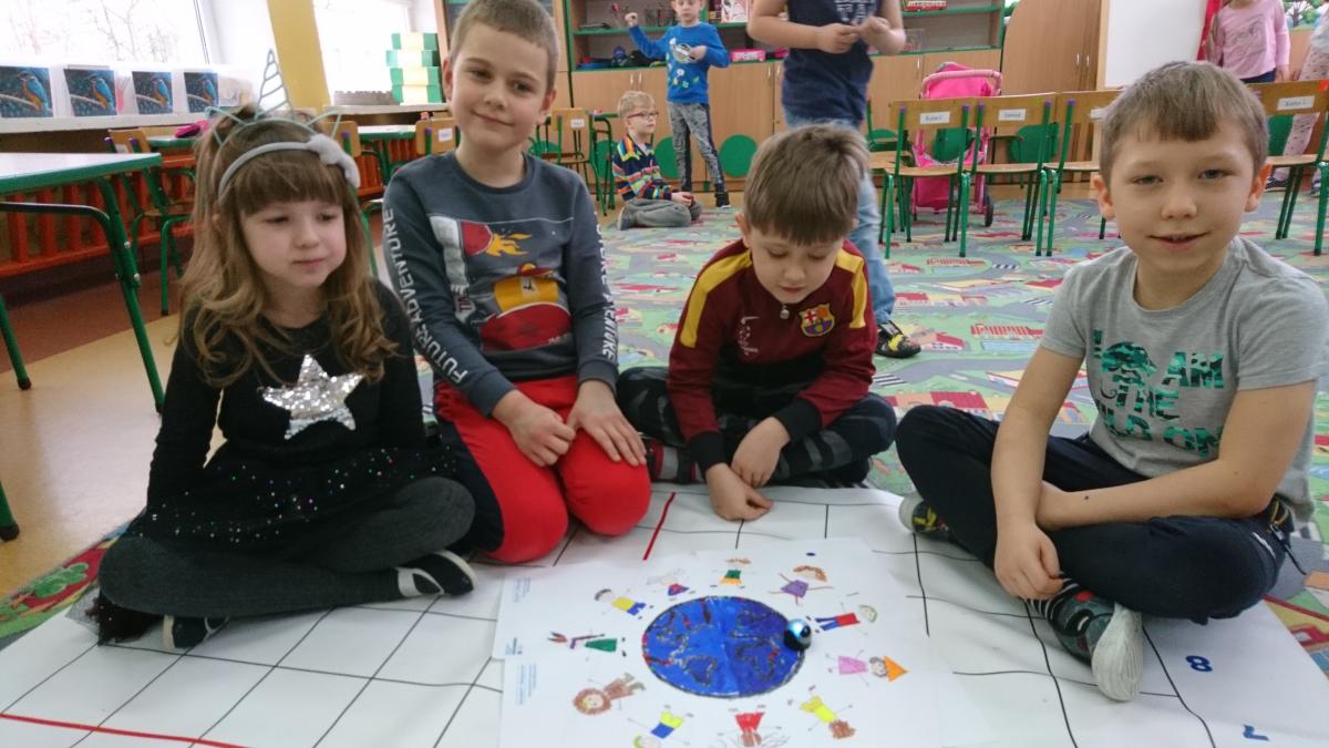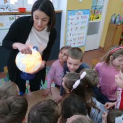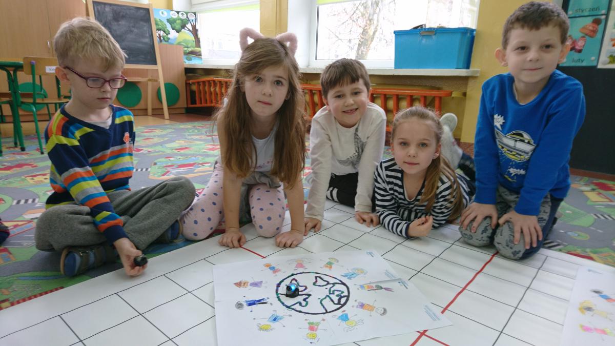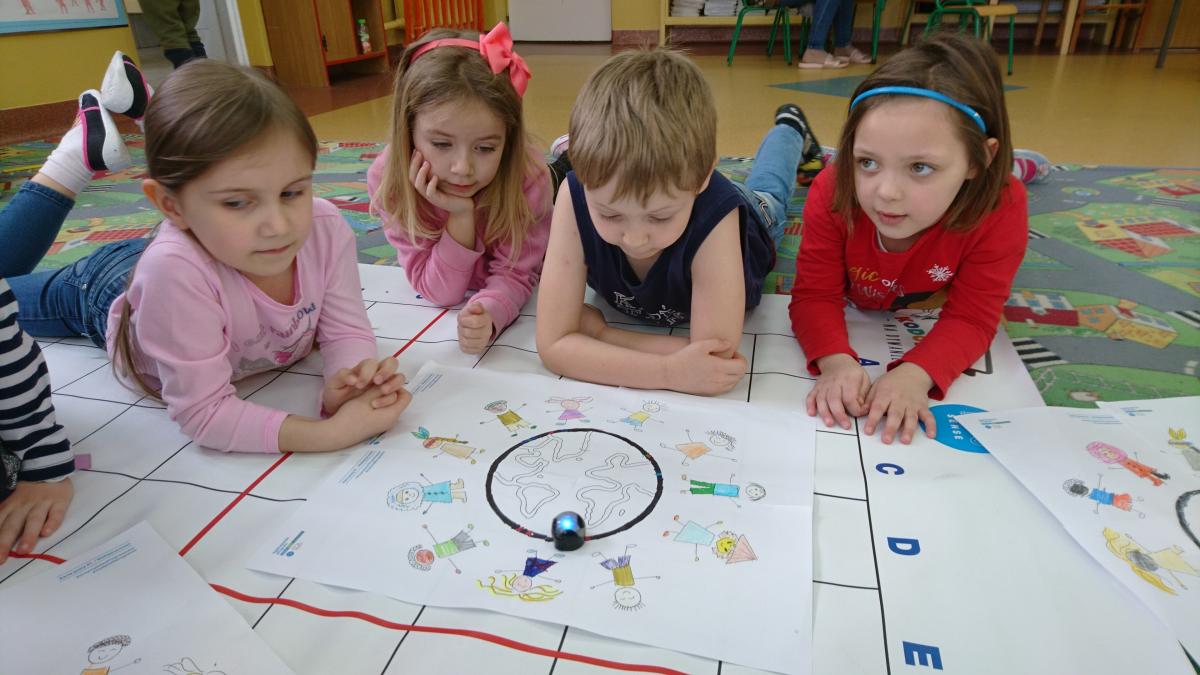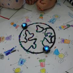 Wielojęzyczność to jedna z kompetencji kluczowych, które realizujemy w grupie Pszczółek. Na dzisiejszych zajęciach poznaliśmy dzieci zamieszkujące cały świat. Dzieci szukały na globusie Europy oraz poznawały wybrane kontynenty. Następnie pracowały z robotami - Ozobot, które okrążając kulę ziemską odwiedzały wszystkie dzieci świata. W drugiej części dnia ćwiczyliśmy koncentrację i spostrzegawczość. Na tablicy interaktywnej wyświetlone zostały flagi państw europejskich, a zadaniem dzieci było odnalezienie takich samych wśród krążków z tablicy kompetencji.