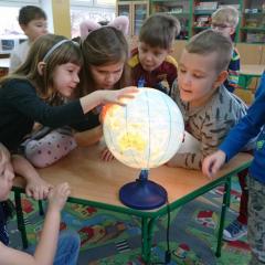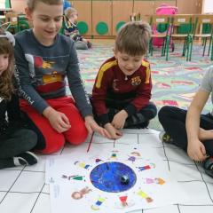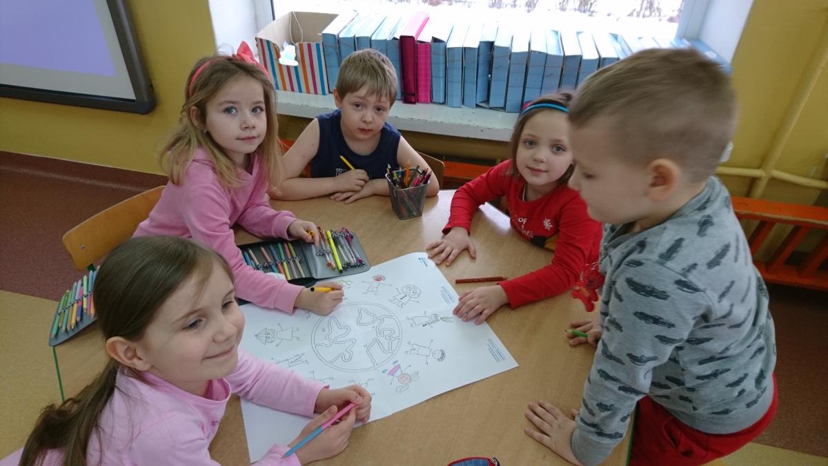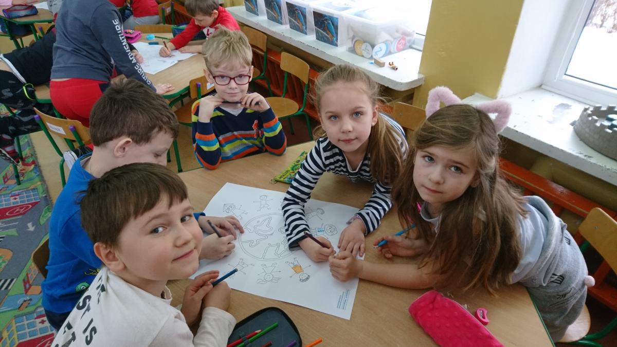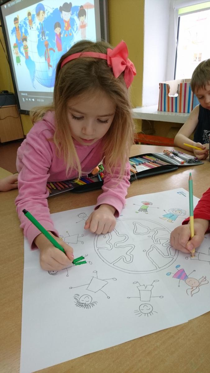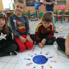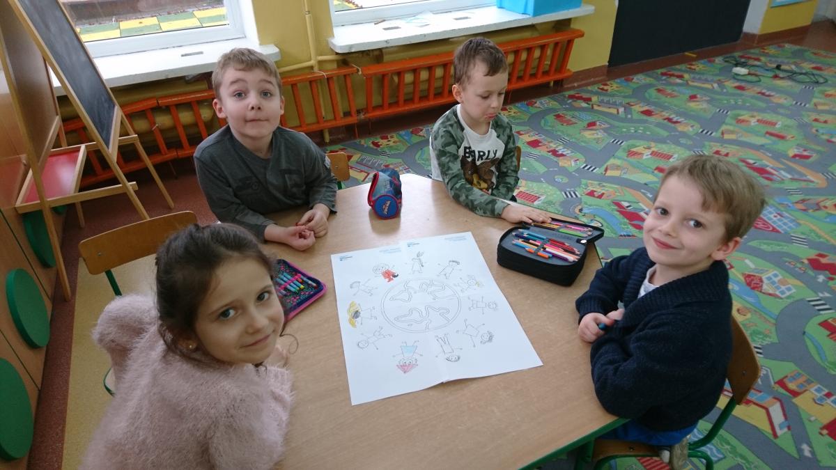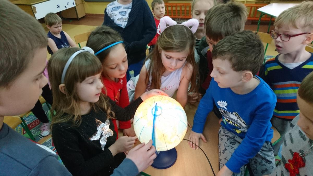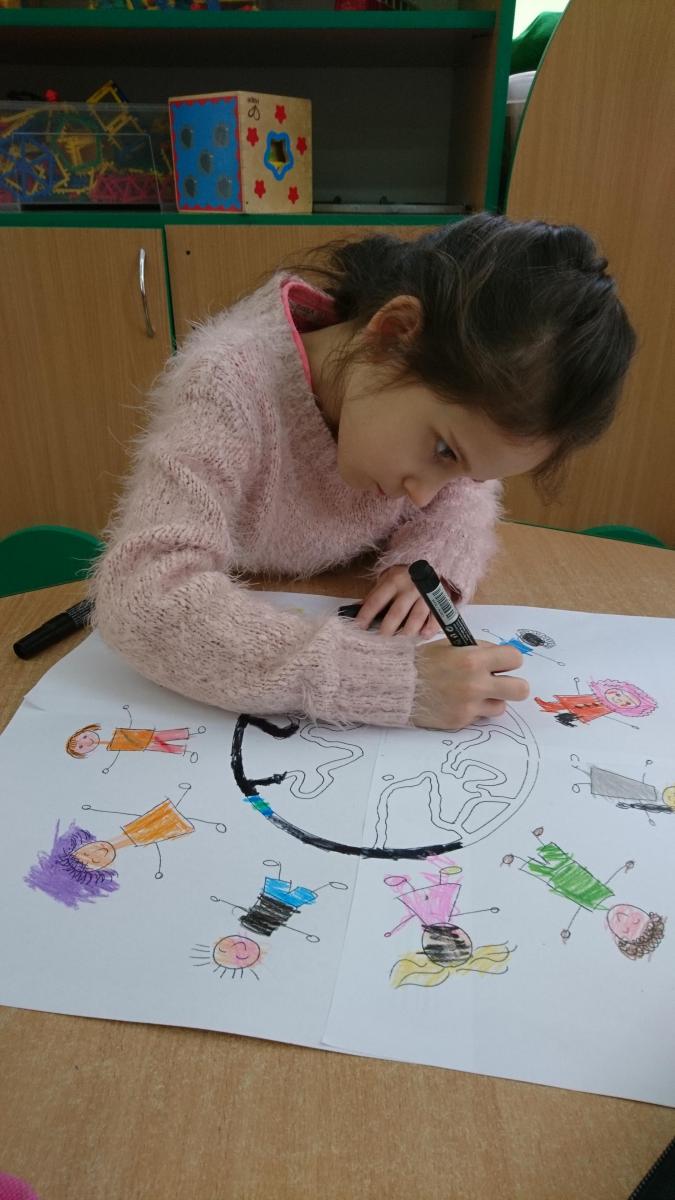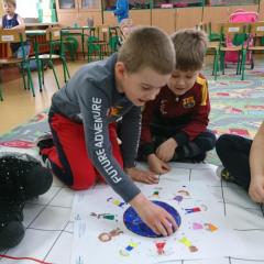 Wielojęzyczność to jedna z kompetencji kluczowych, które realizujemy w grupie Pszczółek. Na dzisiejszych zajęciach poznaliśmy dzieci zamieszkujące cały świat. Dzieci szukały na globusie Europy oraz poznawały wybrane kontynenty. Następnie pracowały z robotami - Ozobot, które okrążając kulę ziemską odwiedzały wszystkie dzieci świata. W drugiej części dnia ćwiczyliśmy koncentrację i spostrzegawczość. Na tablicy interaktywnej wyświetlone zostały flagi państw europejskich, a zadaniem dzieci było odnalezienie takich samych wśród krążków z tablicy kompetencji.