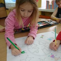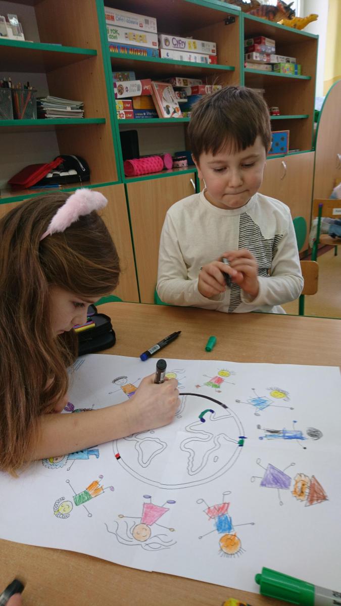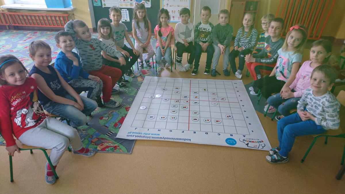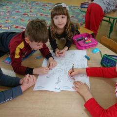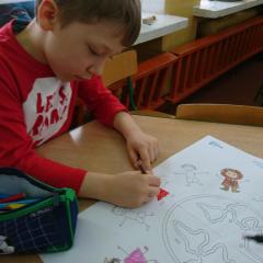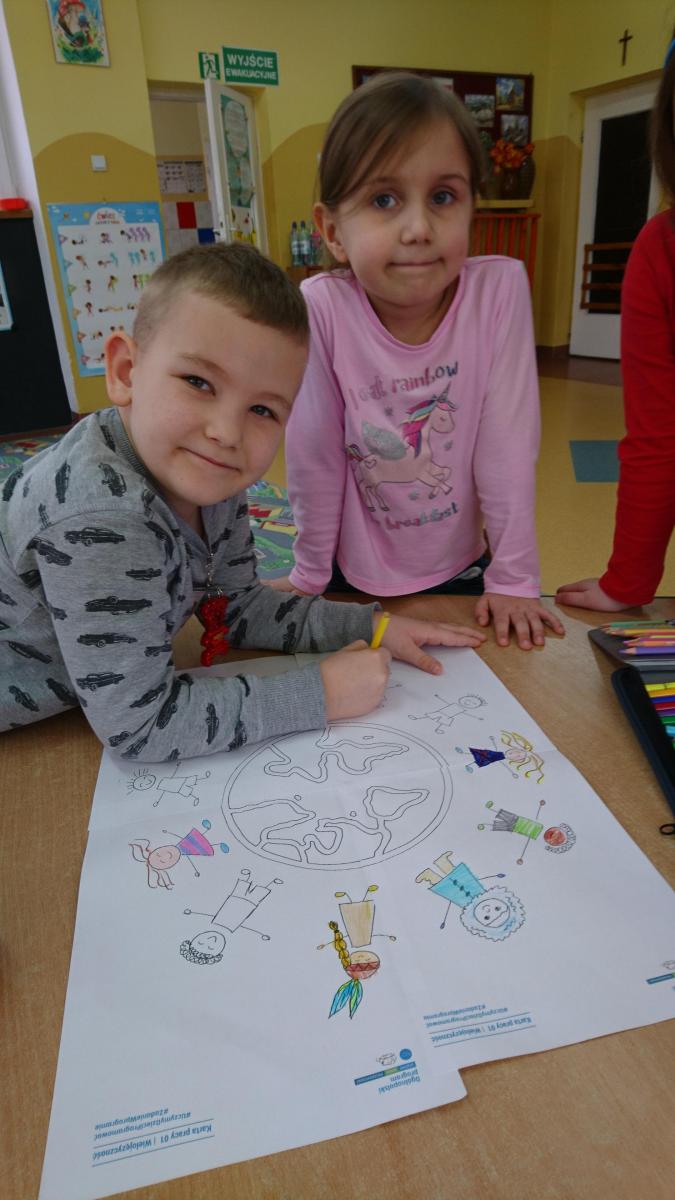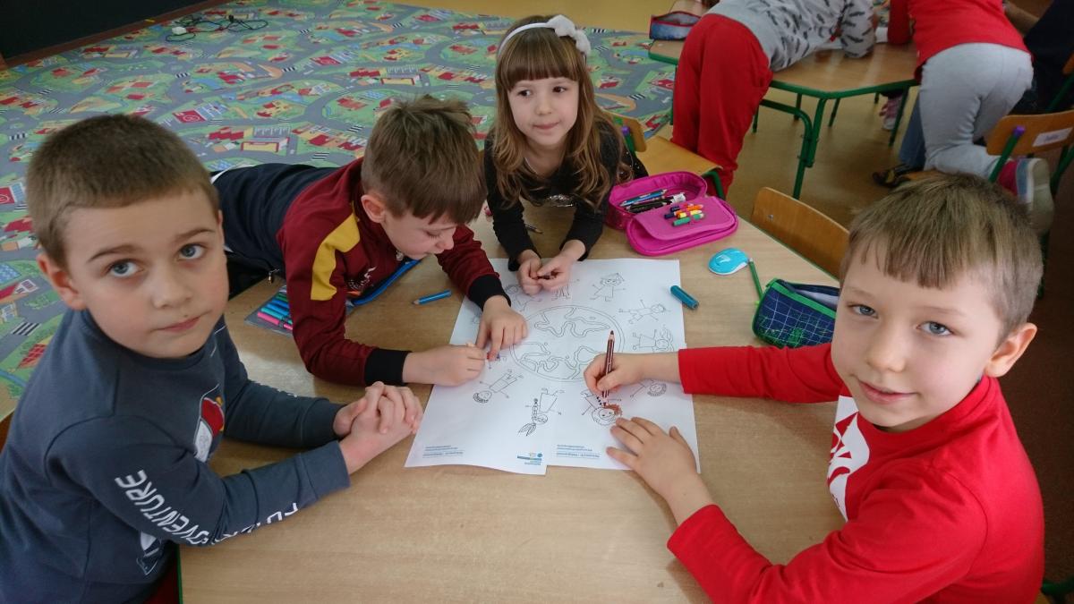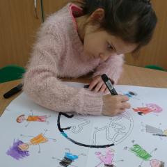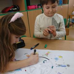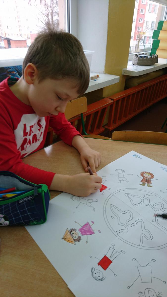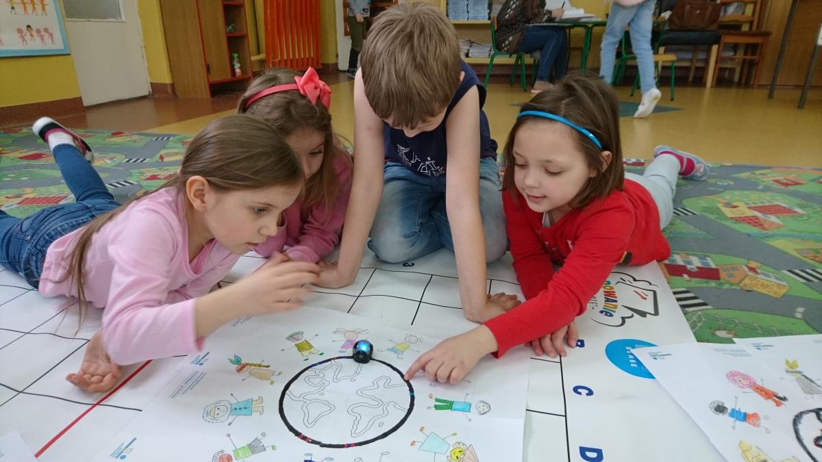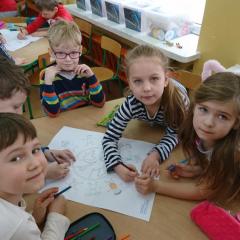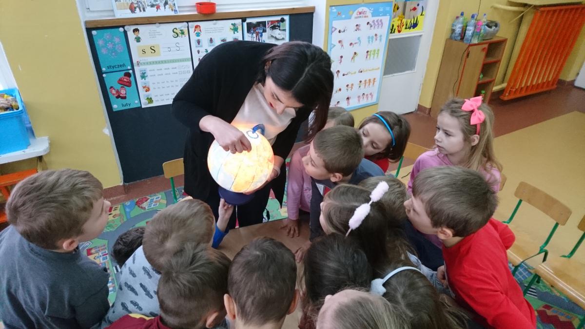 Wielojęzyczność to jedna z kompetencji kluczowych, które realizujemy w grupie Pszczółek. Na dzisiejszych zajęciach poznaliśmy dzieci zamieszkujące cały świat. Dzieci szukały na globusie Europy oraz poznawały wybrane kontynenty. Następnie pracowały z robotami - Ozobot, które okrążając kulę ziemską odwiedzały wszystkie dzieci świata. W drugiej części dnia ćwiczyliśmy koncentrację i spostrzegawczość. Na tablicy interaktywnej wyświetlone zostały flagi państw europejskich, a zadaniem dzieci było odnalezienie takich samych wśród krążków z tablicy kompetencji.