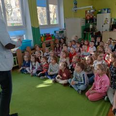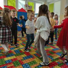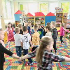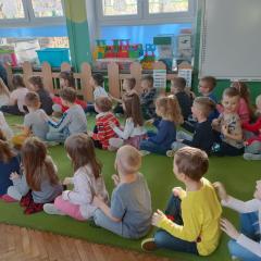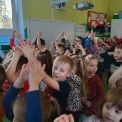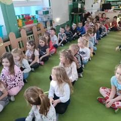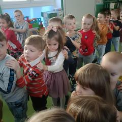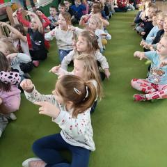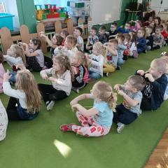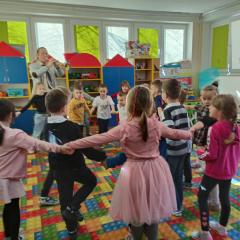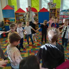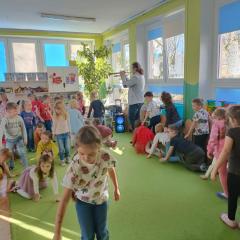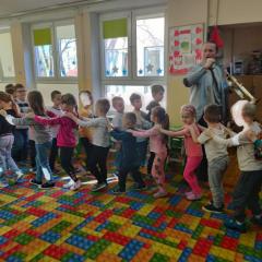 29 stycznia w naszym przedszkolu odbyło się muzyczne spotkanie w ramach "Wędrującej filharmonii". Tematem przewodnim była muzyka karnawałowa. Przedszkolaki przy dźwiękach trąbki bawiły się i śpiewały w rytm znanych polskich piosenek. Poszerzyły one też swoją wiedzę z zakresu muzyki klasycznej i rozrywkowej.  Zabawy rytmiczne szczególnie spodobały się najmłodszym. Ta niezwykła lekcja o muzyce, instrumentach i kojących dźwiękach przebiegła w wyjątkowej i serdecznej atmosferze.