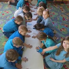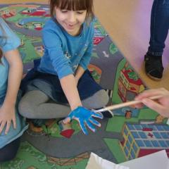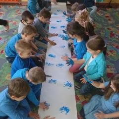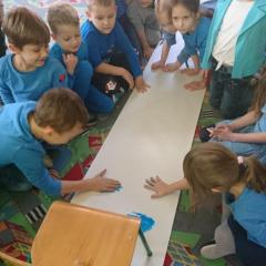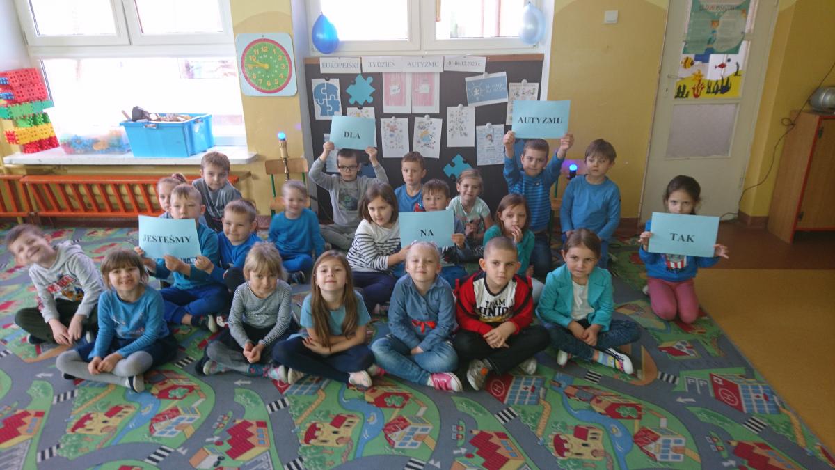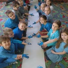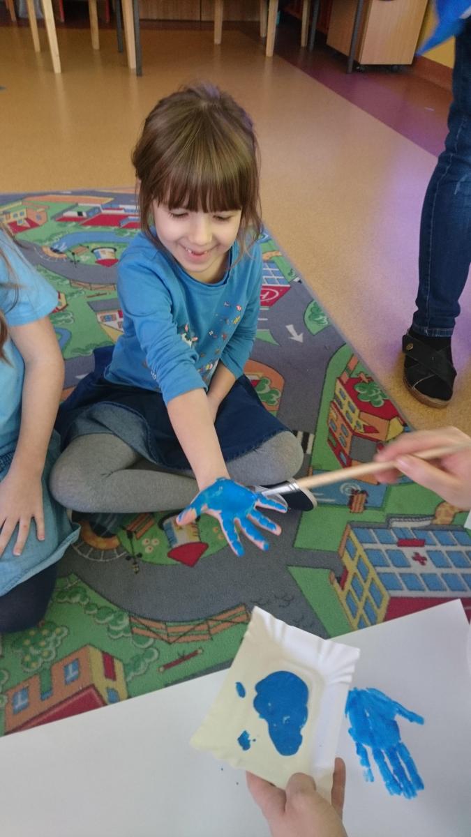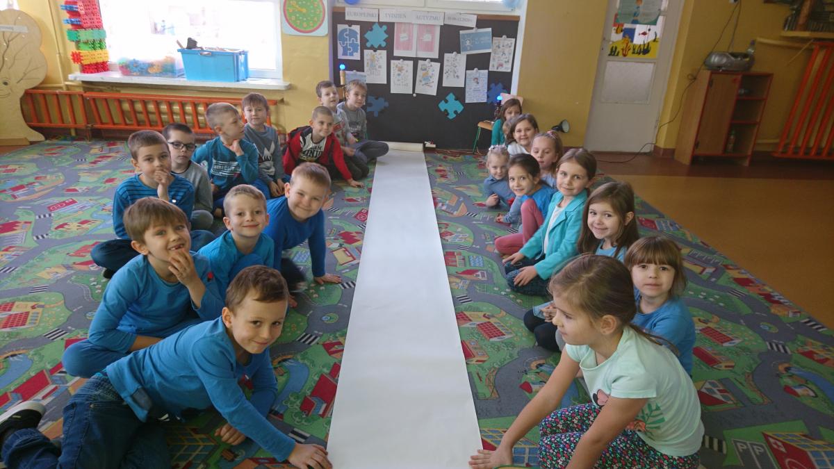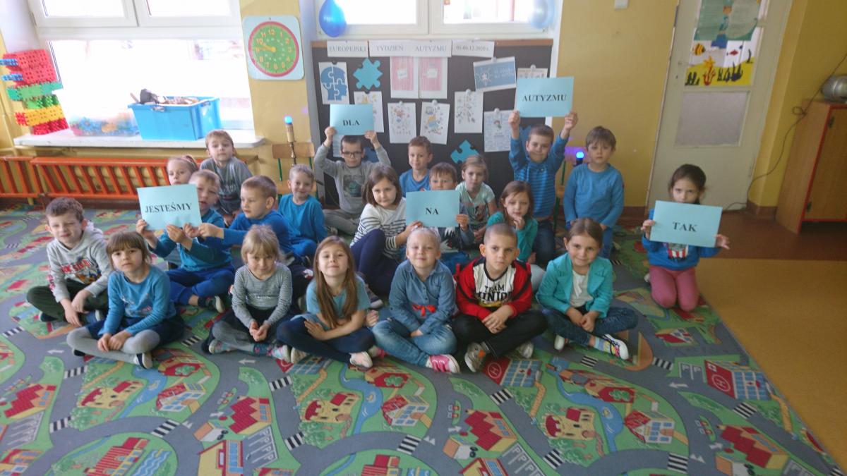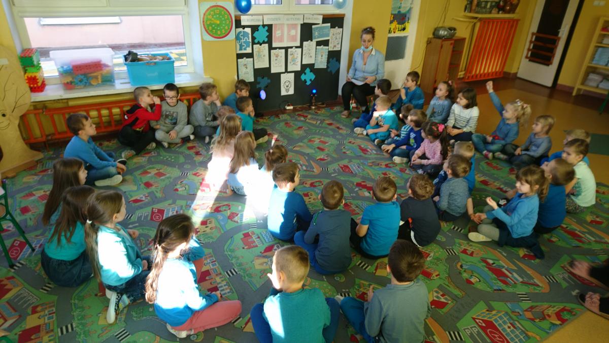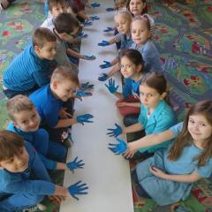 Dziś w grupie Pszczółek, w ramach Europejskiego Tygodnia Autyzmu, odbyły się zajęcia pt. Nam autyzm nie przeszkadza. Przedszkolaki na podstawie opowiadania Czarodziejka oraz filmu Amazing things Happy poznały spektrum objawów i zachowań charakterystycznych dla autyzmu oraz utrwaliły znaczenie słowa tolerancja. Pszczółki odcisnęły swoja niebieską dłoń, deklarując w ten sposób życzliwość i zrozumienie dla osób z autyzmem. Podczas dzisiejszego dnia towarzyszył nam niebieski kolor.