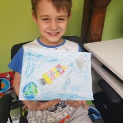 W ramach zadania projektowego: "Życzenia do złotej rybki" dzieci razem ze swoimi rodzicami rysowały marzenia. "Moim marzeniem jest, żeby nie było Koronawirusa" - takie jest marzenie Dawidka, jak z pewnością wszystkich dzieci, które chętnie spotkałyby się w przedszkolu na wspólnej zabawie. Wszystkie nadesłane prace są piękne, marzenia niesamowite. Życzymy, aby szybko się spełniły.