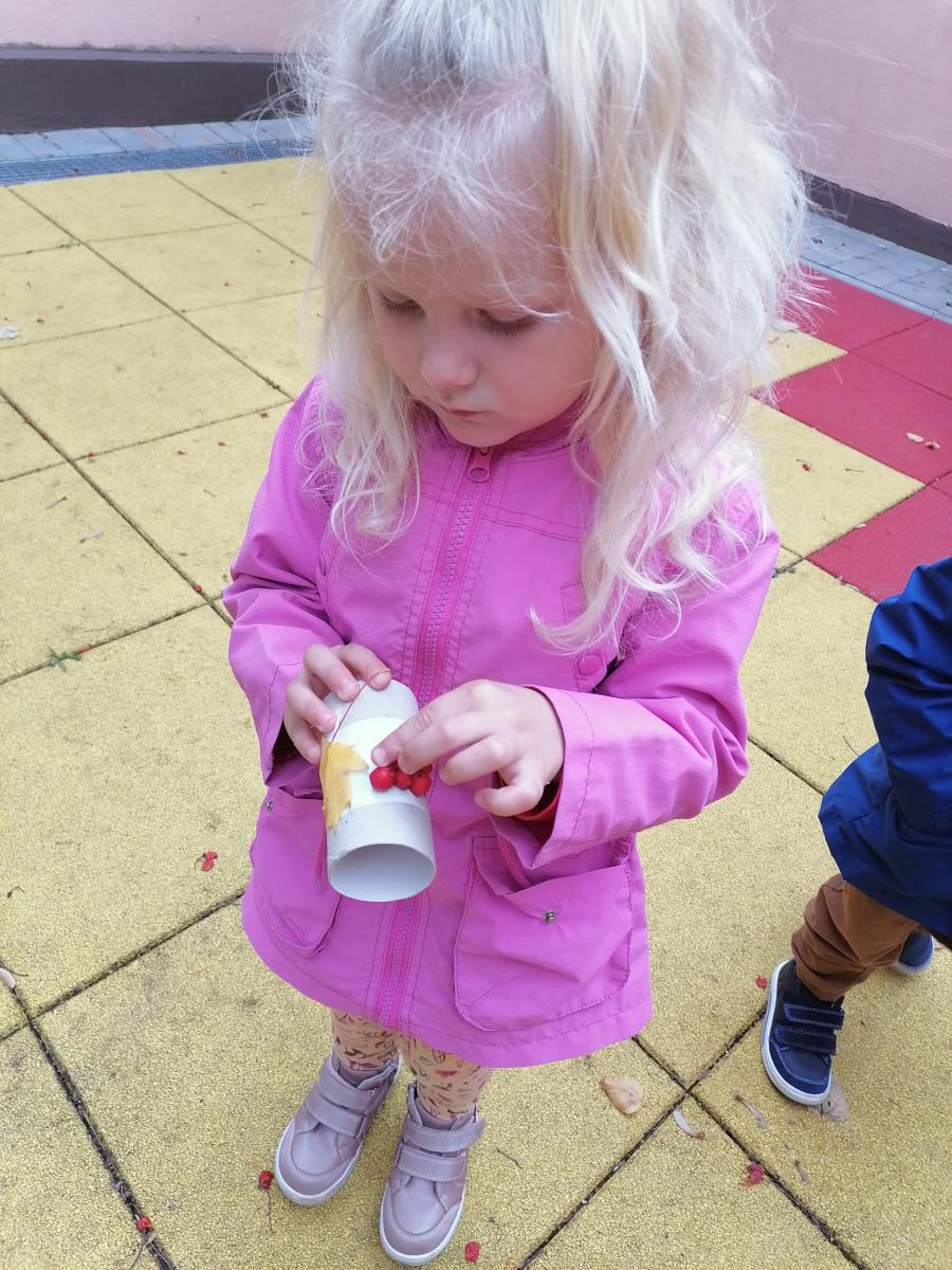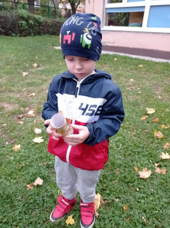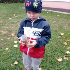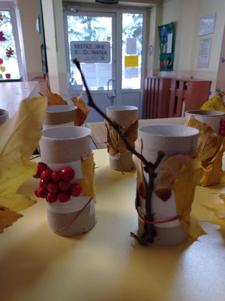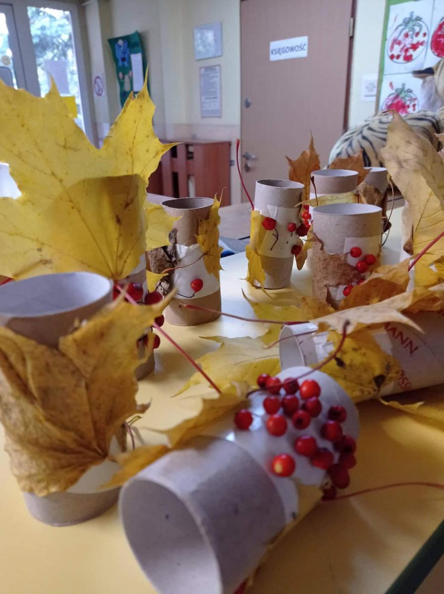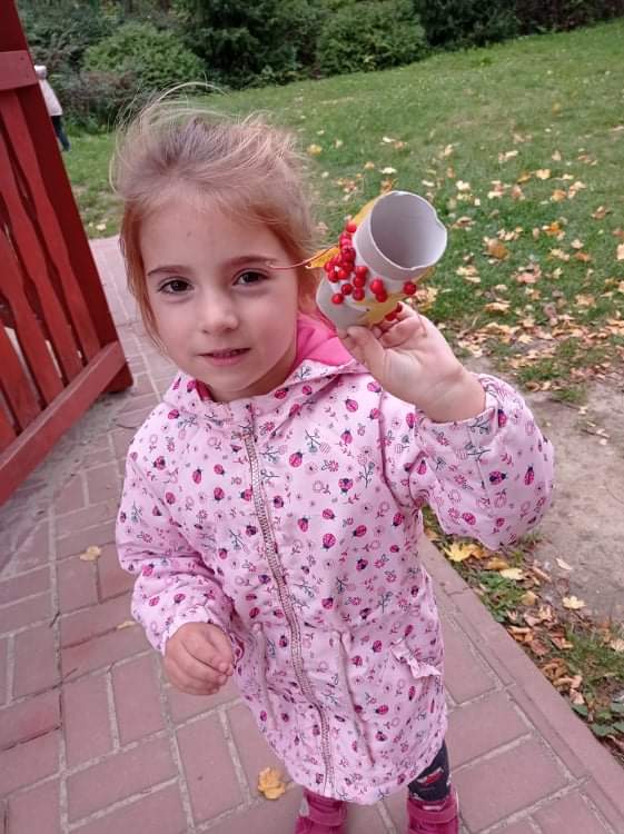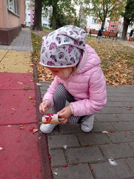 W ramach ogólnopolskiego projektu "Z darami natury świat nie jest ponury" Jeżyki wykonały zadanie ,,Rolka po papierze na spacer się wybierze ". Naszym pomysłem na zrealizowanie go było stworzenie kompozycji z darów jesieni. Maluszki otrzymały rolki z przyklejoną taśmą dwustronną , do której przytwierdzały listki, korale jarzębiny, noski klonu i małe patyczki. ???