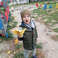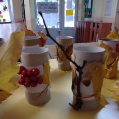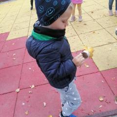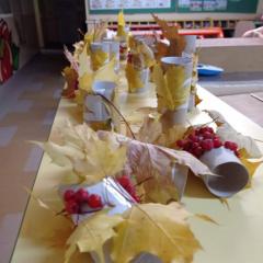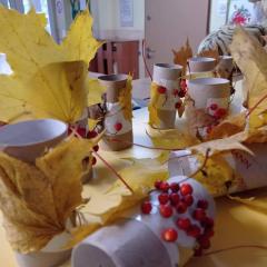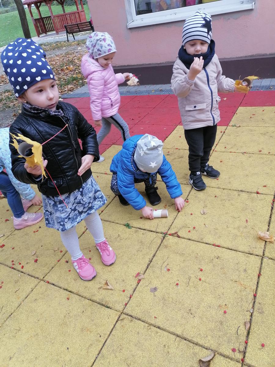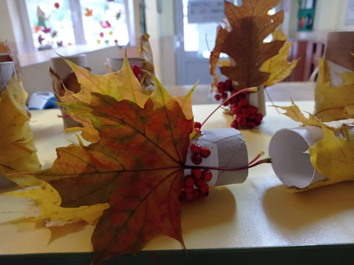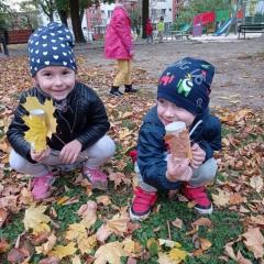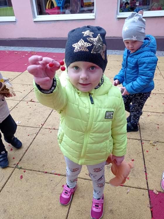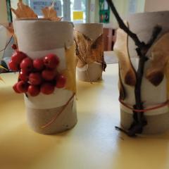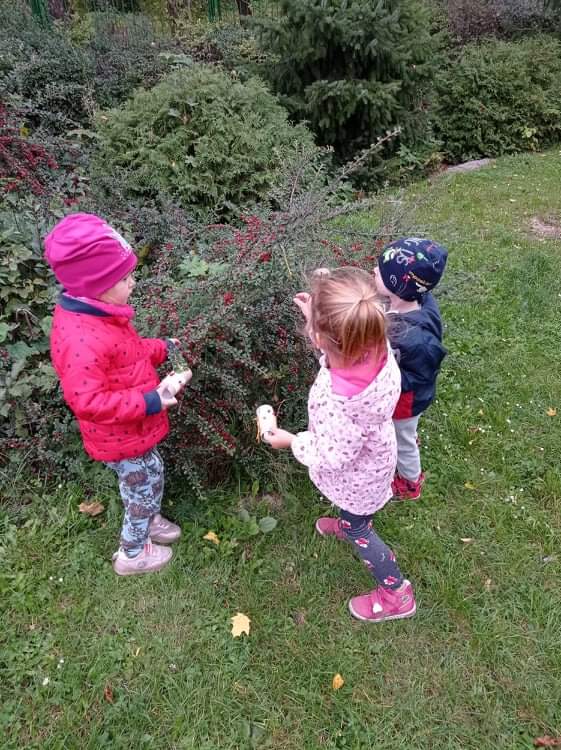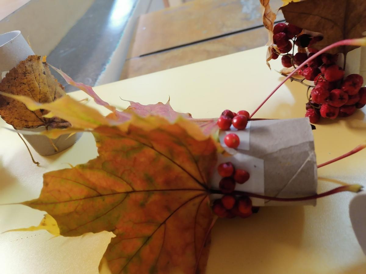 W ramach ogólnopolskiego projektu "Z darami natury świat nie jest ponury" Jeżyki wykonały zadanie ,,Rolka po papierze na spacer się wybierze ". Naszym pomysłem na zrealizowanie go było stworzenie kompozycji z darów jesieni. Maluszki otrzymały rolki z przyklejoną taśmą dwustronną , do której przytwierdzały listki, korale jarzębiny, noski klonu i małe patyczki. ???