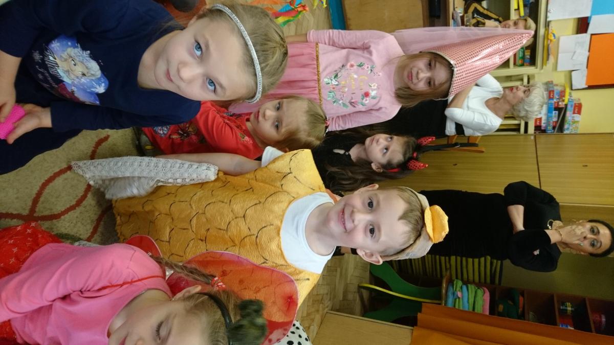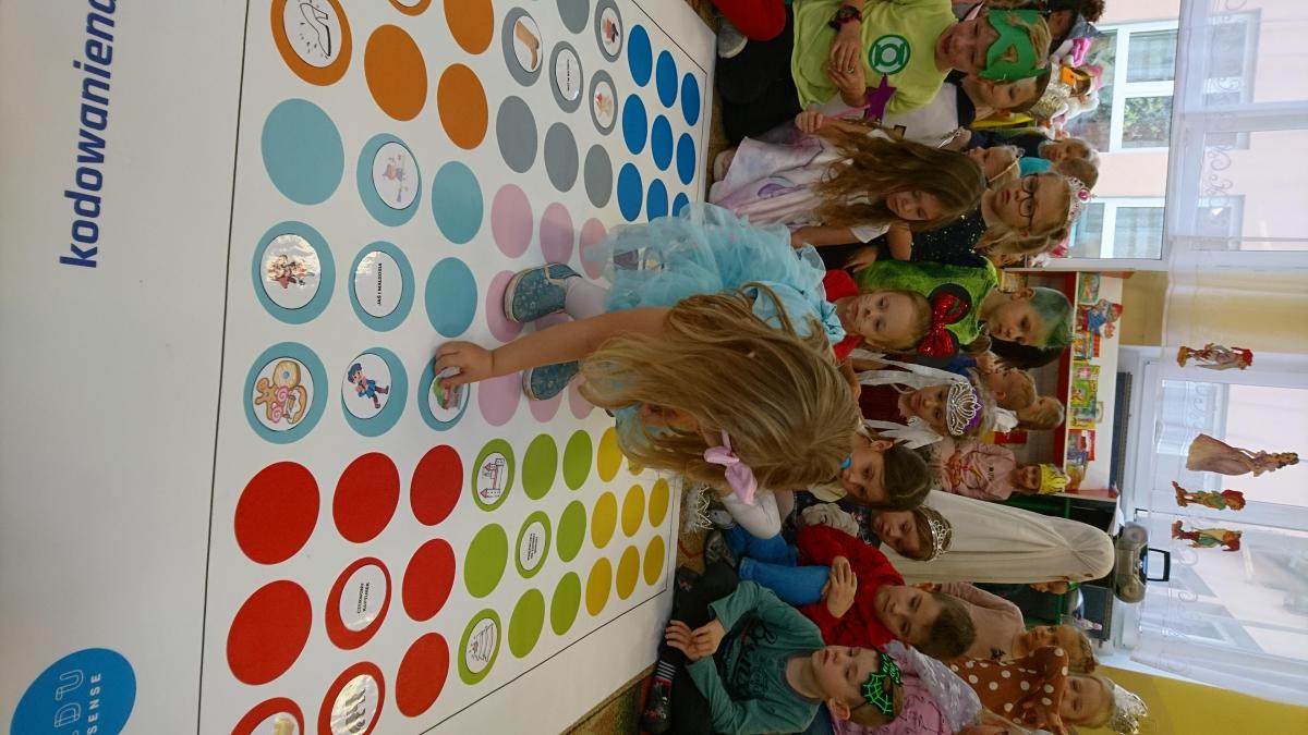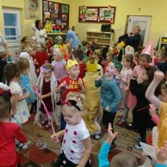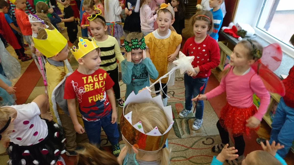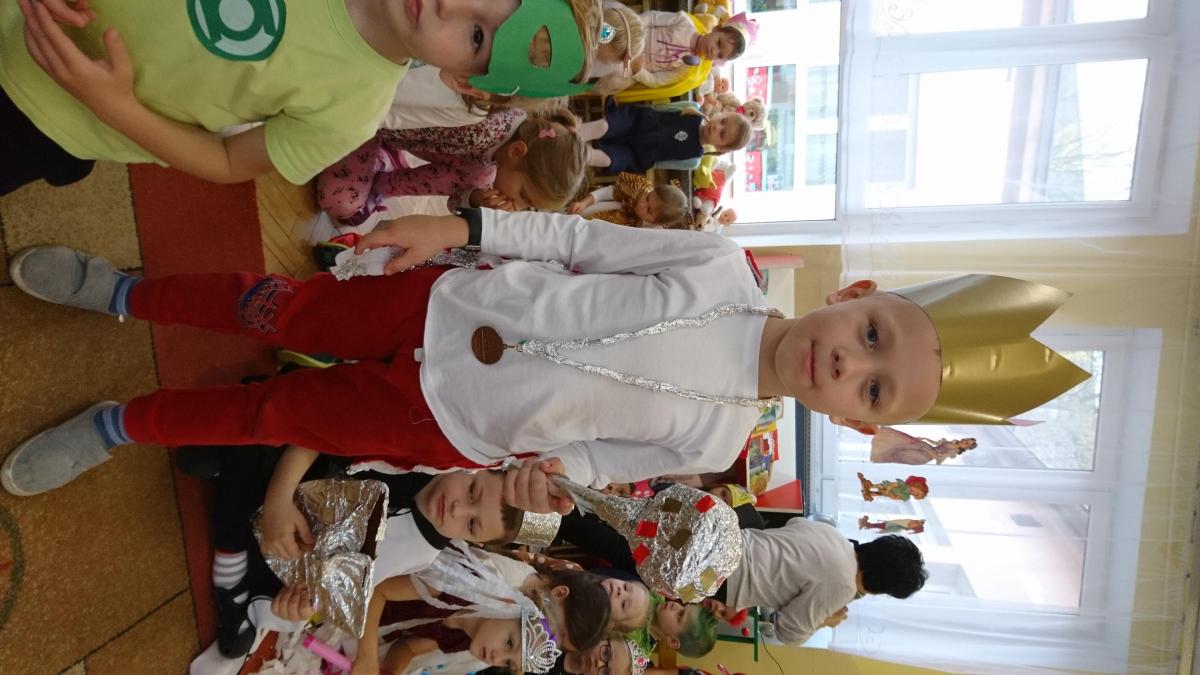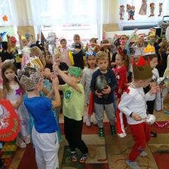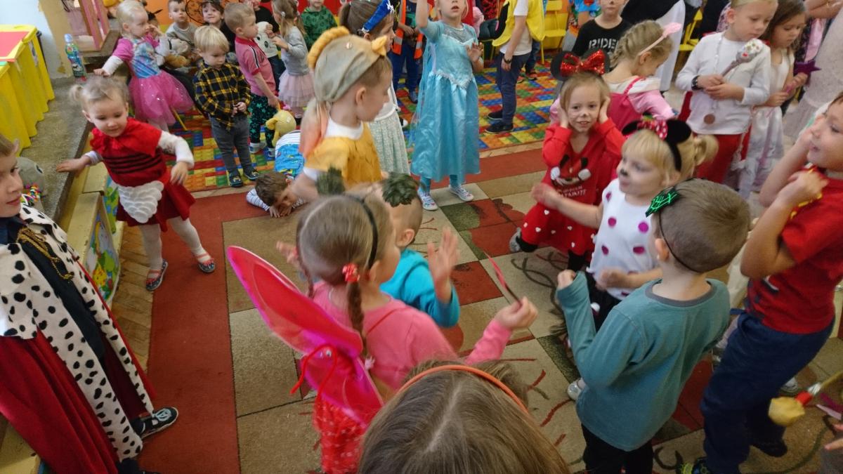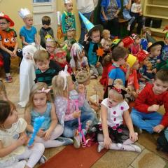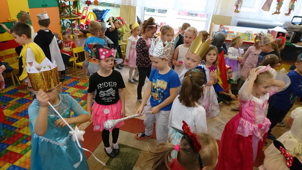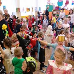 Dzisiaj w naszym przedszkolu odbył się bal, na którym spotkały się wszystkie postacie bajkowe. Były królewny, czarodzieje, rycerze, królowie, biedroneczka, Calineczka, duszek Kacper, dinozaur i wiele, wiele innych wspaniałych osobistości. Bawiliśmy się świetnie przy bajkowej muzyce, były konkursy i zgadywanki. Nie zabrakło również kodowania na macie. Podczas balu pani Dyrektor wręczyła dyplomy i nagrody dla wszystkich uczestników konkursu "Zaczarowana dynia - Karoca dla Kopciuszka". Dziękujemy wszystkim grupą, za wstpaniałą zabawę.