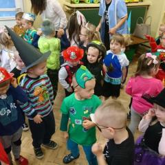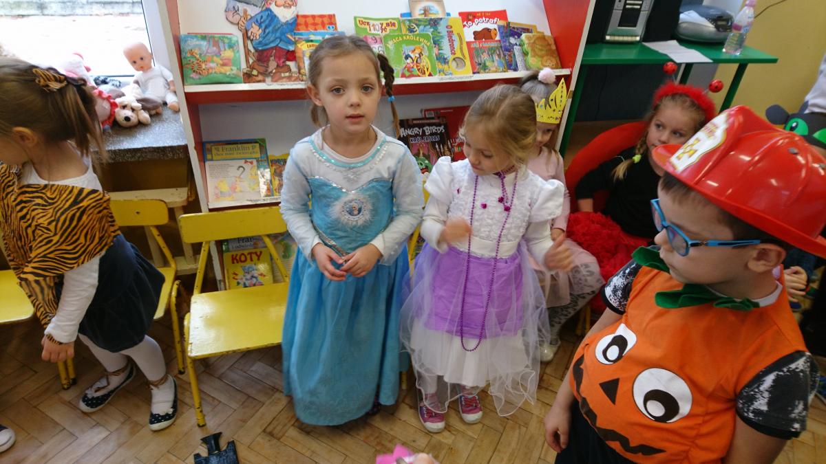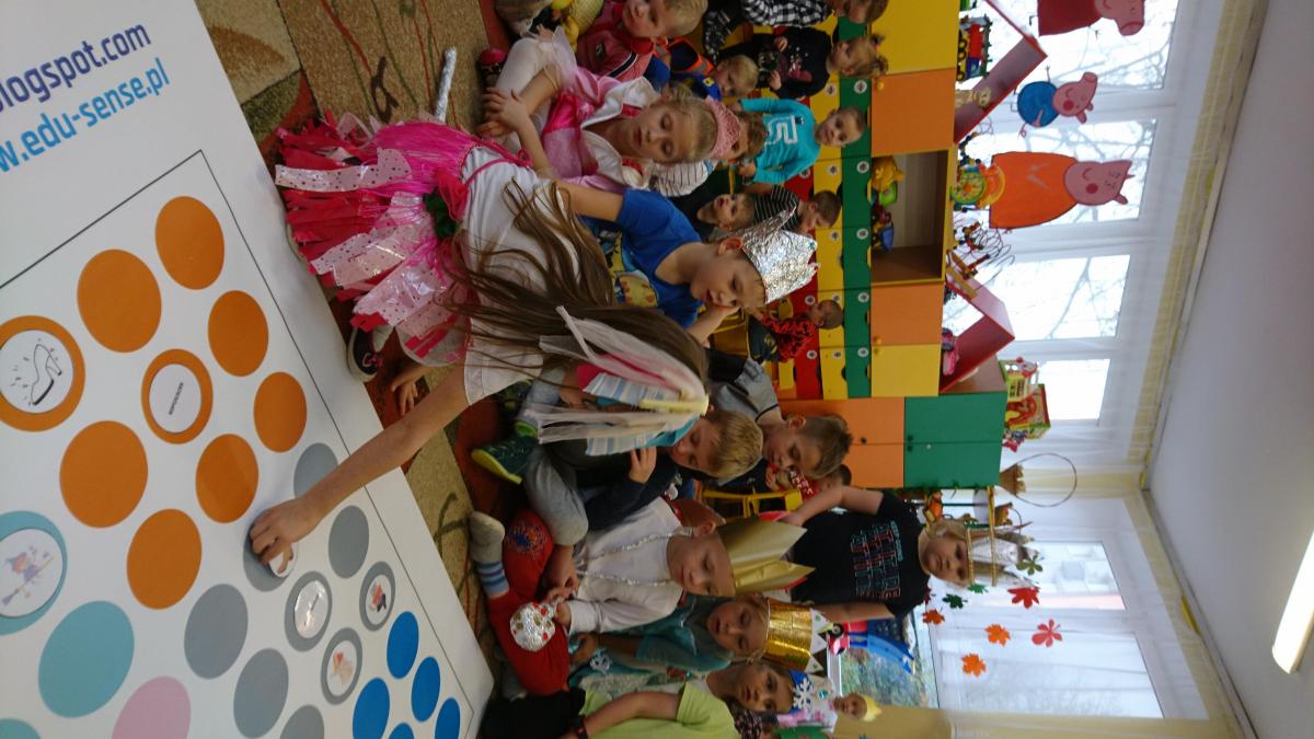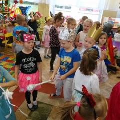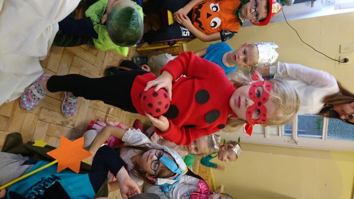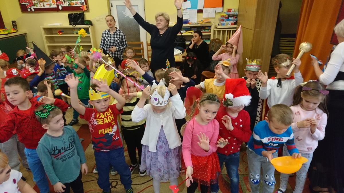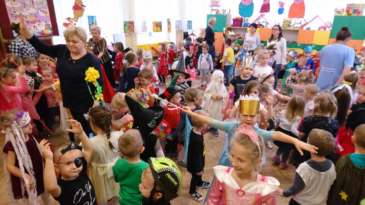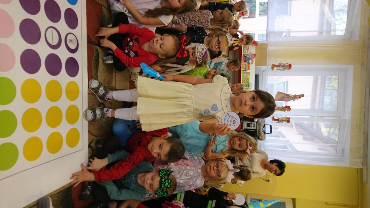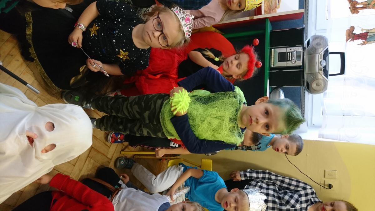 Dzisiaj w naszym przedszkolu odbył się bal, na którym spotkały się wszystkie postacie bajkowe. Były królewny, czarodzieje, rycerze, królowie, biedroneczka, Calineczka, duszek Kacper, dinozaur i wiele, wiele innych wspaniałych osobistości. Bawiliśmy się świetnie przy bajkowej muzyce, były konkursy i zgadywanki. Nie zabrakło również kodowania na macie. Podczas balu pani Dyrektor wręczyła dyplomy i nagrody dla wszystkich uczestników konkursu "Zaczarowana dynia - Karoca dla Kopciuszka". Dziękujemy wszystkim grupą, za wstpaniałą zabawę.