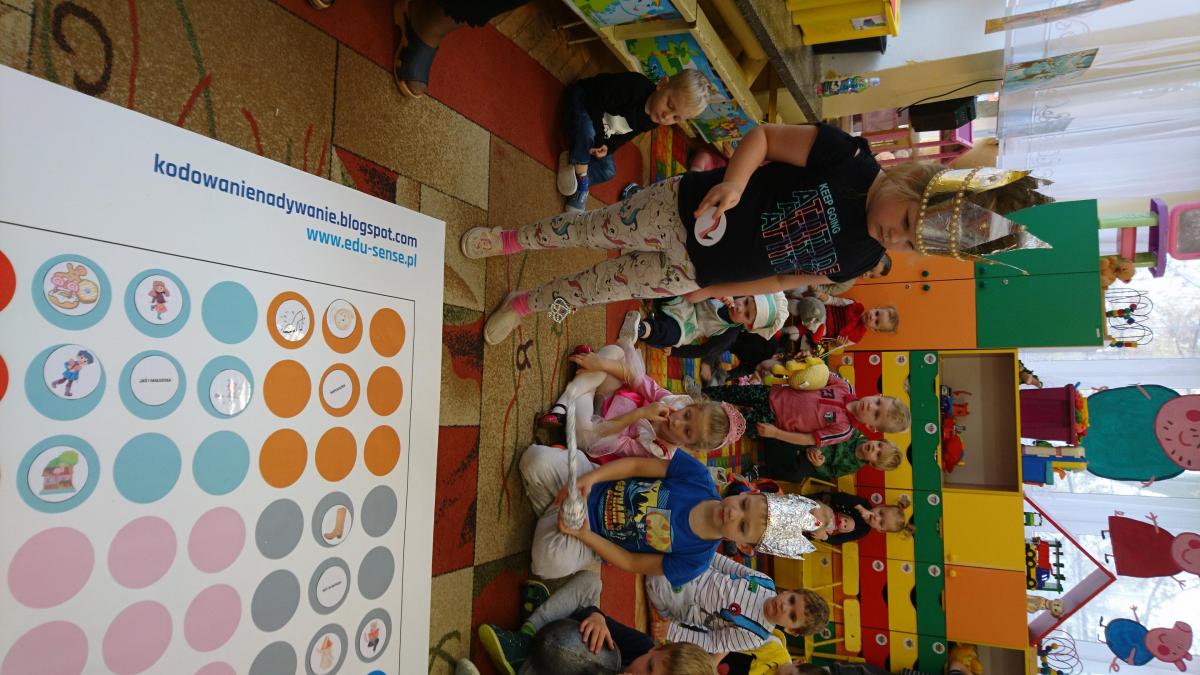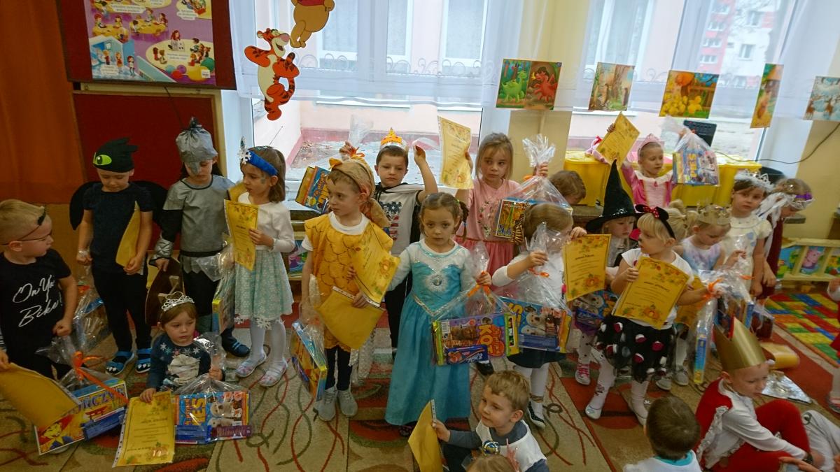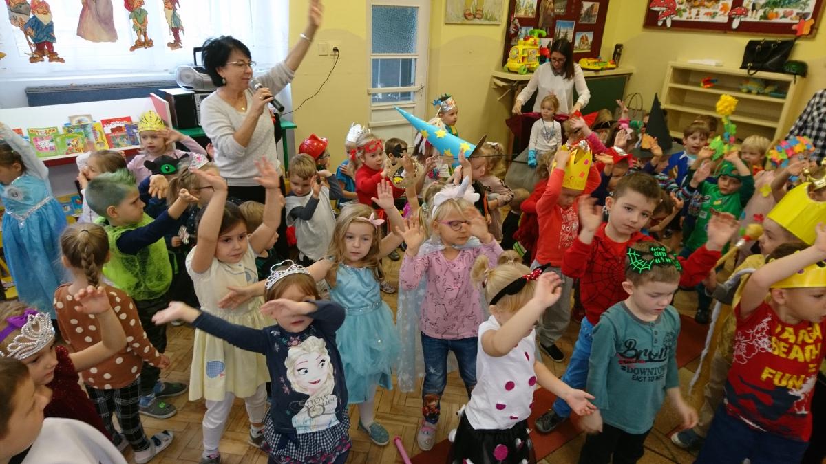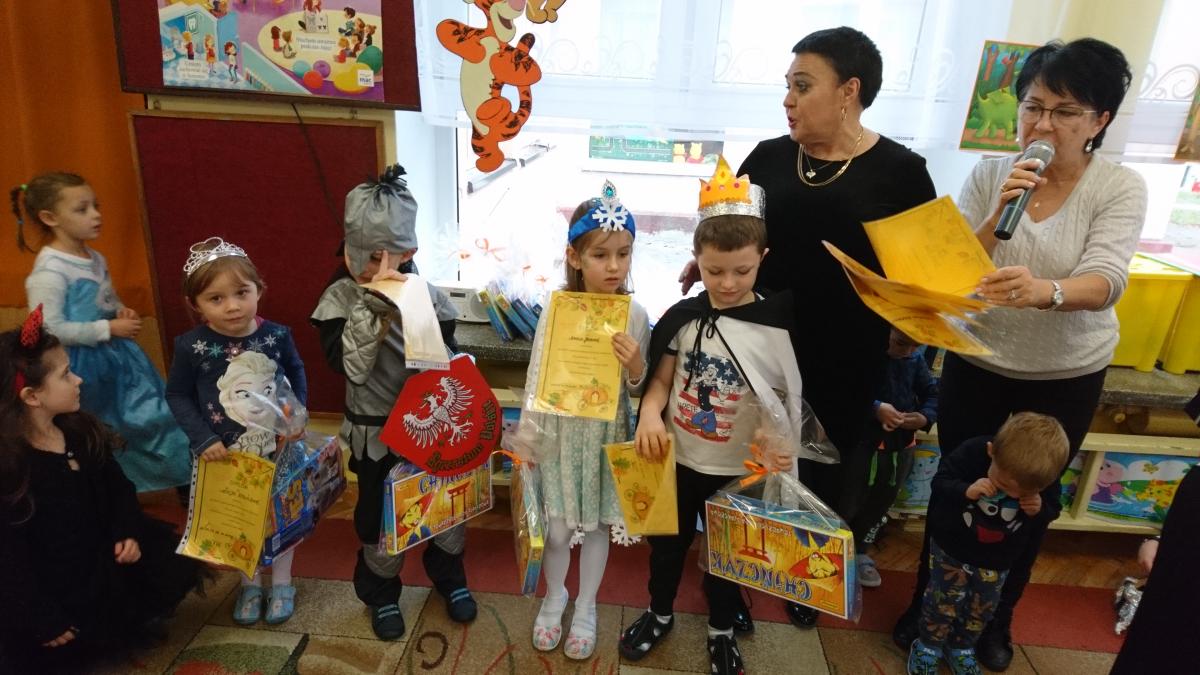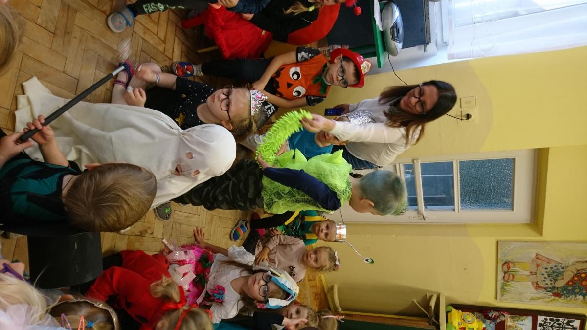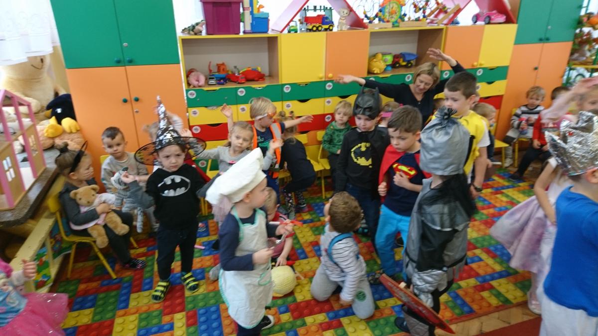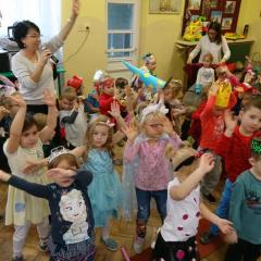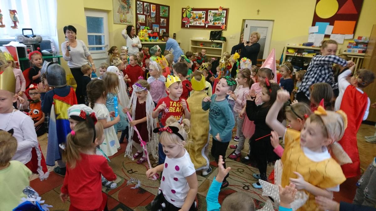 Dzisiaj w naszym przedszkolu odbył się bal, na którym spotkały się wszystkie postacie bajkowe. Były królewny, czarodzieje, rycerze, królowie, biedroneczka, Calineczka, duszek Kacper, dinozaur i wiele, wiele innych wspaniałych osobistości. Bawiliśmy się świetnie przy bajkowej muzyce, były konkursy i zgadywanki. Nie zabrakło również kodowania na macie. Podczas balu pani Dyrektor wręczyła dyplomy i nagrody dla wszystkich uczestników konkursu "Zaczarowana dynia - Karoca dla Kopciuszka". Dziękujemy wszystkim grupą, za wstpaniałą zabawę.