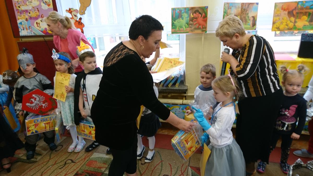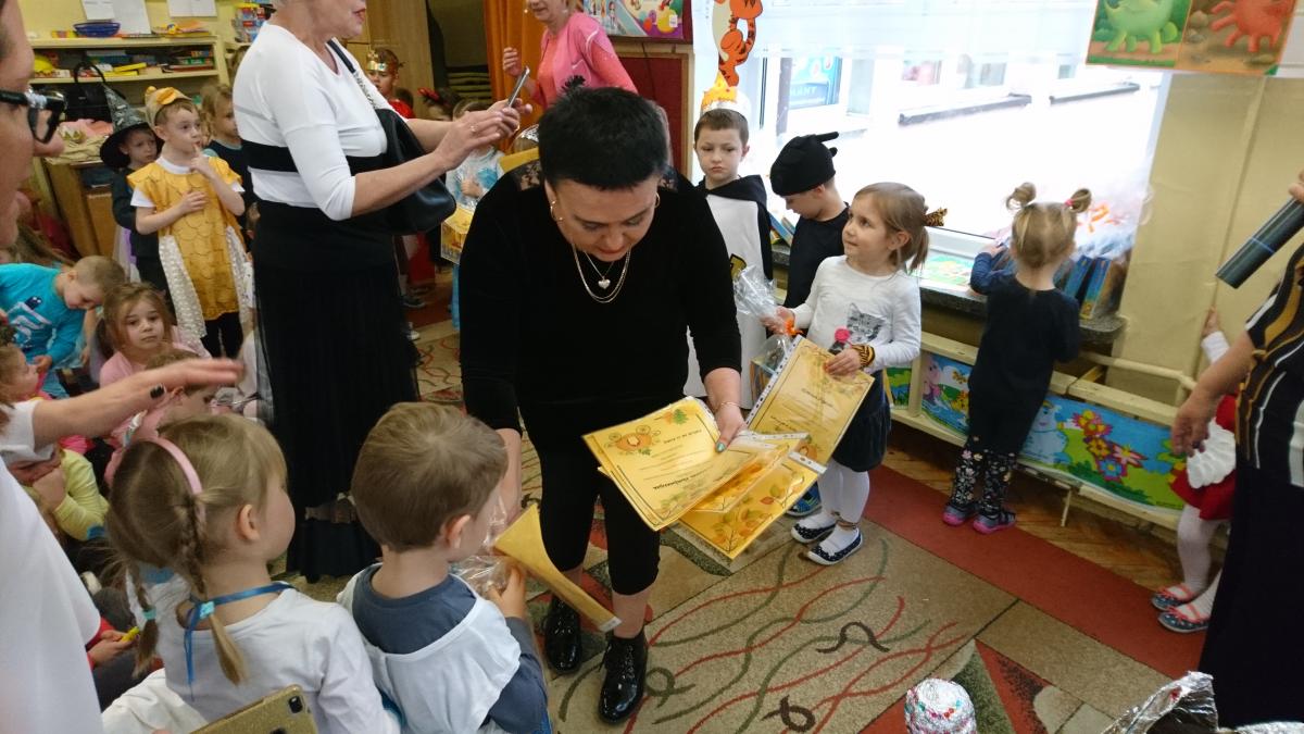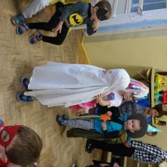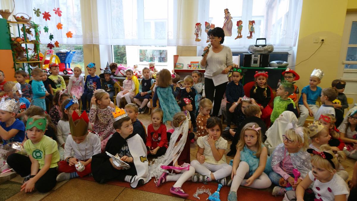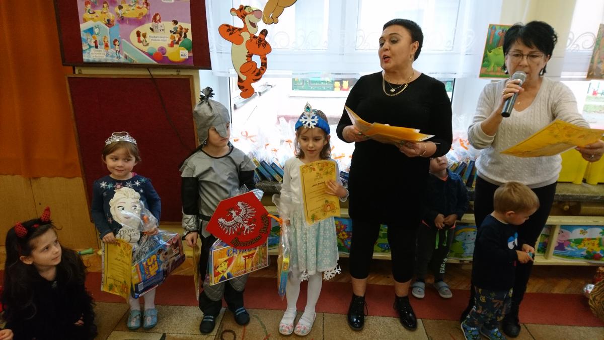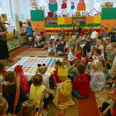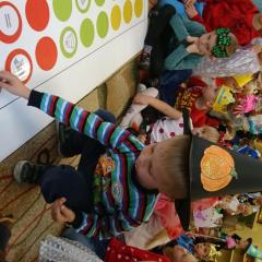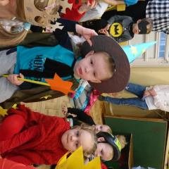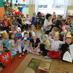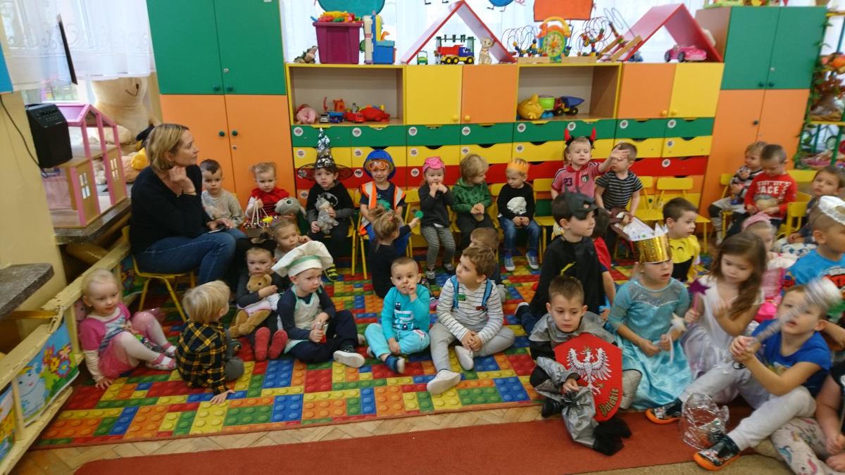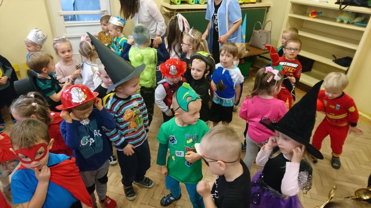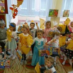 Dzisiaj w naszym przedszkolu odbył się bal, na którym spotkały się wszystkie postacie bajkowe. Były królewny, czarodzieje, rycerze, królowie, biedroneczka, Calineczka, duszek Kacper, dinozaur i wiele, wiele innych wspaniałych osobistości. Bawiliśmy się świetnie przy bajkowej muzyce, były konkursy i zgadywanki. Nie zabrakło również kodowania na macie. Podczas balu pani Dyrektor wręczyła dyplomy i nagrody dla wszystkich uczestników konkursu "Zaczarowana dynia - Karoca dla Kopciuszka". Dziękujemy wszystkim grupą, za wstpaniałą zabawę.