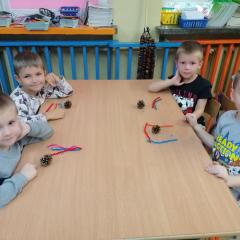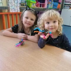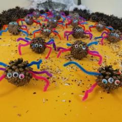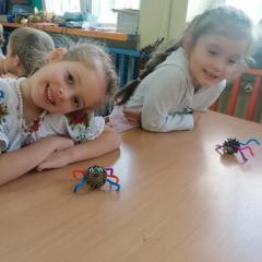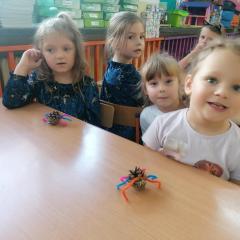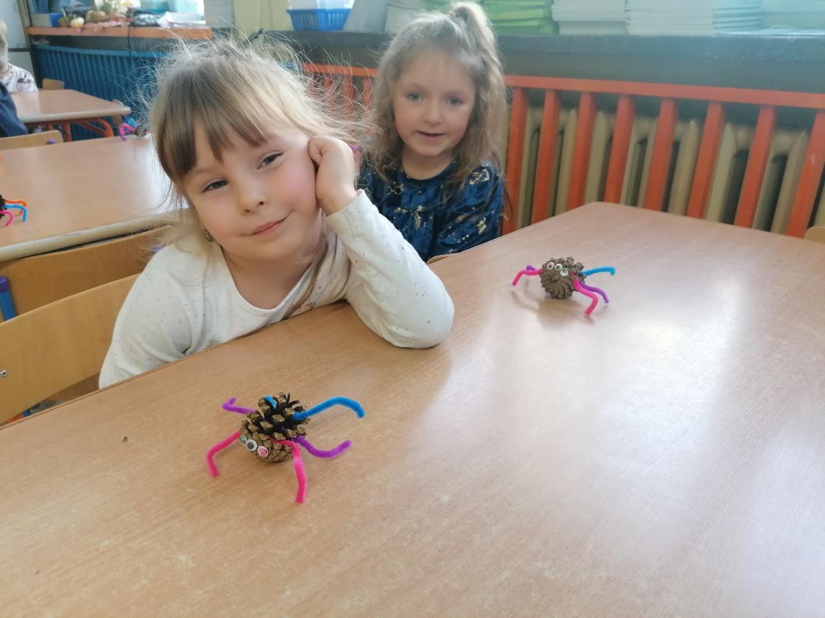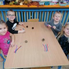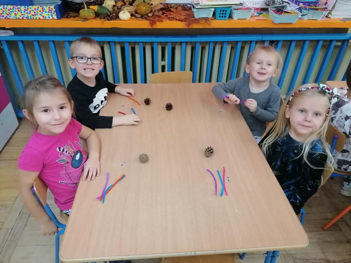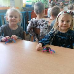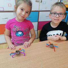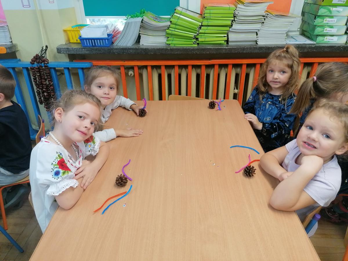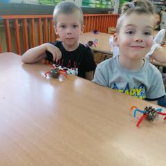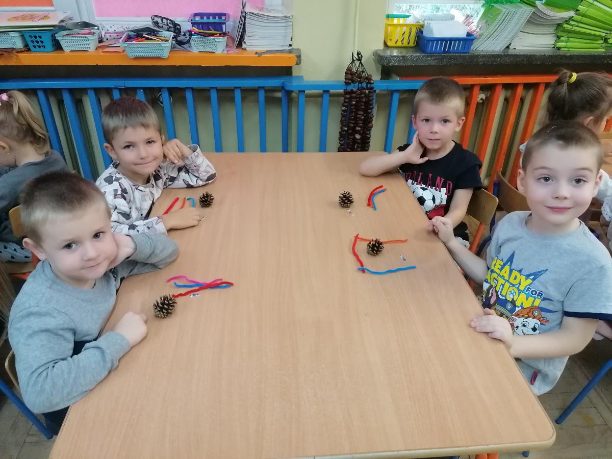 W ramach Projektu edukacyjnego ,,Z darami natury świat nie jest ponury" Żabki wykonały zadanie Szyszkowy zawrót głowy. Dzieci zrobiły szyszkowe pajączki.